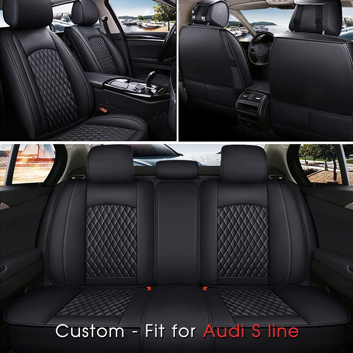 2 Car Seat Covers Full Set, Custom-Fit For Car, Waterproof Leather Front Rear Seat Automotive Protection Cushions, Car Accessories WAVE211