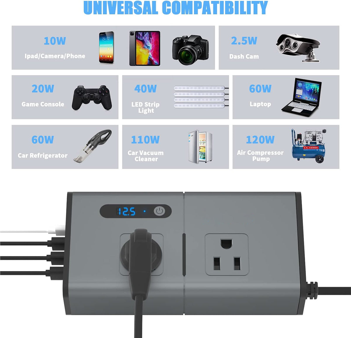 200W Car Power Inverter Newly Car Plug Adapter Outlet Charger DC 12V to 110V Car Inverter with 1.2A&2.4A USB, 1 QC3.0 USB and 1 Type C Ports