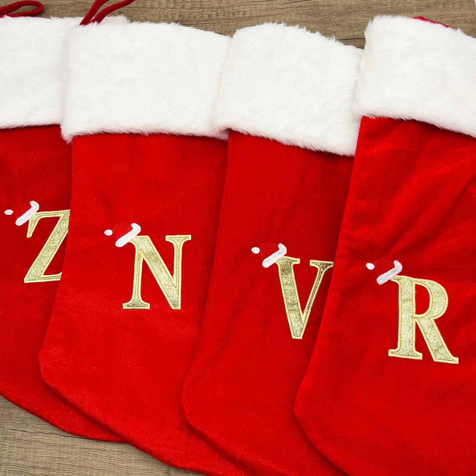50cm Monogrammed Christmas Stocking: Large Embroidered Xmas Sock for Family Holiday Fireplace and Party Decor