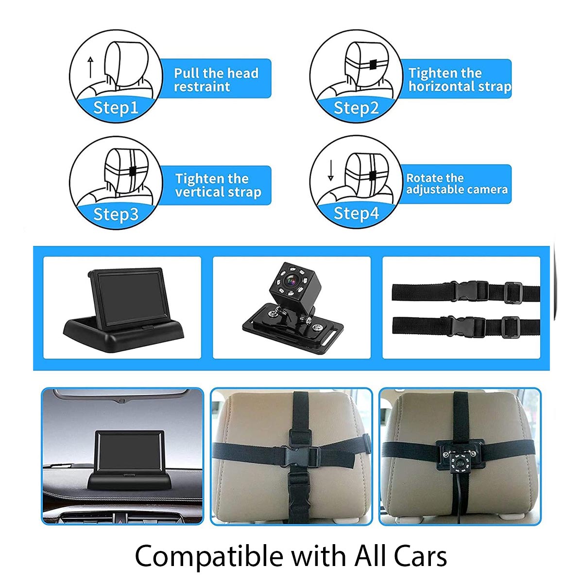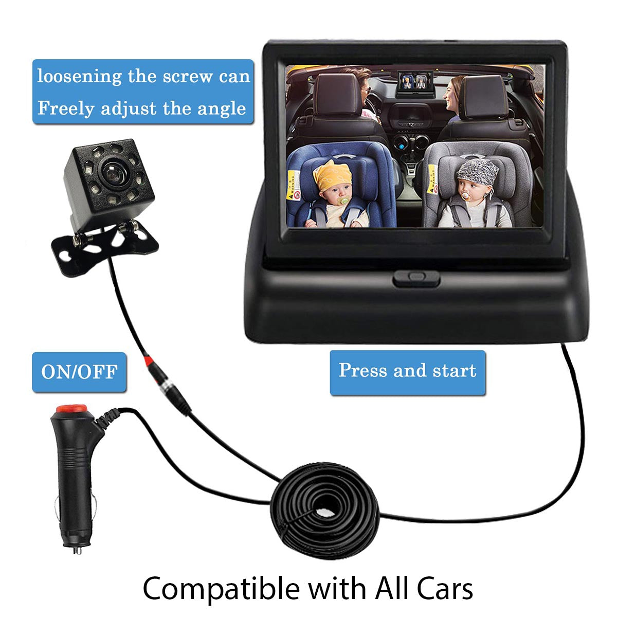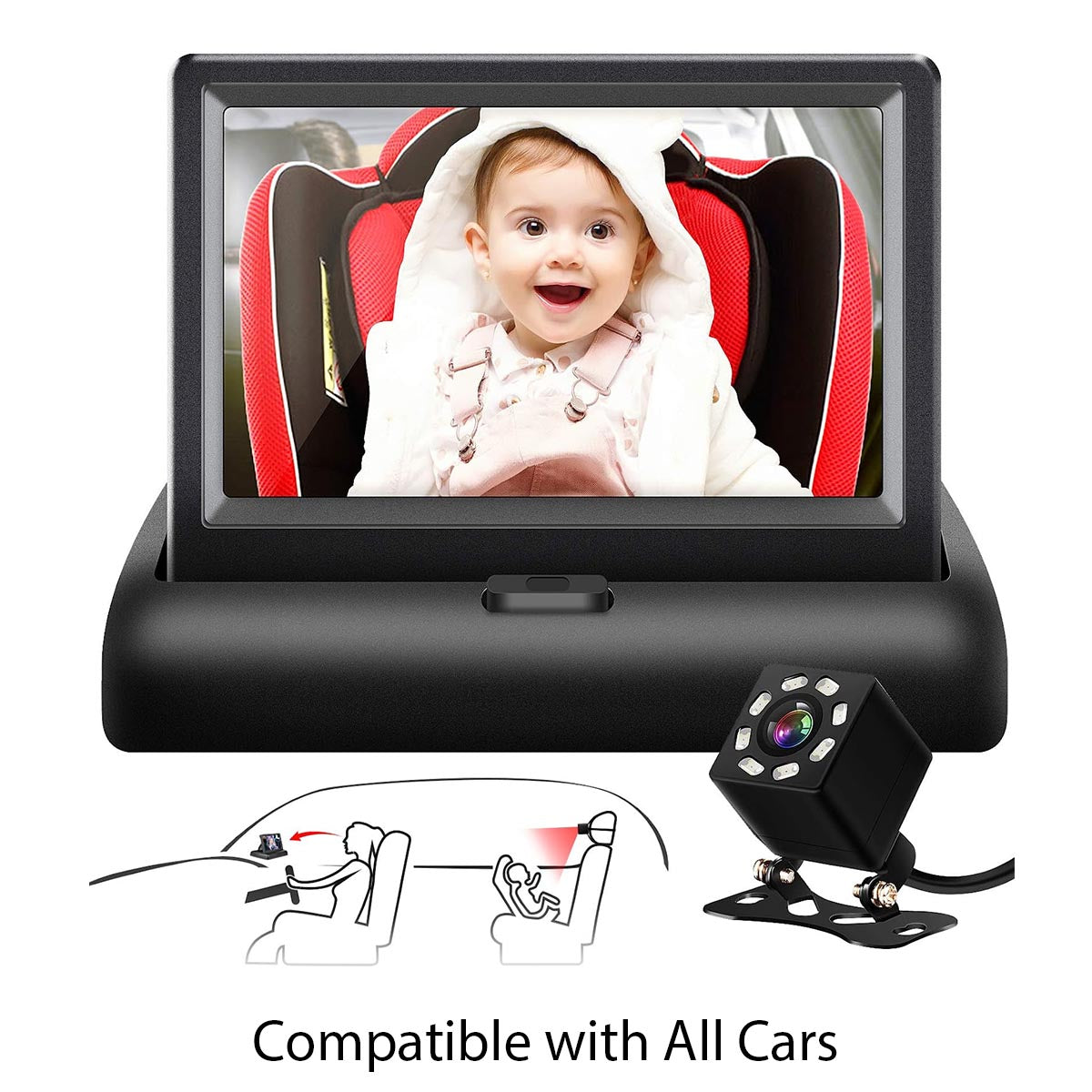 Car Mirror, Custom Fit For Your Cars, 4.3'' HD Night Vision Function Car Mirror Display, Safety Car Seat Mirror Camera Monitored Mirror with Wide Crystal Clear View, Aimed at Baby, Easily Observe the Baby’s Move