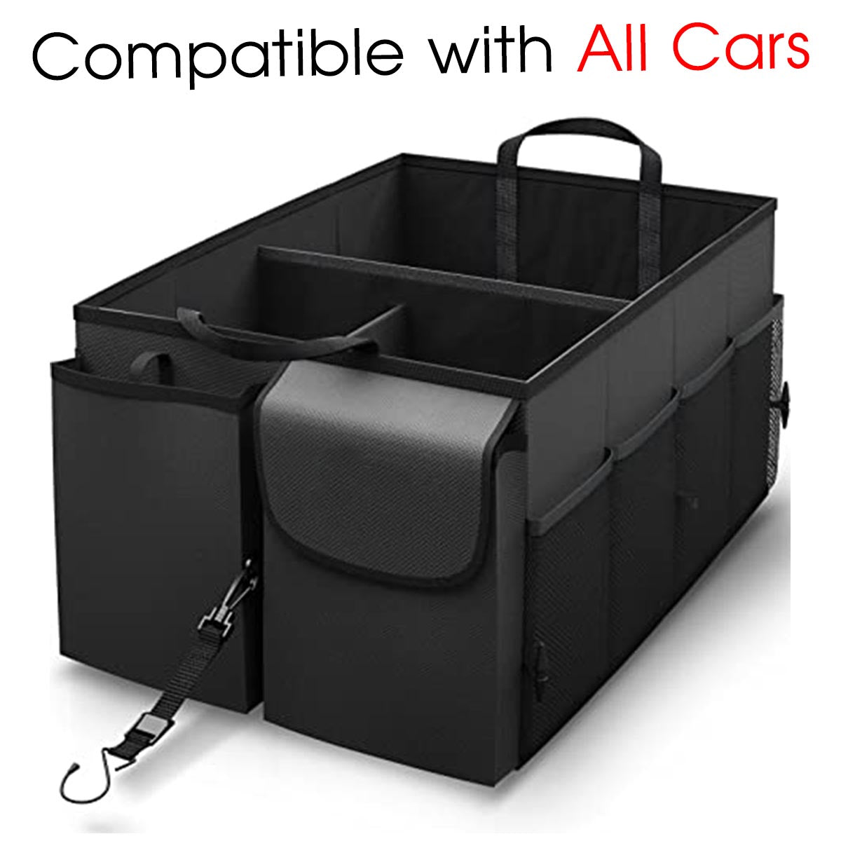 Car Trunk Organizer - Collapsible, Custom fit for All Cars, Multi-Compartment Automotive SUV Car Organizer for Storage w/ Adjustable Straps - Car Accessories for Women and Men AR12993