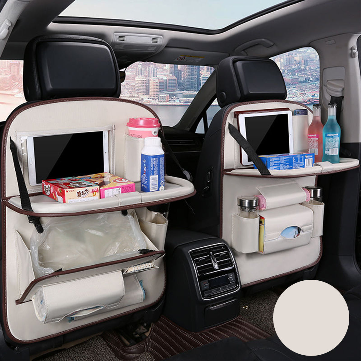 Backseat Organizer With Tablet Holder PU Leather, Custom Fit For Your Cars, Backseat Car Organizer, Car Seat Back Protectors Kick With Foldable Table Tray Car Seat Organizer, Car Accessories HA15987