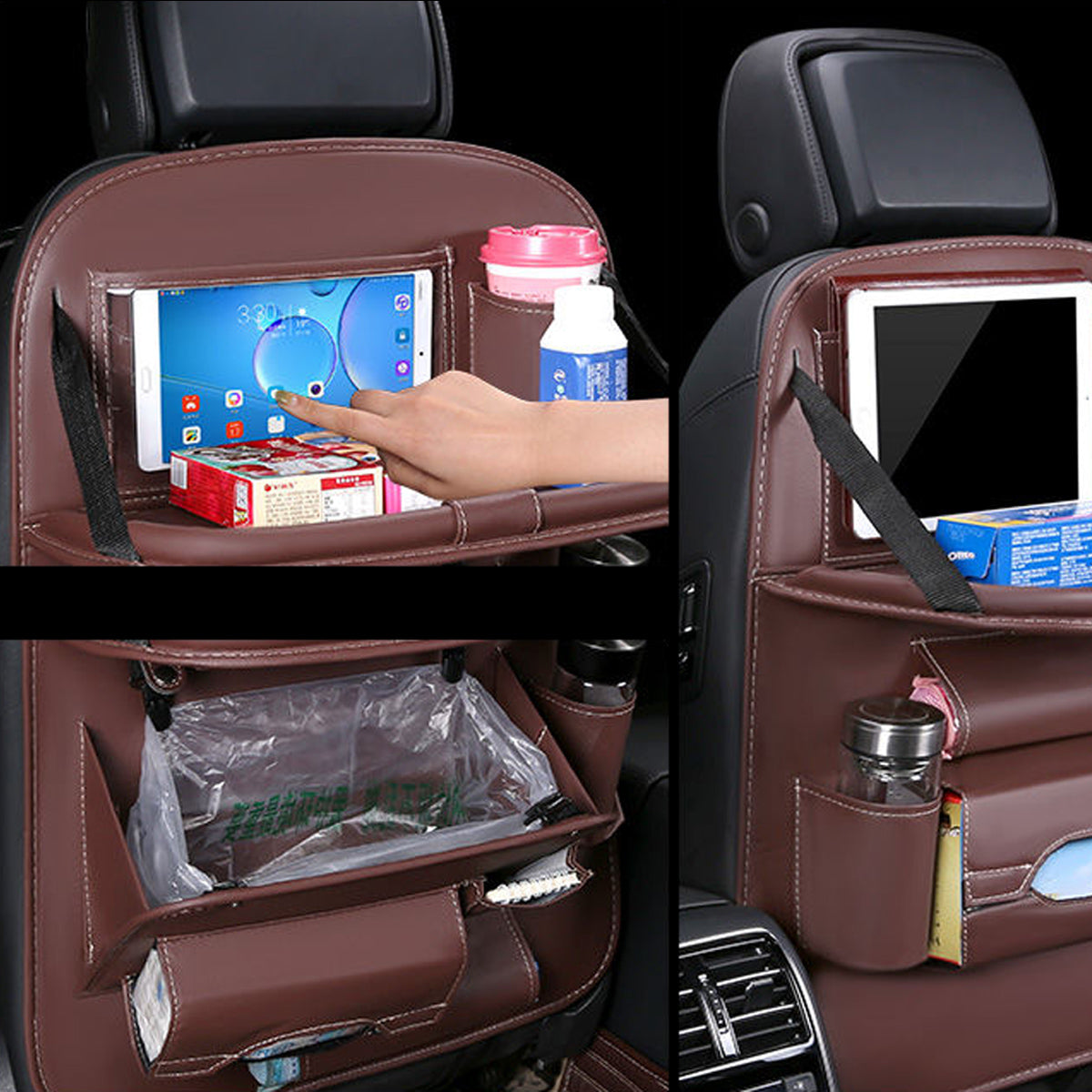 Backseat Organizer With Tablet Holder PU Leather, Custom Fit For Your Cars, Backseat Car Organizer, Car Seat Back Protectors Kick With Foldable Table Tray Car Seat Organizer, Car Accessories LI15987
