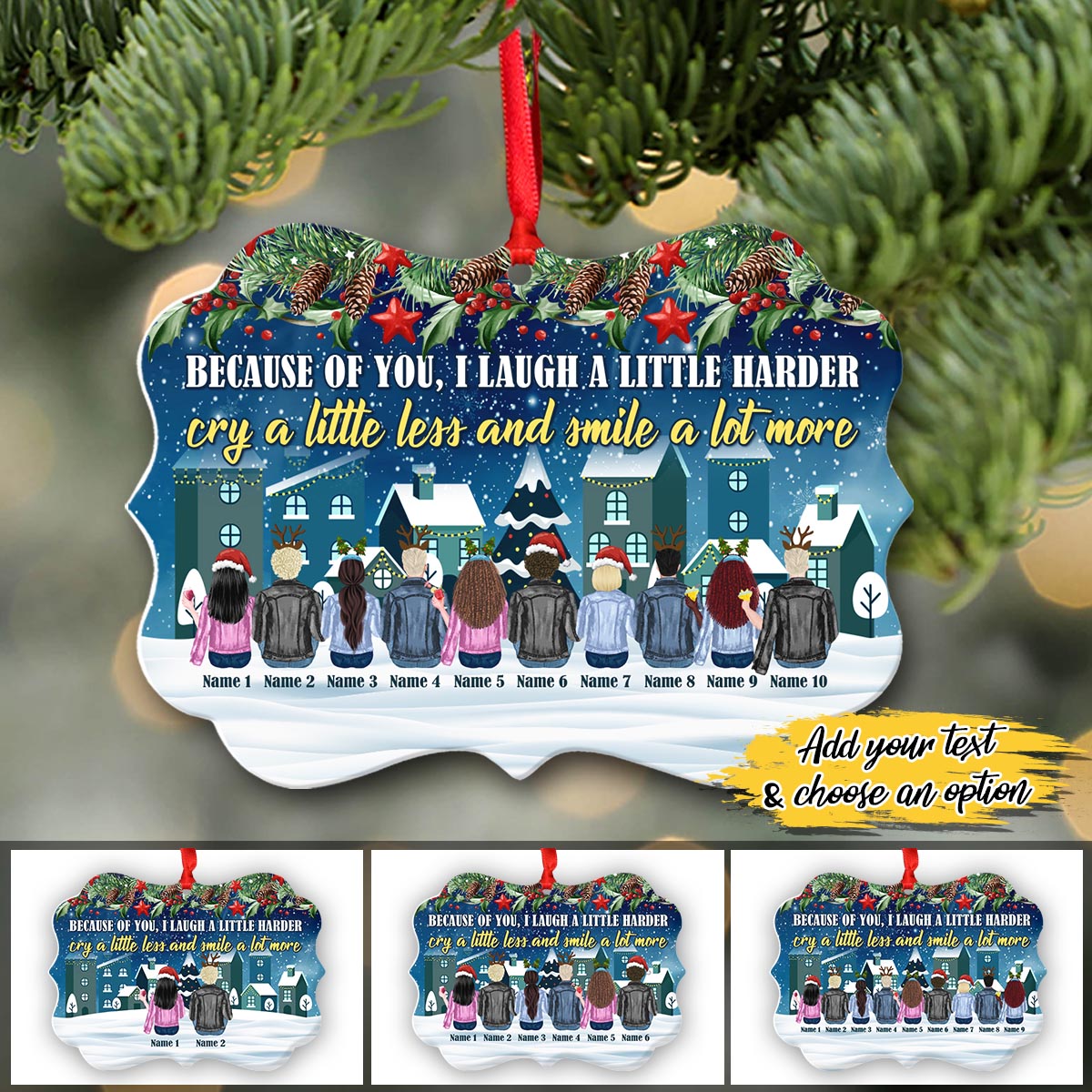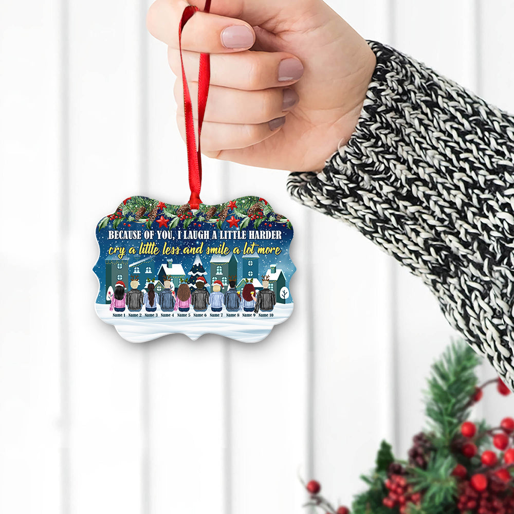 Because of You I Laugh a Little Harder Personalized Custom Name Aluminum Ornaments Gift For Christmas