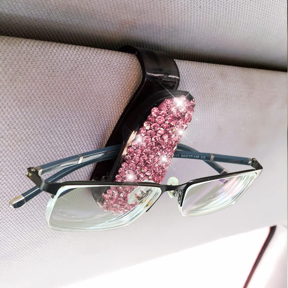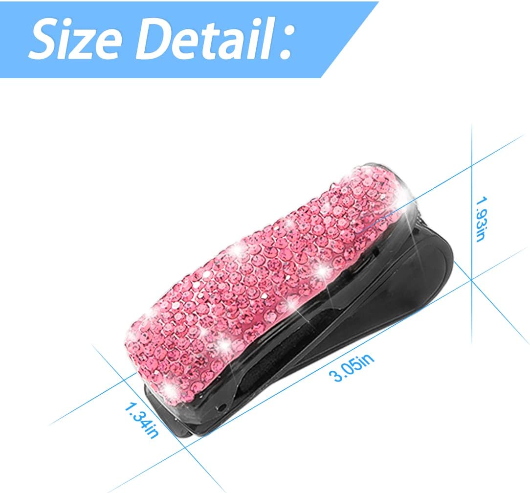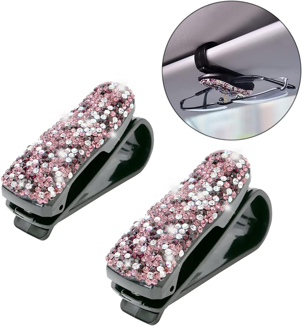 Bling Car Glasses Holder, 2PCS Handcrafted Crystal Rhinestones Fashion Car Sunglasses Mount with Card Clip for All Sun Visors, Auto Interior Accessories for Women Girl, Universal Fit for All Cars, Car Accessories