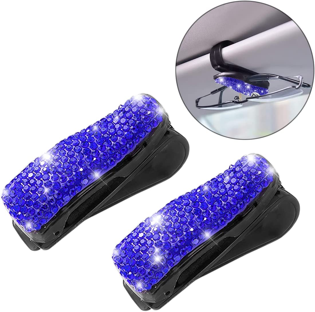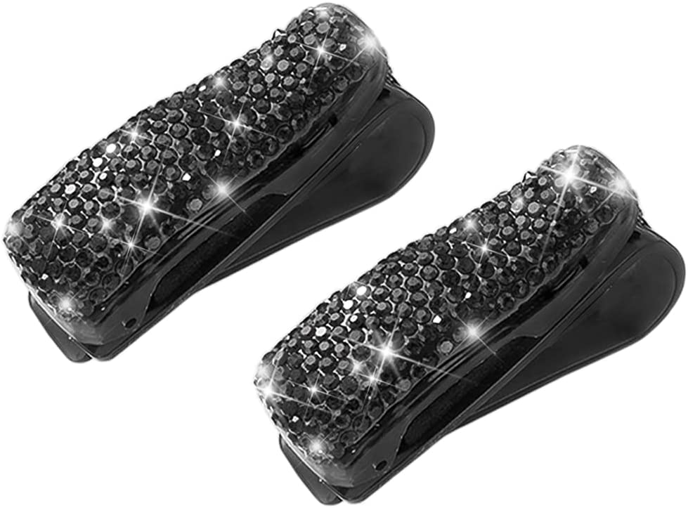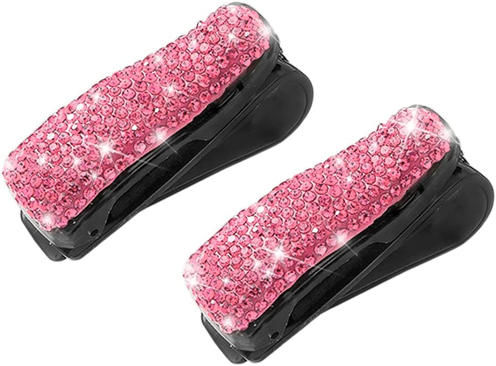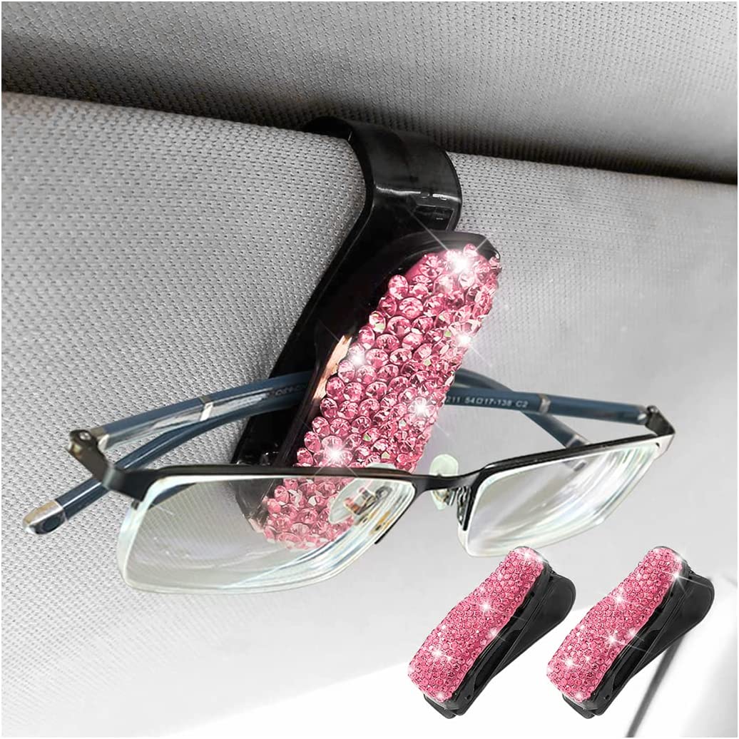 Bling Car Glasses Holder, 2PCS Handcrafted Crystal Rhinestones Fashion Car Sunglasses Mount with Card Clip for All Sun Visors, Auto Interior Accessories for Women Girl, Universal Fit for All Cars, Car Accessories