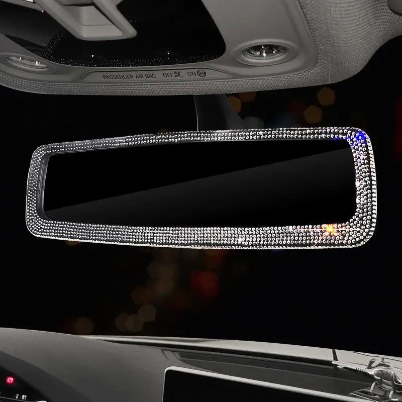 Bling Rhinestone Car Rear View Mirror, Car Rear View Mirror with Crystal Diamonds Bling Rhinestones Car Rear View Mirror for Women,Car Interior Trim