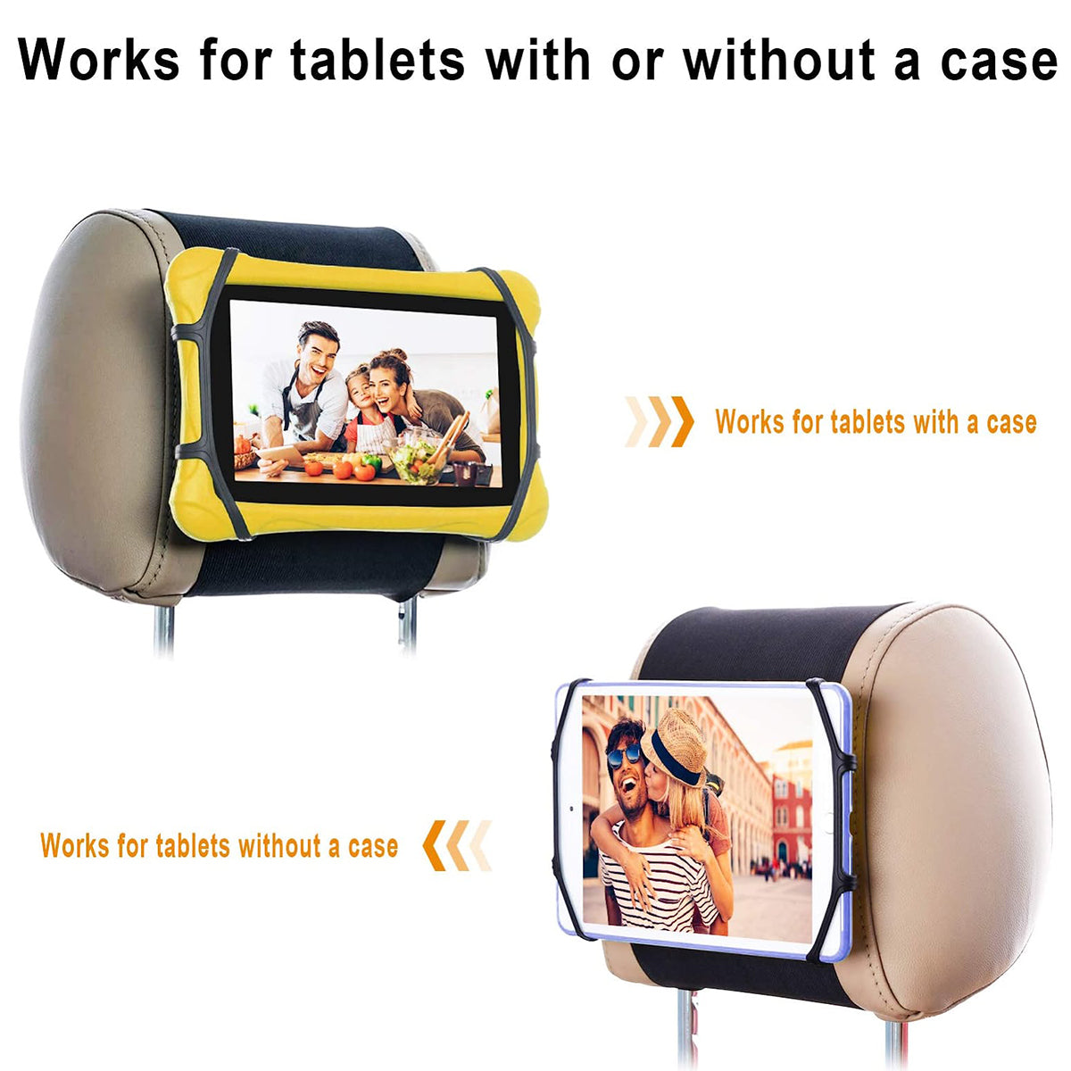 Car Headrest Mount Holder, Custom fit for Car, Tablet Holder for Kids in Back Seats, Anti-Slip Strap and Holding Net, Angle-Adjustable/ Fits All 7 Inch to 10.5 Inch Tablets