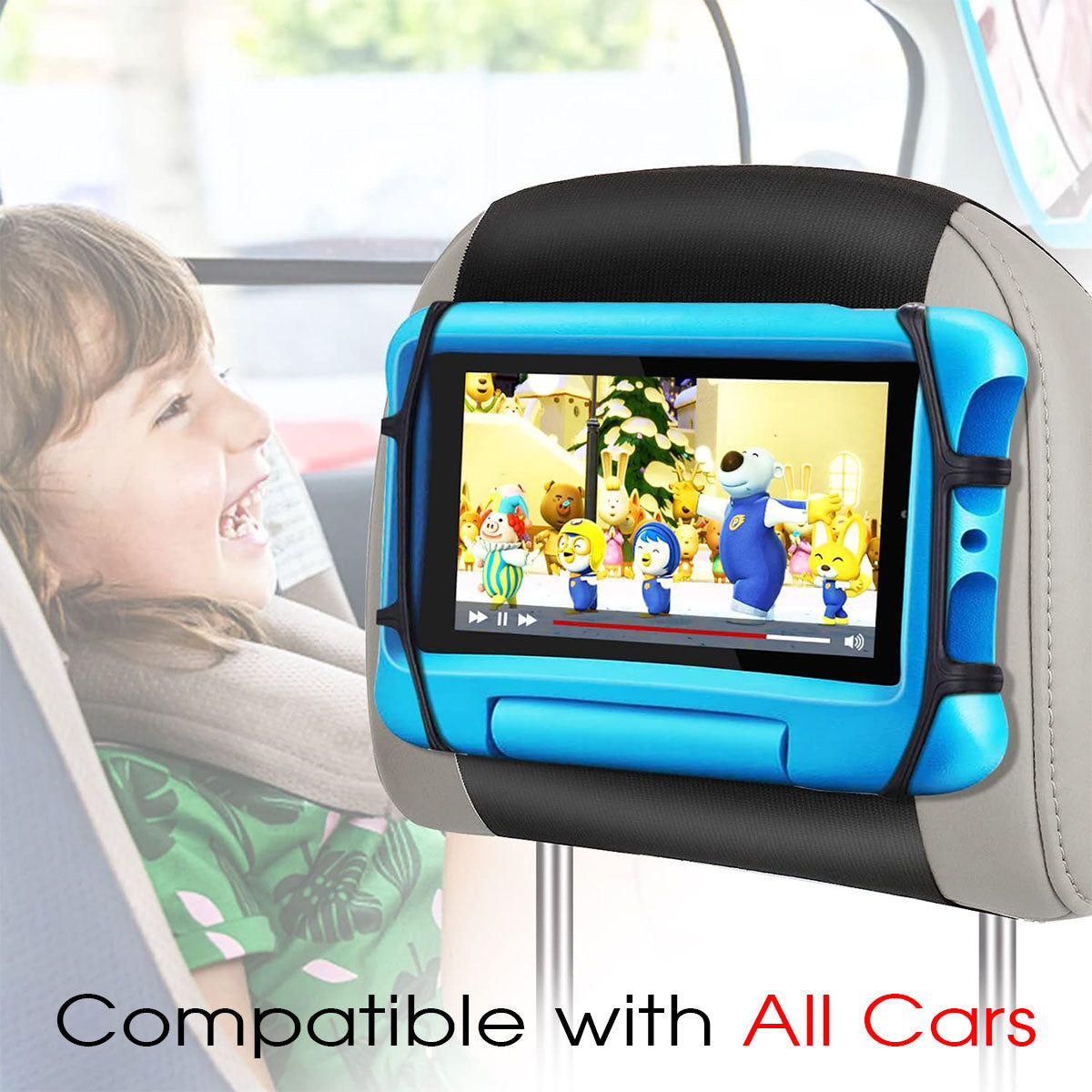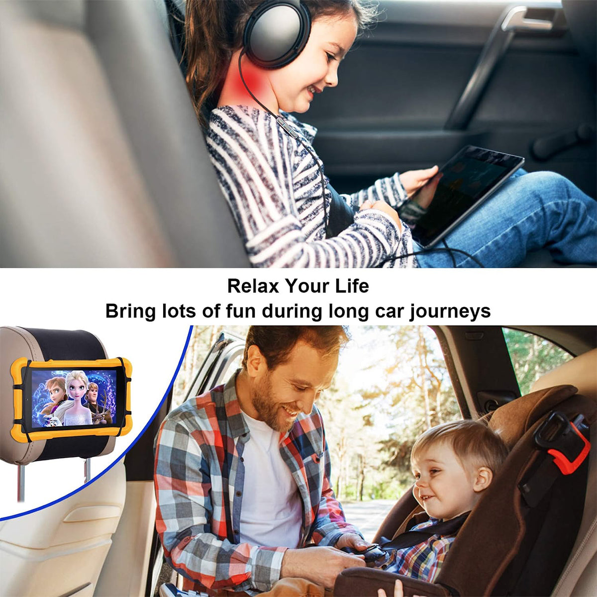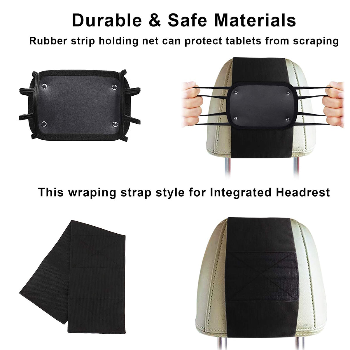 Car Headrest Mount Holder, Custom Fit For Your Cars, Tablet Holder for Kids in Back Seats, Anti-Slip Strap and Holding Net, Angle-Adjustable/ Fits All 7 Inch to 10.5 Inch Tablets