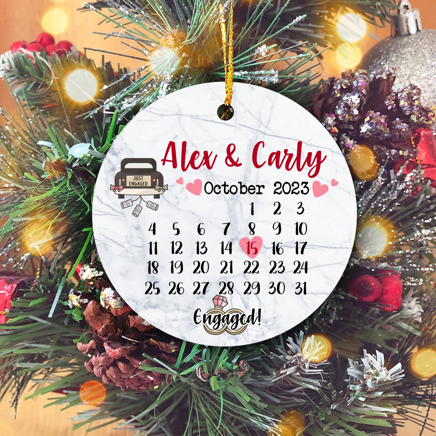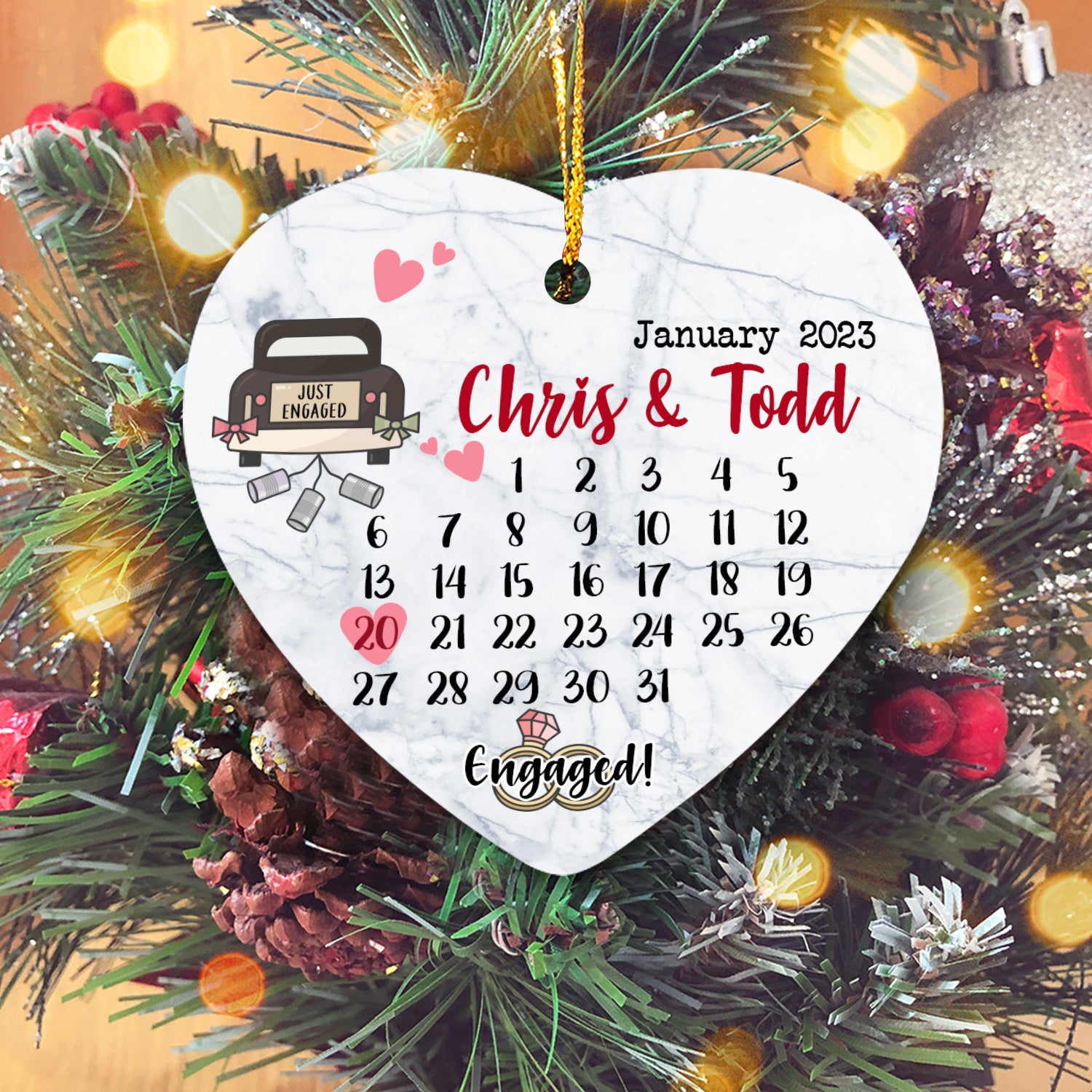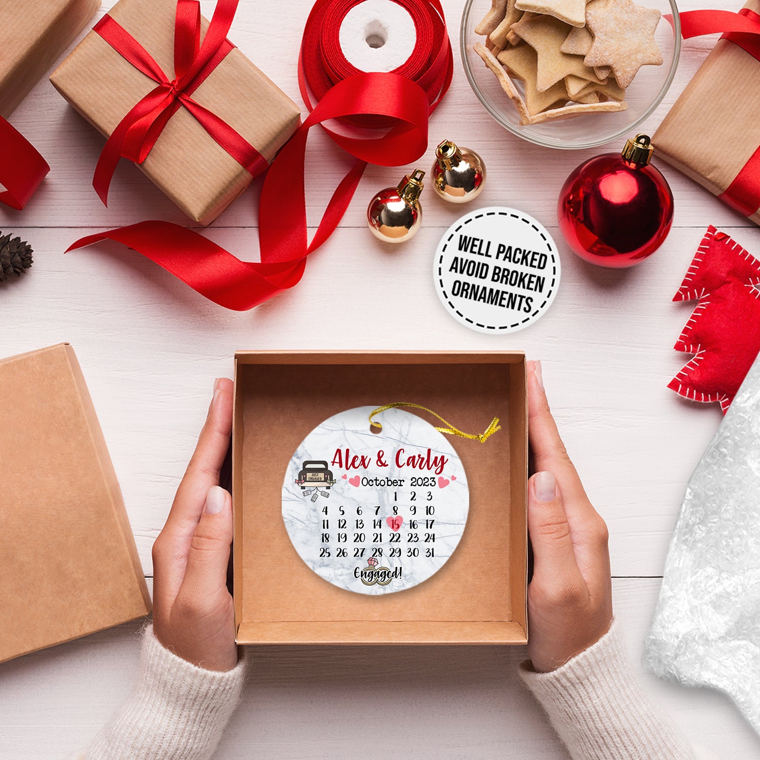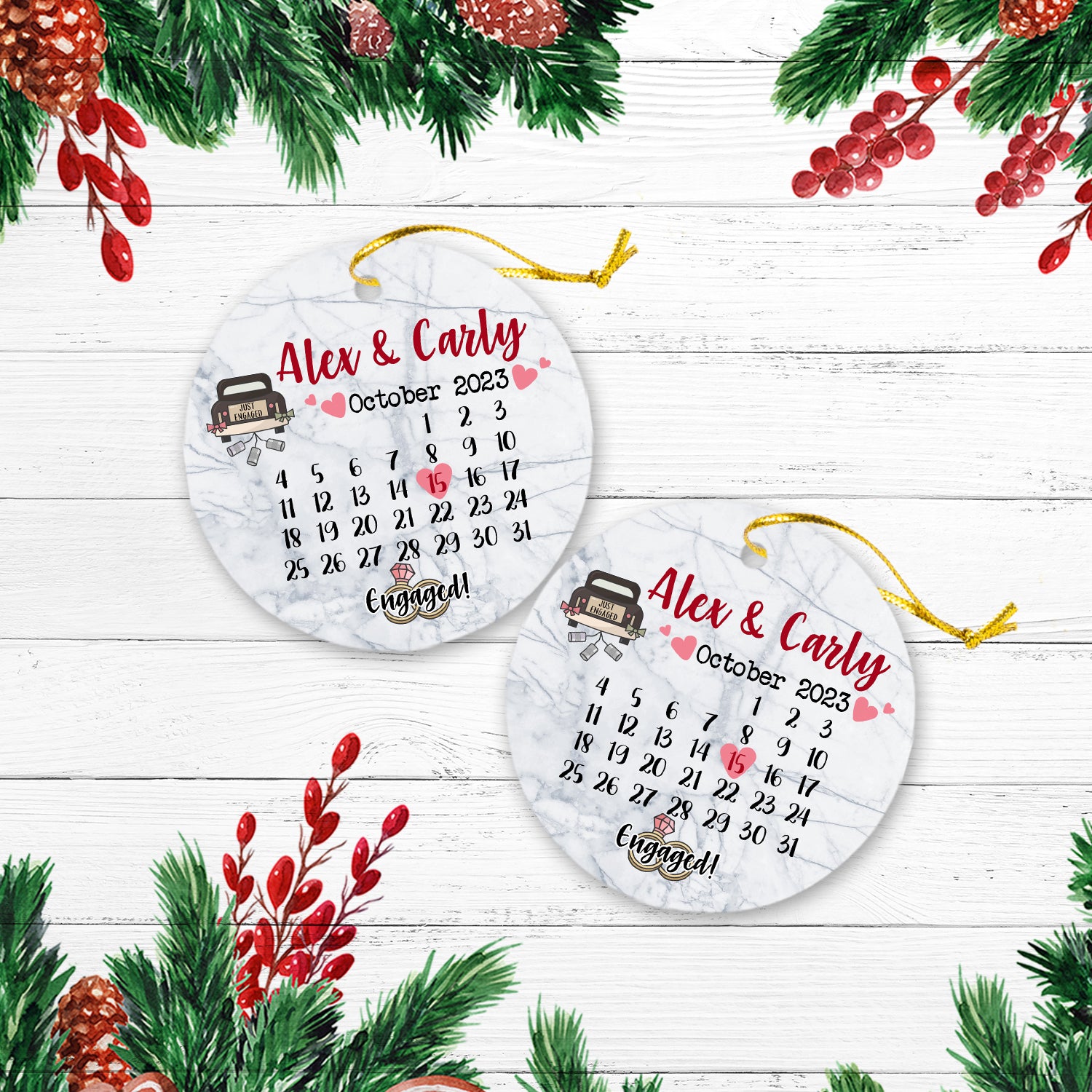 Calendar Couple Engaged Personalized Custom Name Christmas Premium Ceramic Ornaments Sets