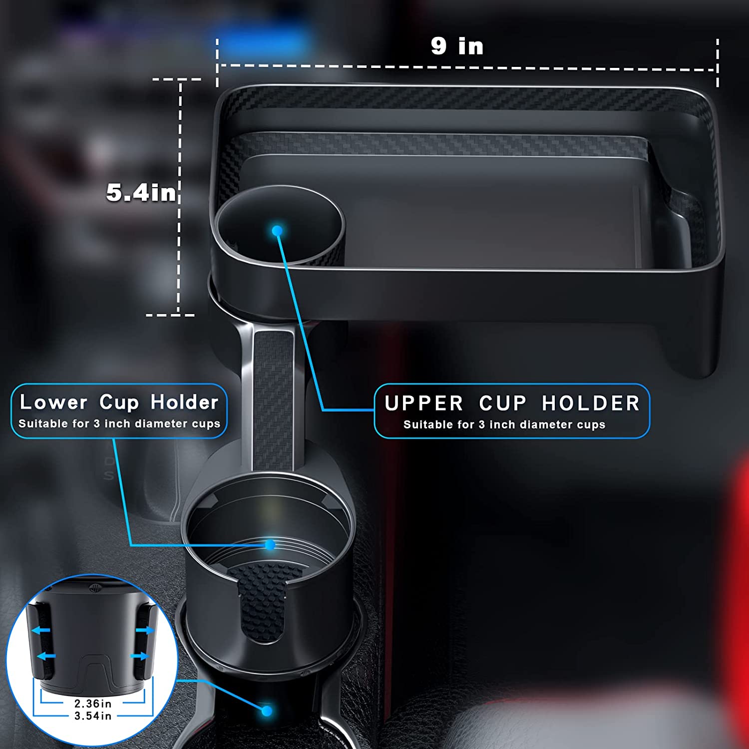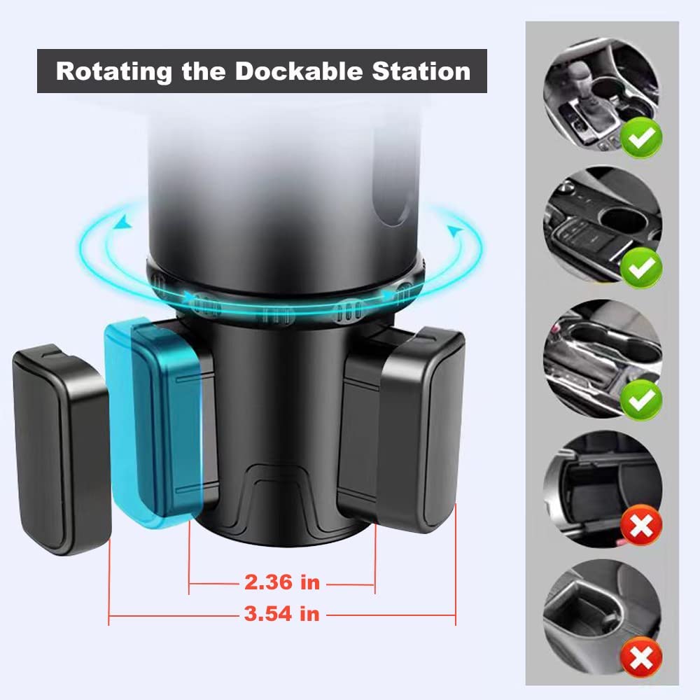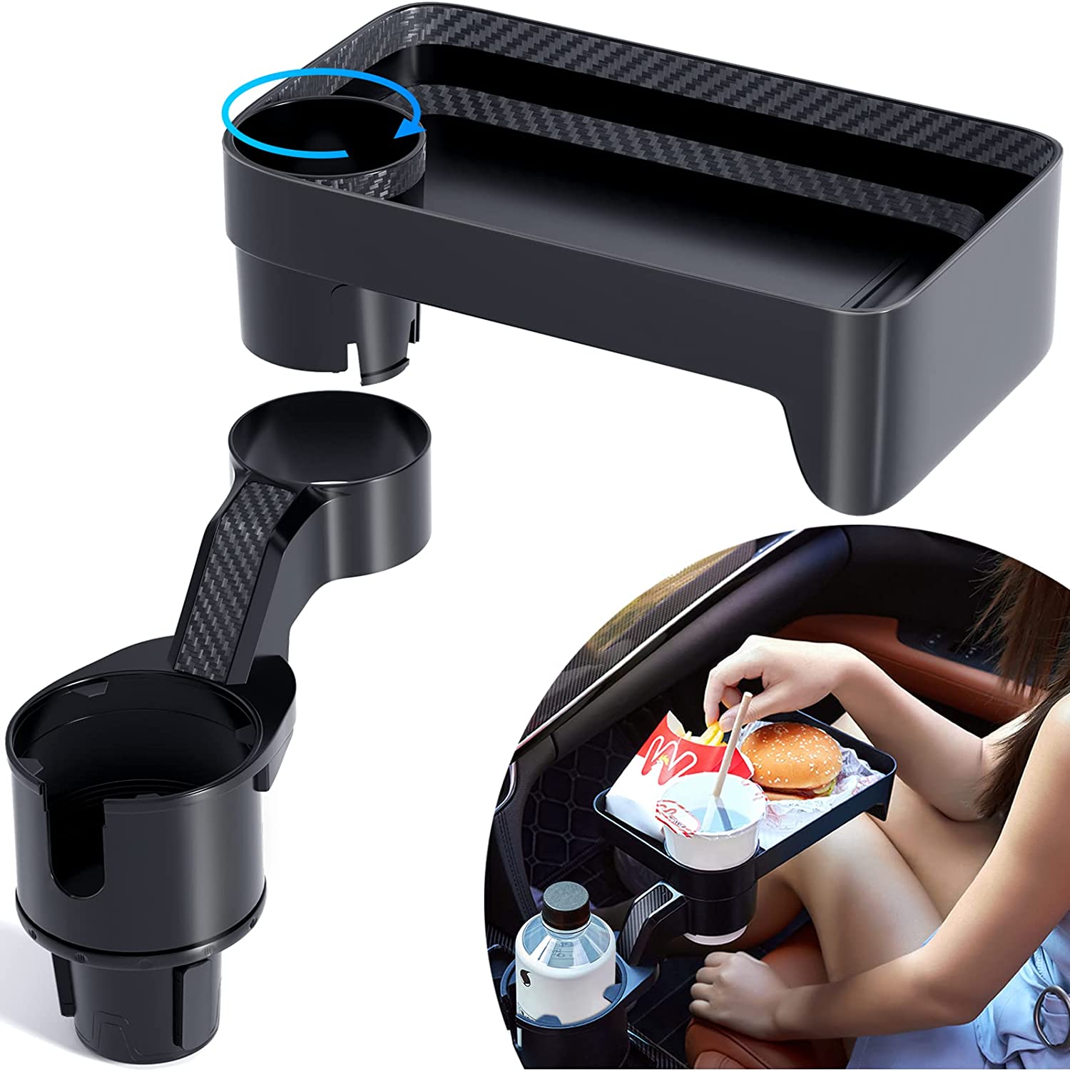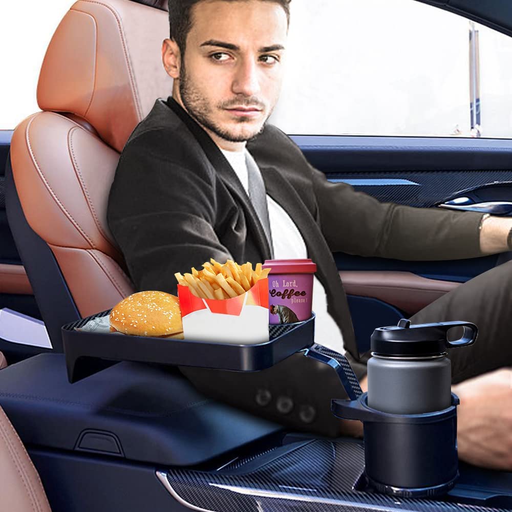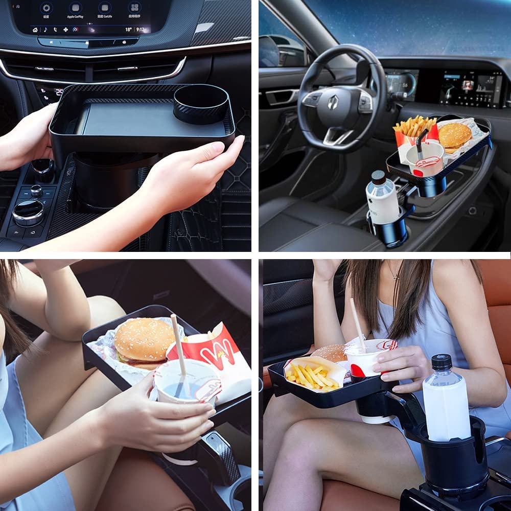 Car Cup Holder Tray,Cup Holder Tray,Car Cup Holder Tray Table,Car Cup Holder with Detachable Tray, Car Cup Holder Expander,Car Cup Holder with 360 ° Rotation,fit in 2.36-3.54 inch Car Cup Holder, Compatible with All Cars