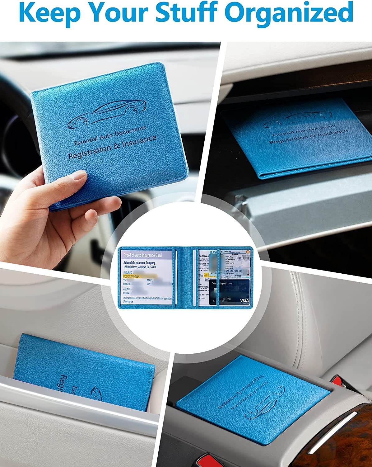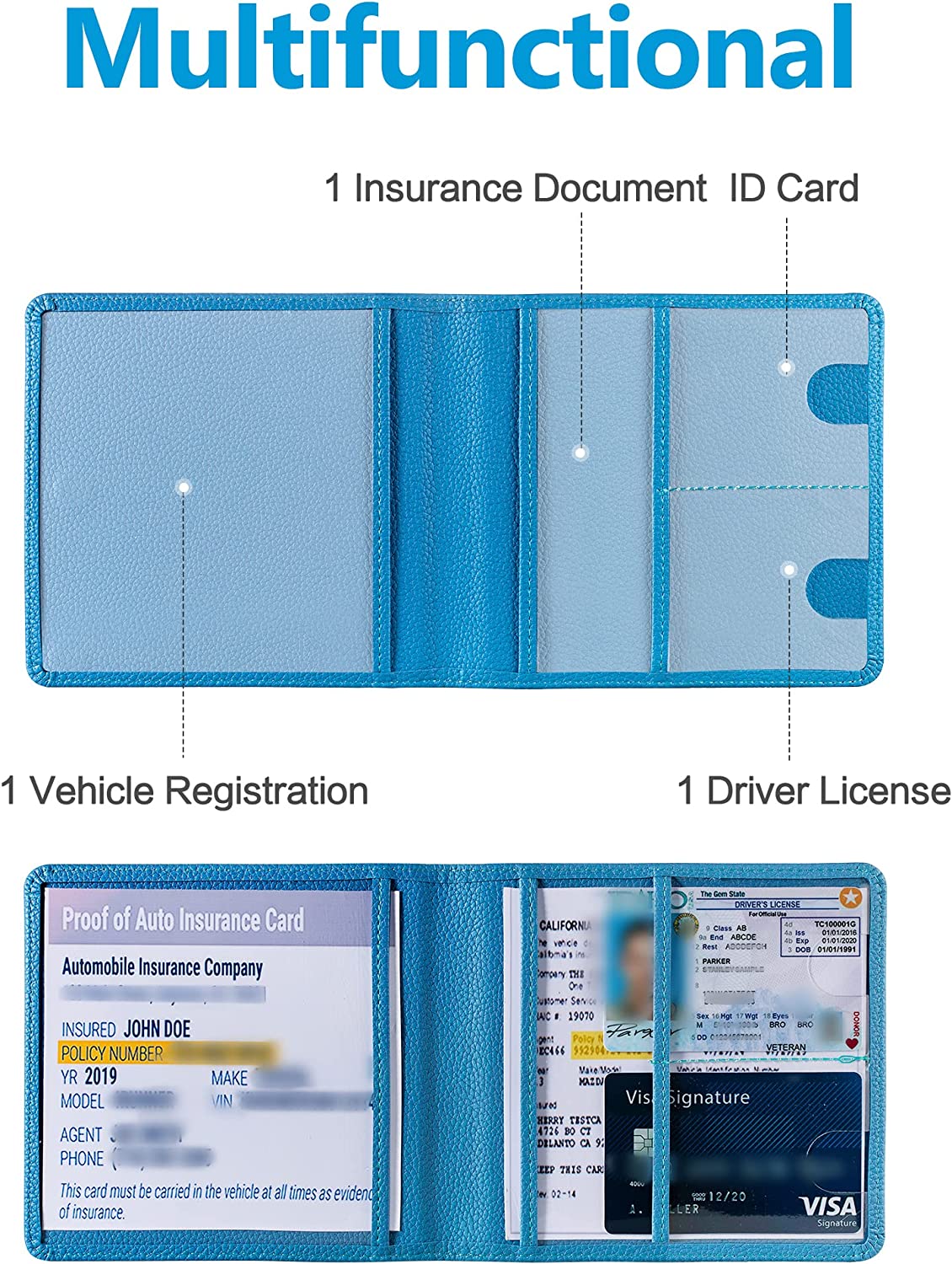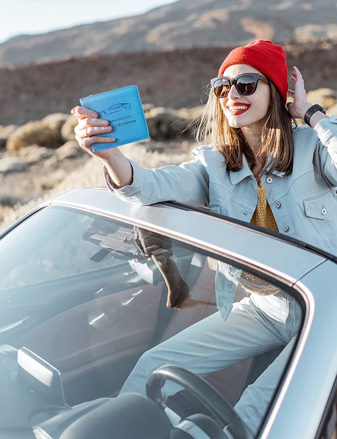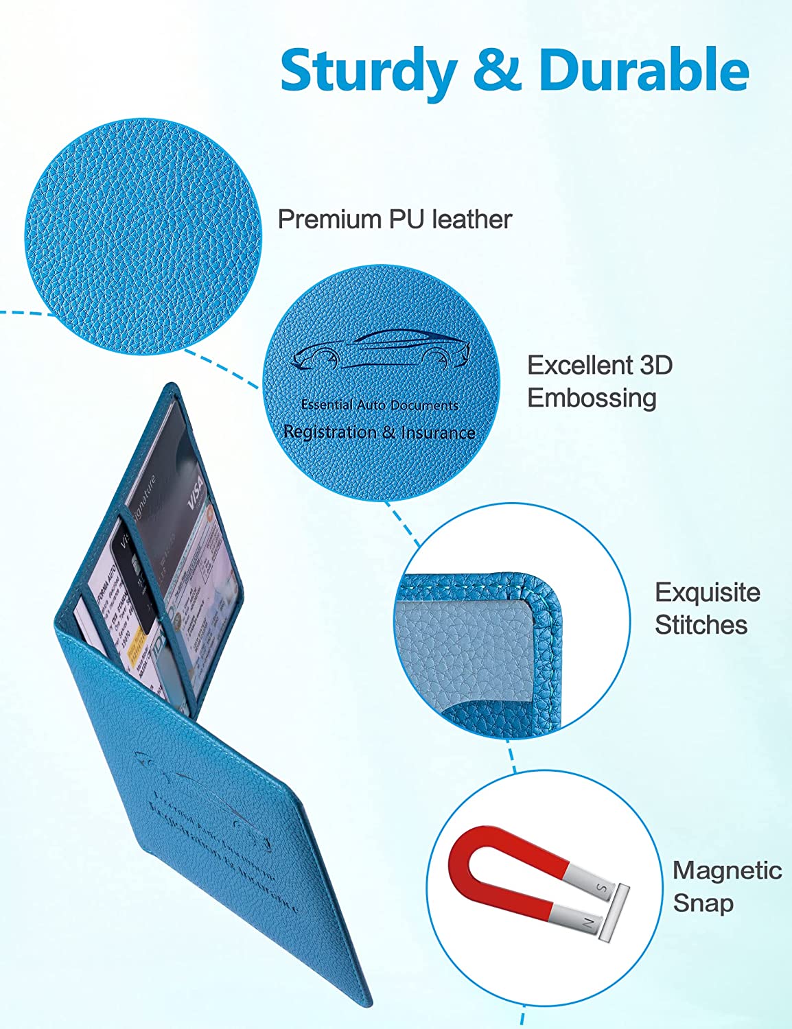 Car Registration and Insurance Holder, Car Document Holder with Magnetic Closure, Auto PU Leather Registration and Insurance Card Holder for Driver's License & Essential Documents