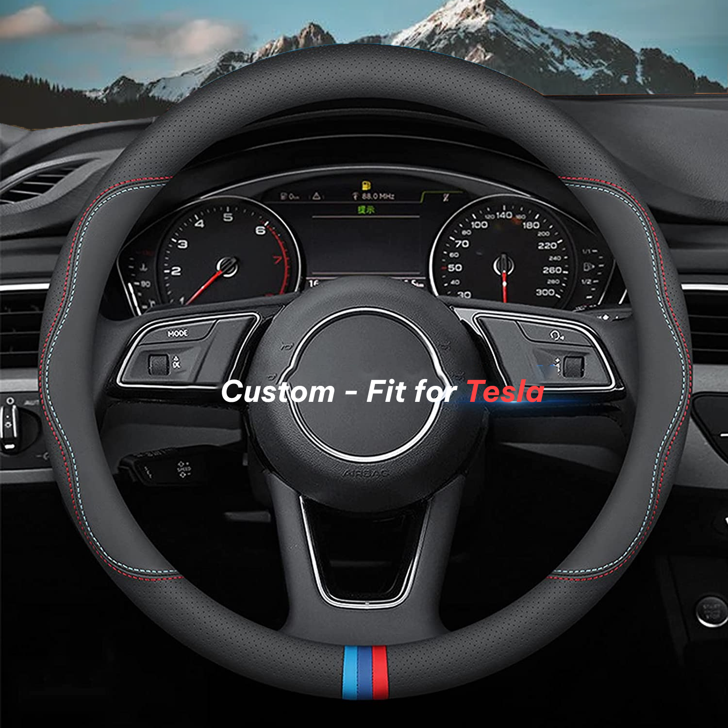 Car Steering Wheel Cover 2024 Update Version, Custom-Fit for Car, Premium Leather Car Steering Wheel Cover with Logo, Car Accessories WATY222