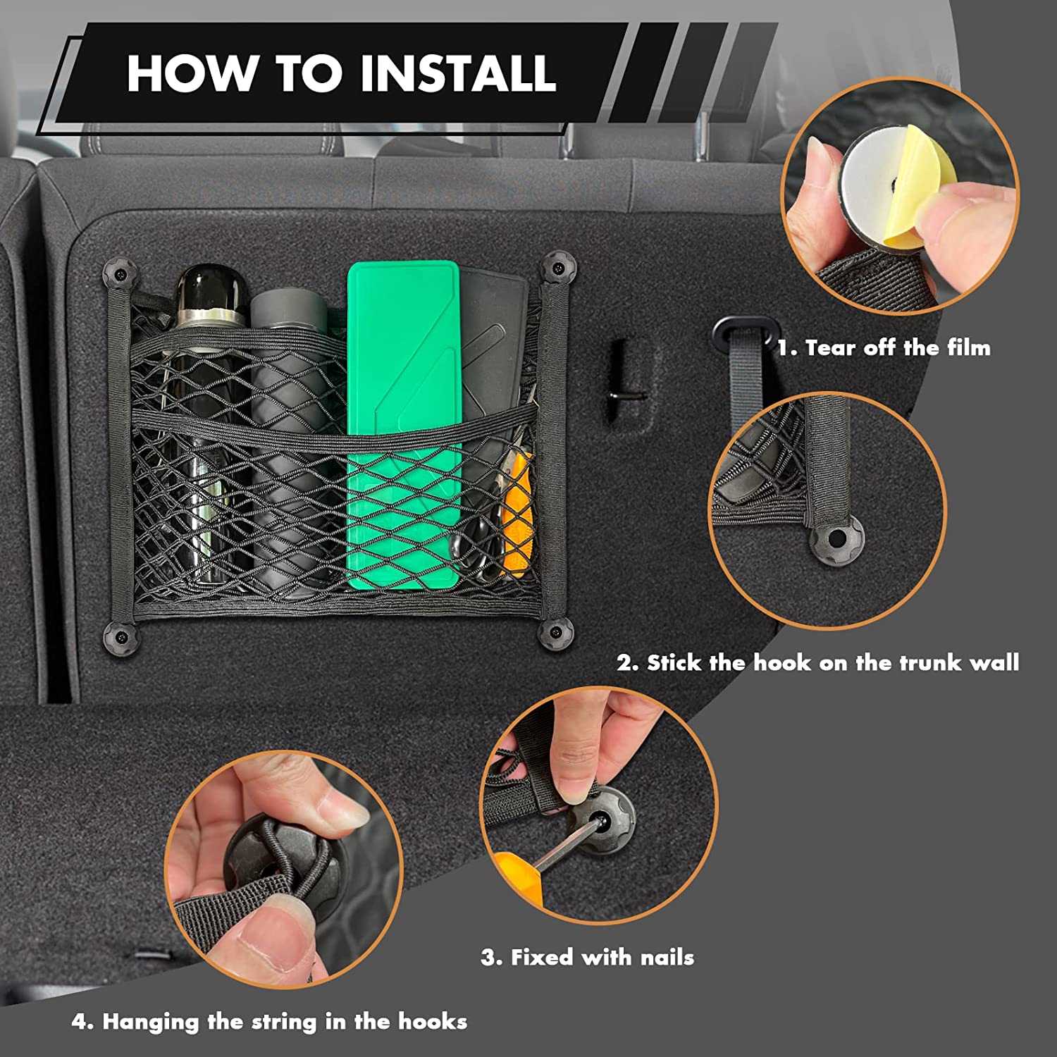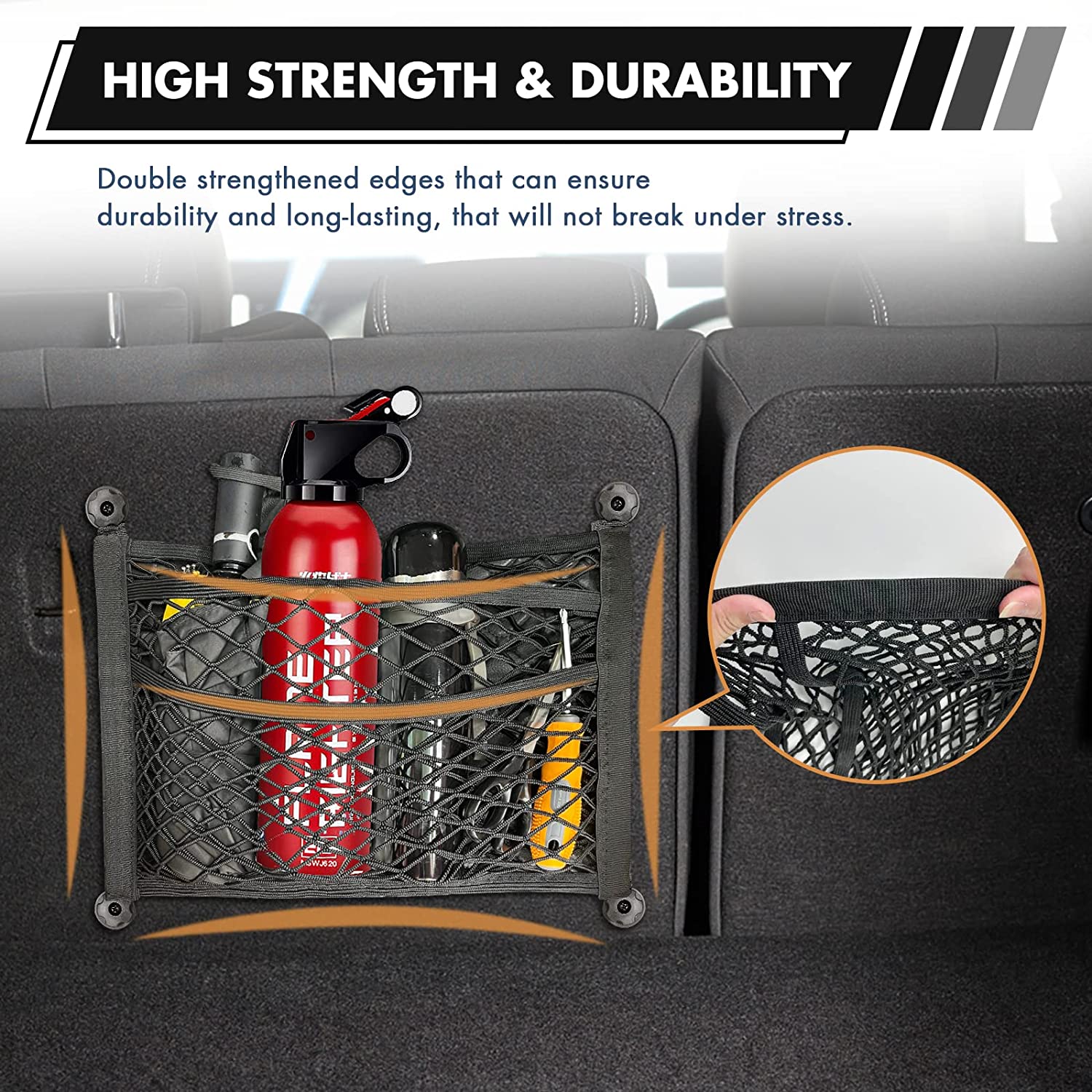 Cargo Net, Compatible with All Cars, 2 Pack Universal Mesh Cargo Net for Car Storage, Car-Net Pocket Storage Stretchable Mesh Pocket Net Wall Sticker Organizer Pouch Bag Storage Mesh Net for Car, Trunk, RV, Boats, Home