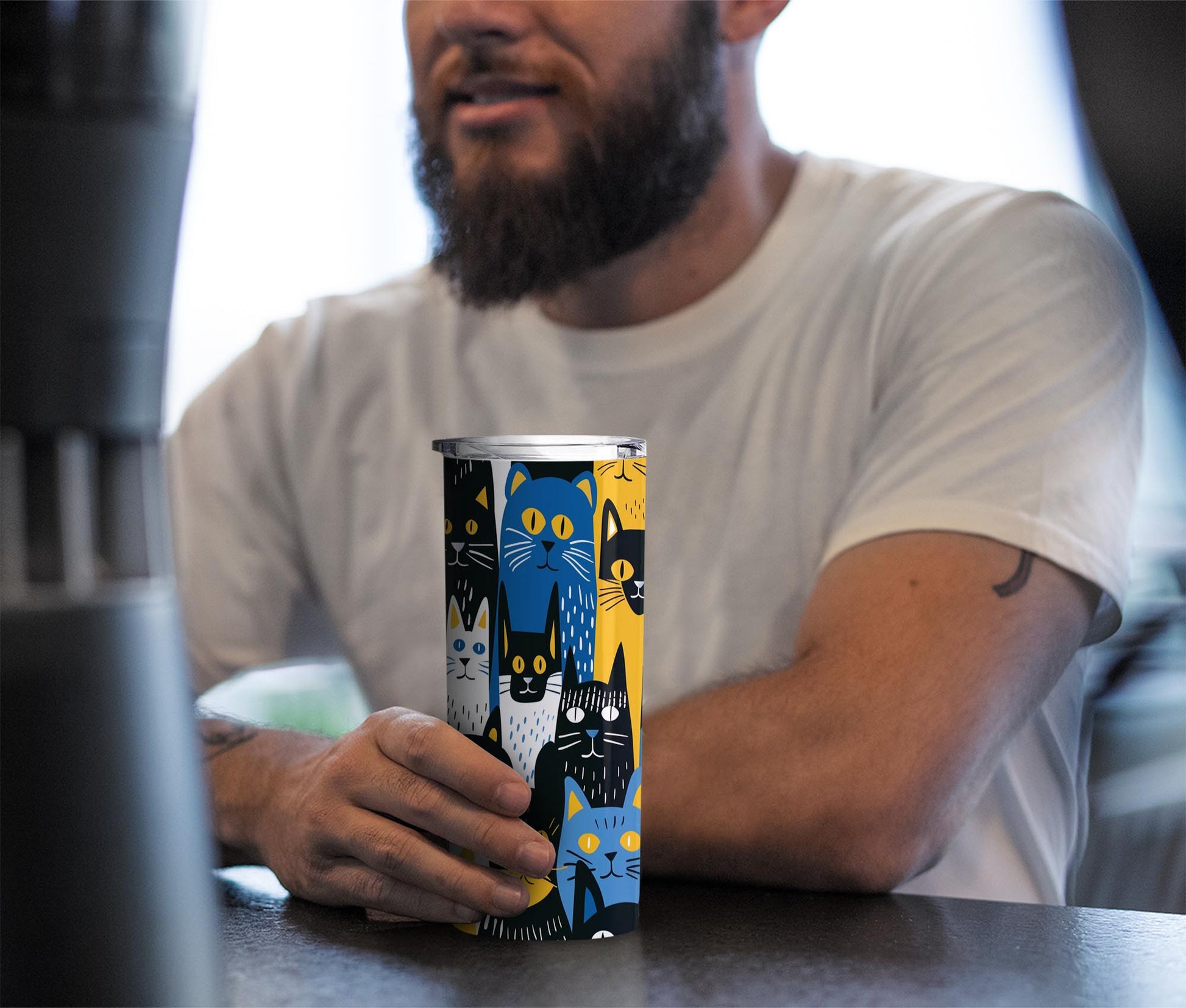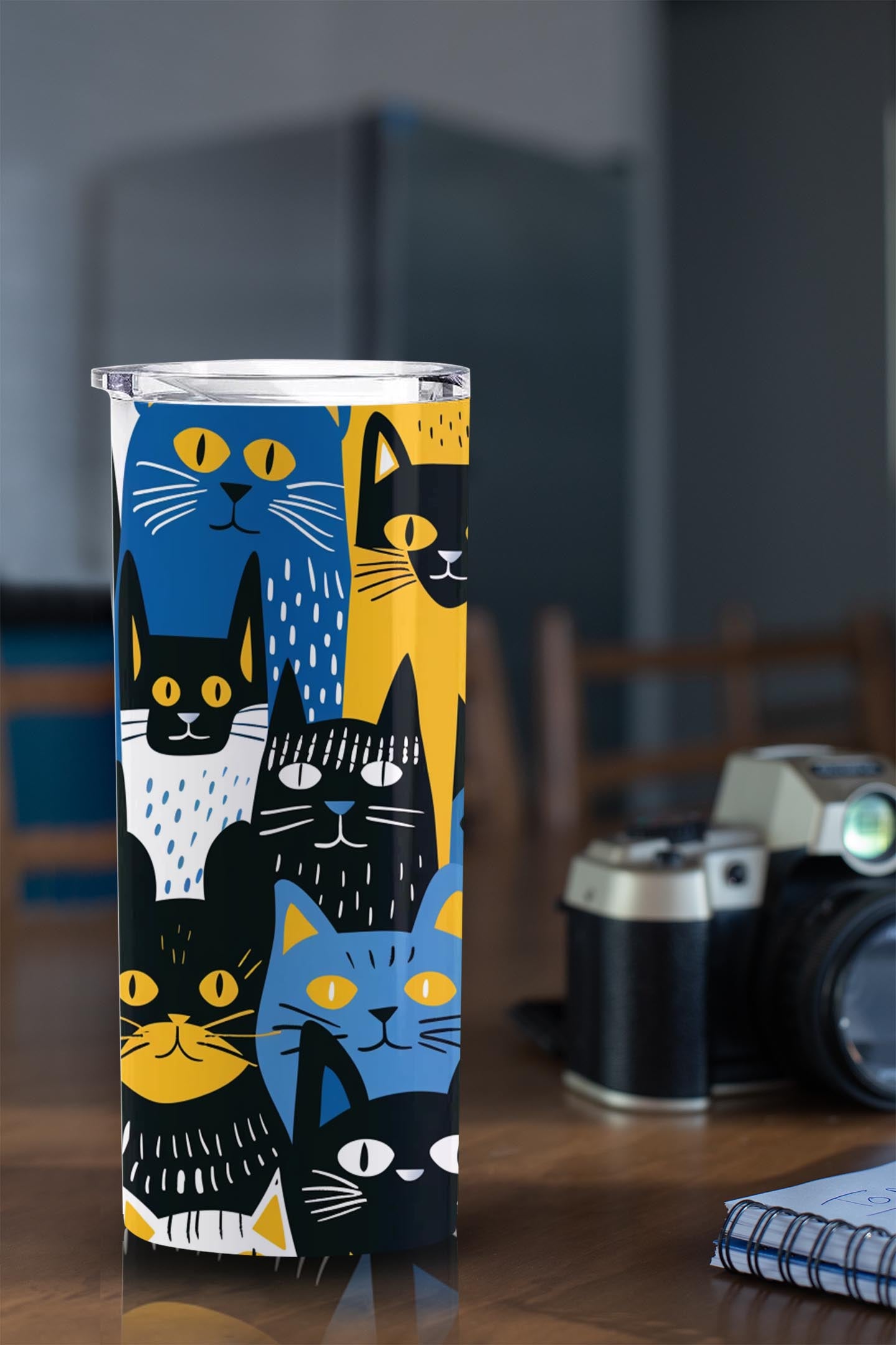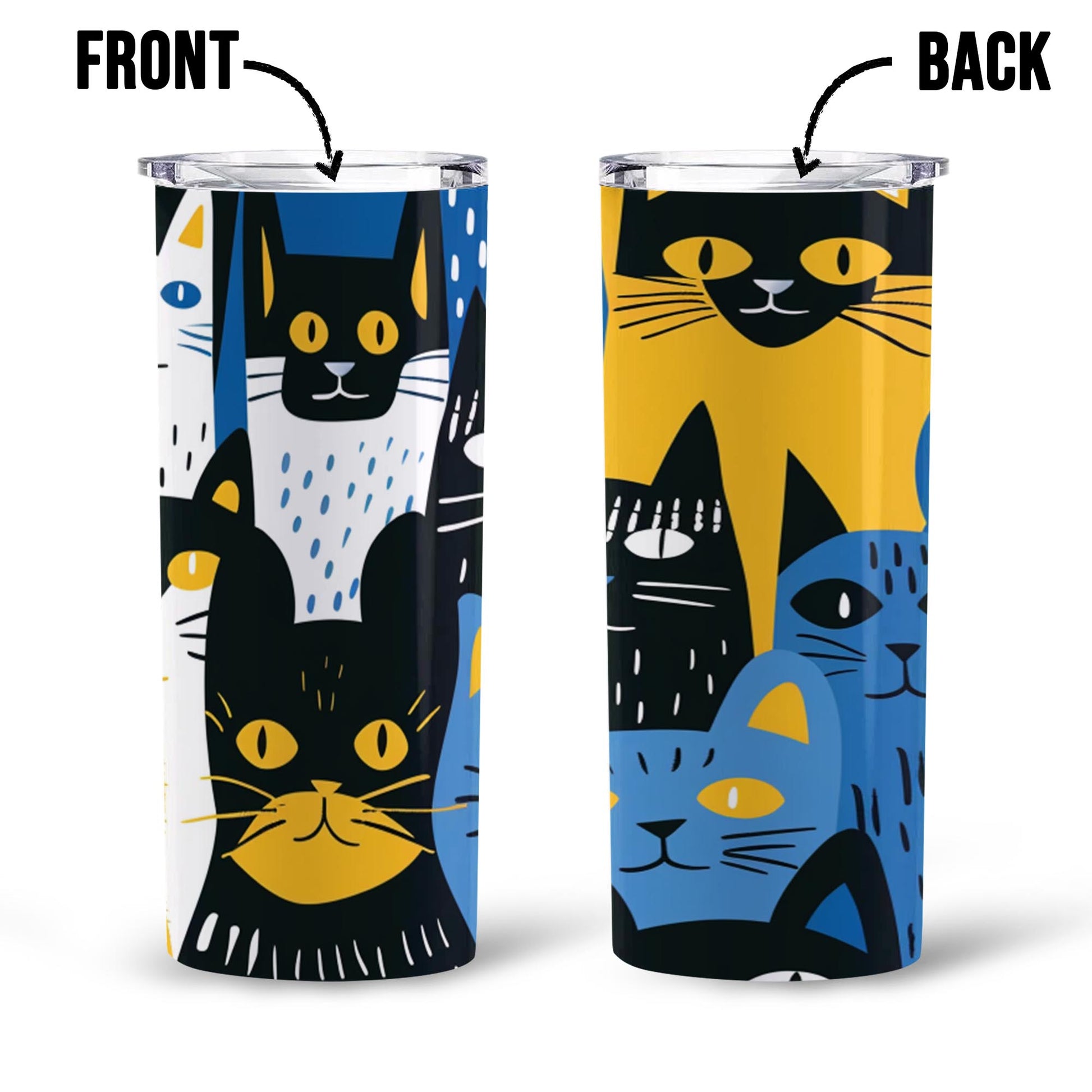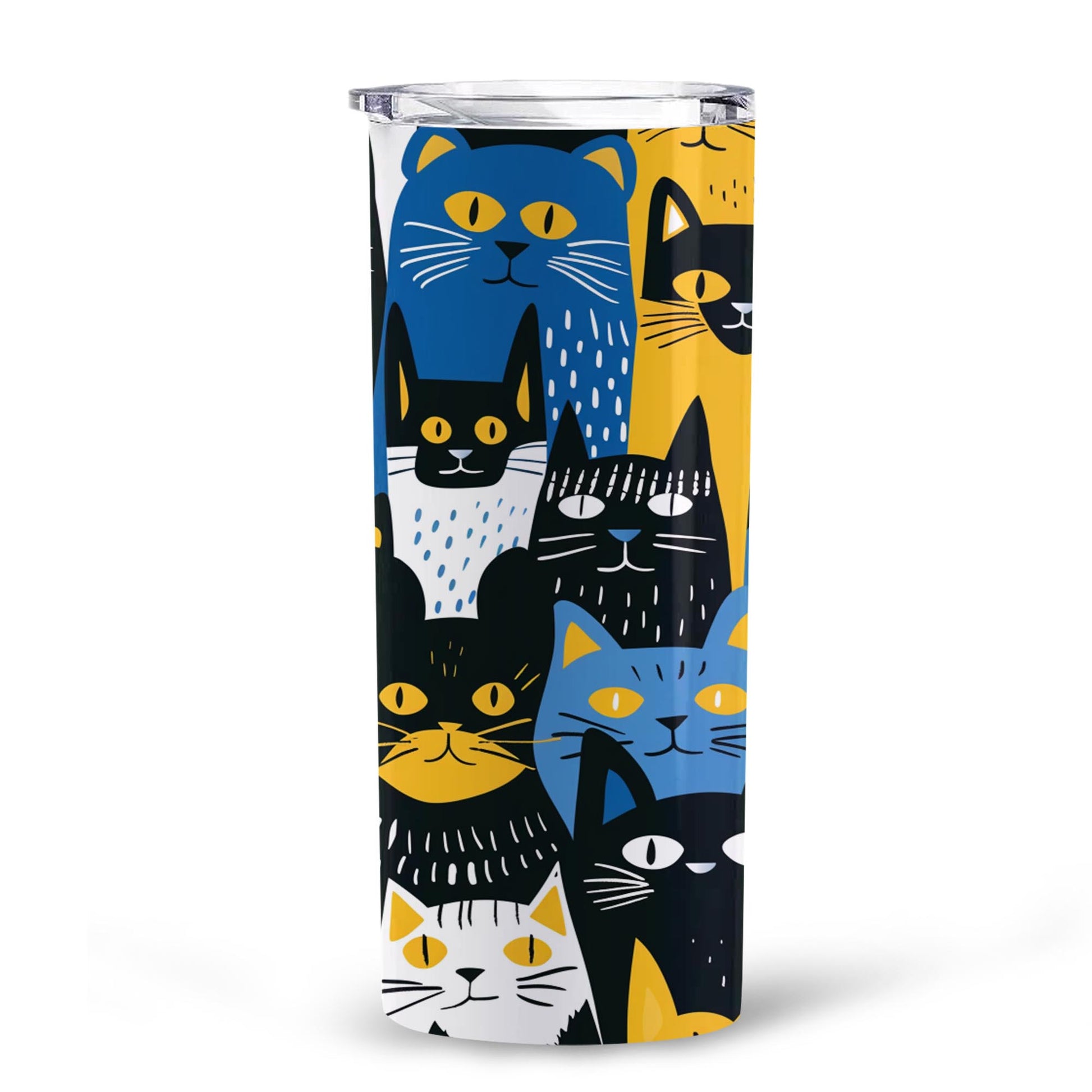 Cats in Yellow, Blue, Black, and White 20oz Skinny Tumbler, Holiday Skinny Tumbler, For Cat Lovers, Vibrant Tumbler, Trending Tumbler