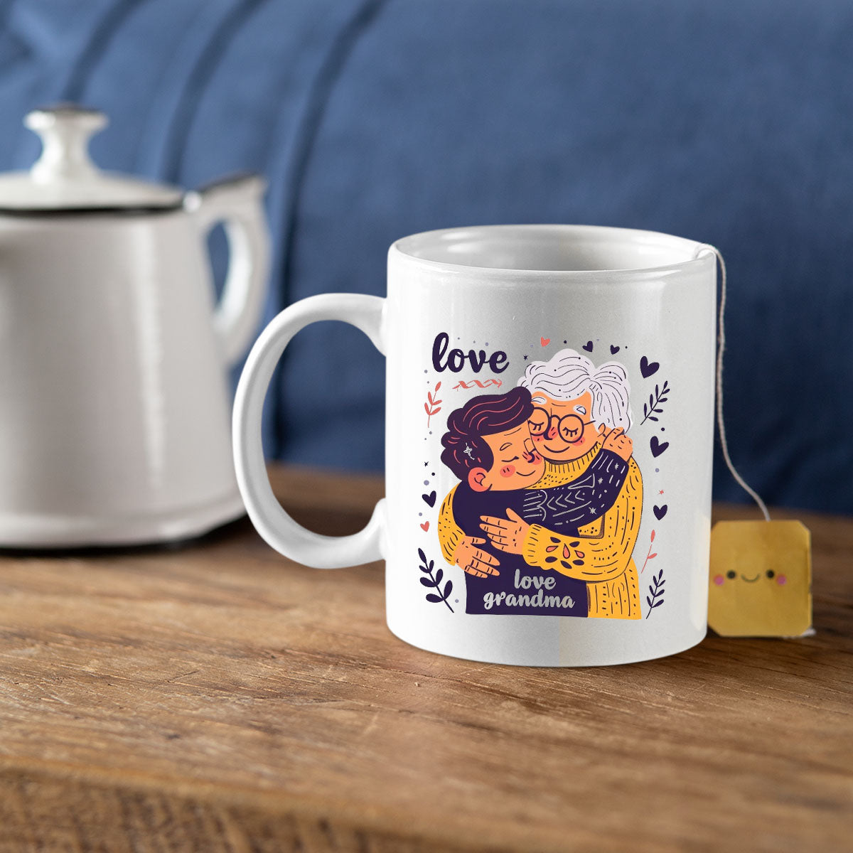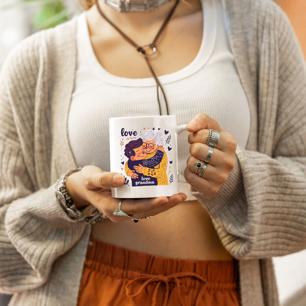 Grandma Mug, Grandma Gift For Grandma Birthday Gift Personalized Grandma Coffee Cup, Mothers Day Gift From Granddaughter Grandson, Cartoon Love Grandma
