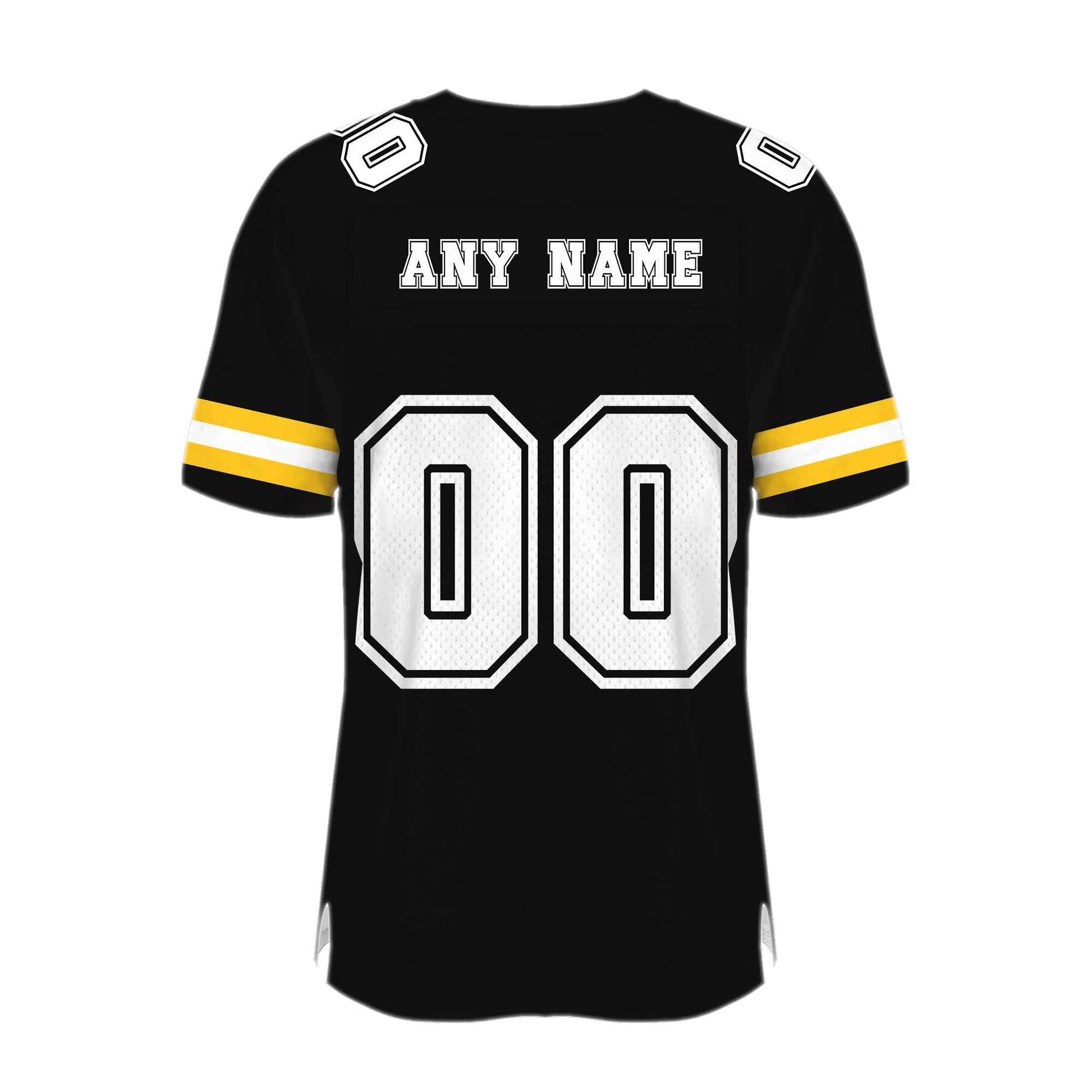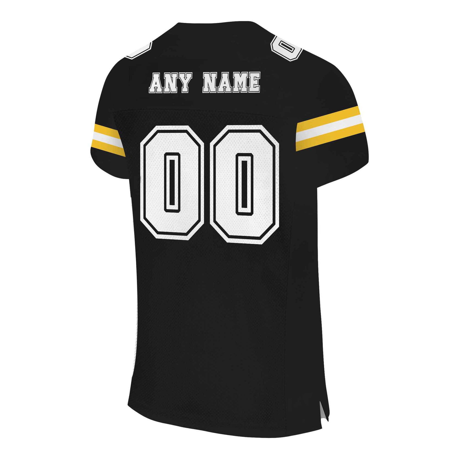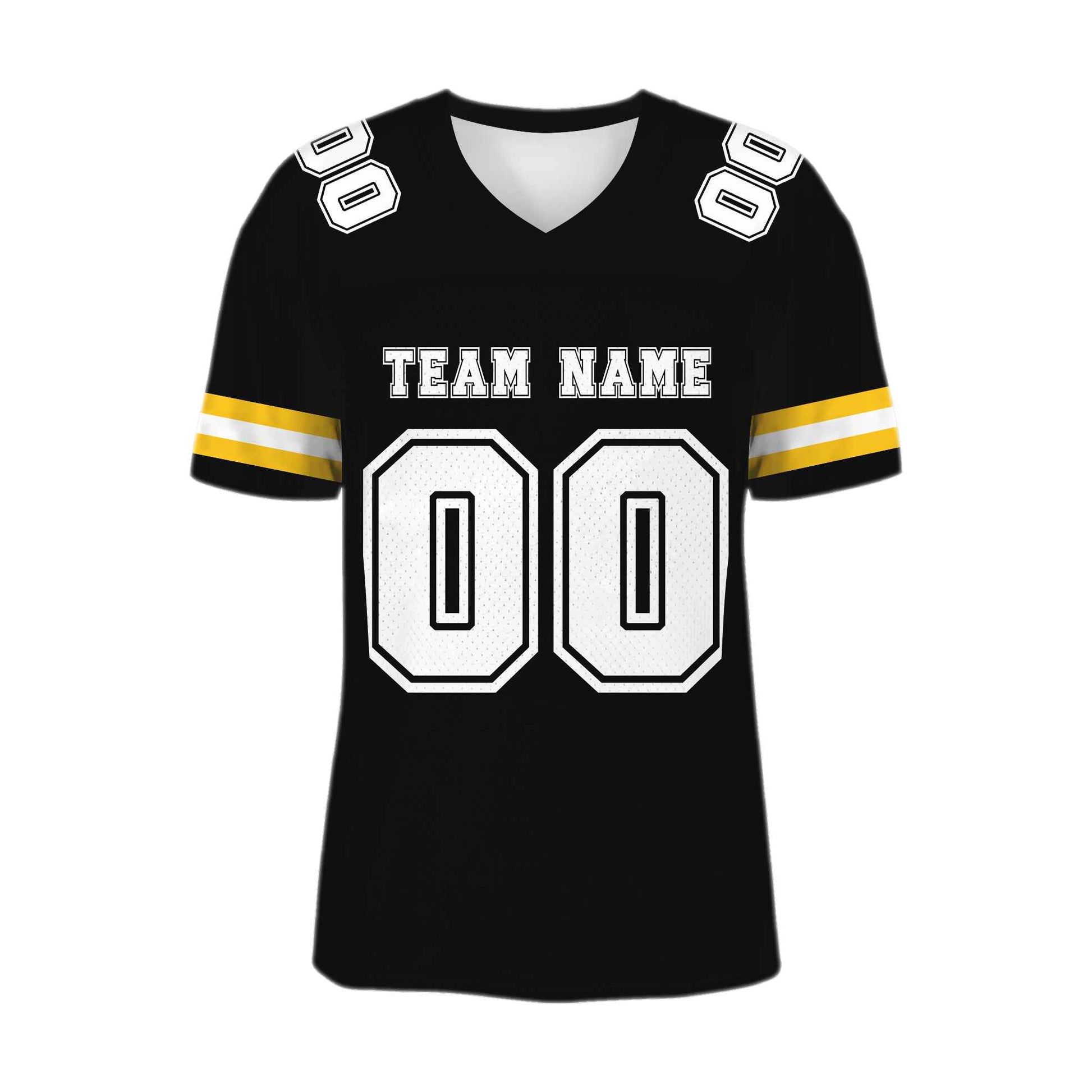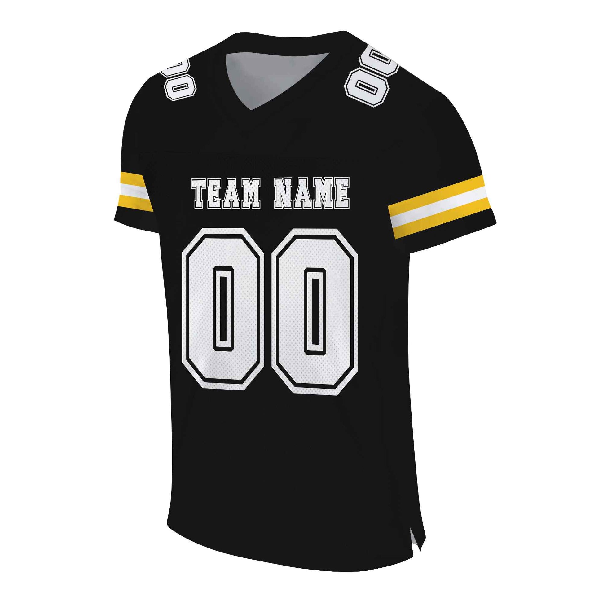 Custom Black White-Gold Mesh Authentic Football Jersey