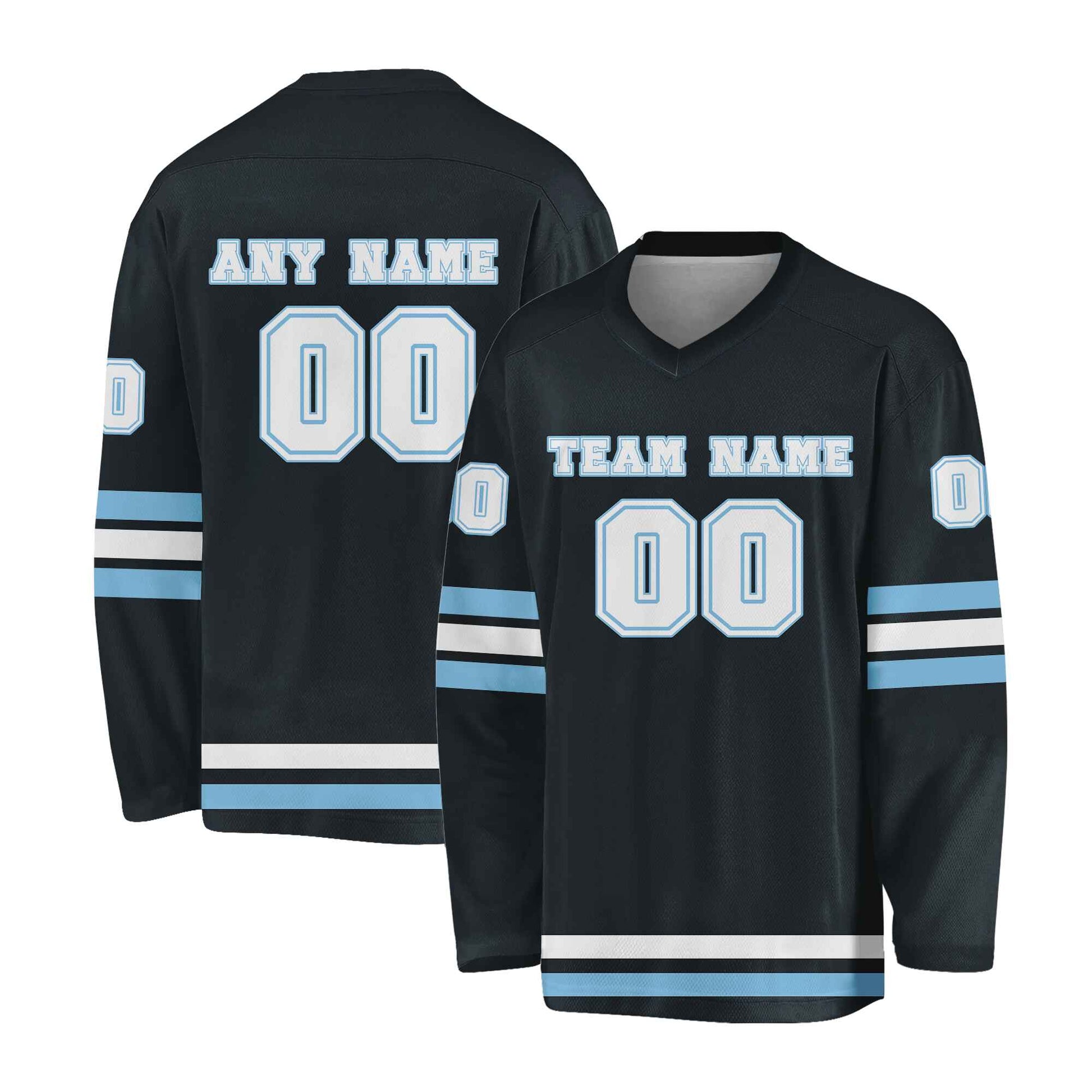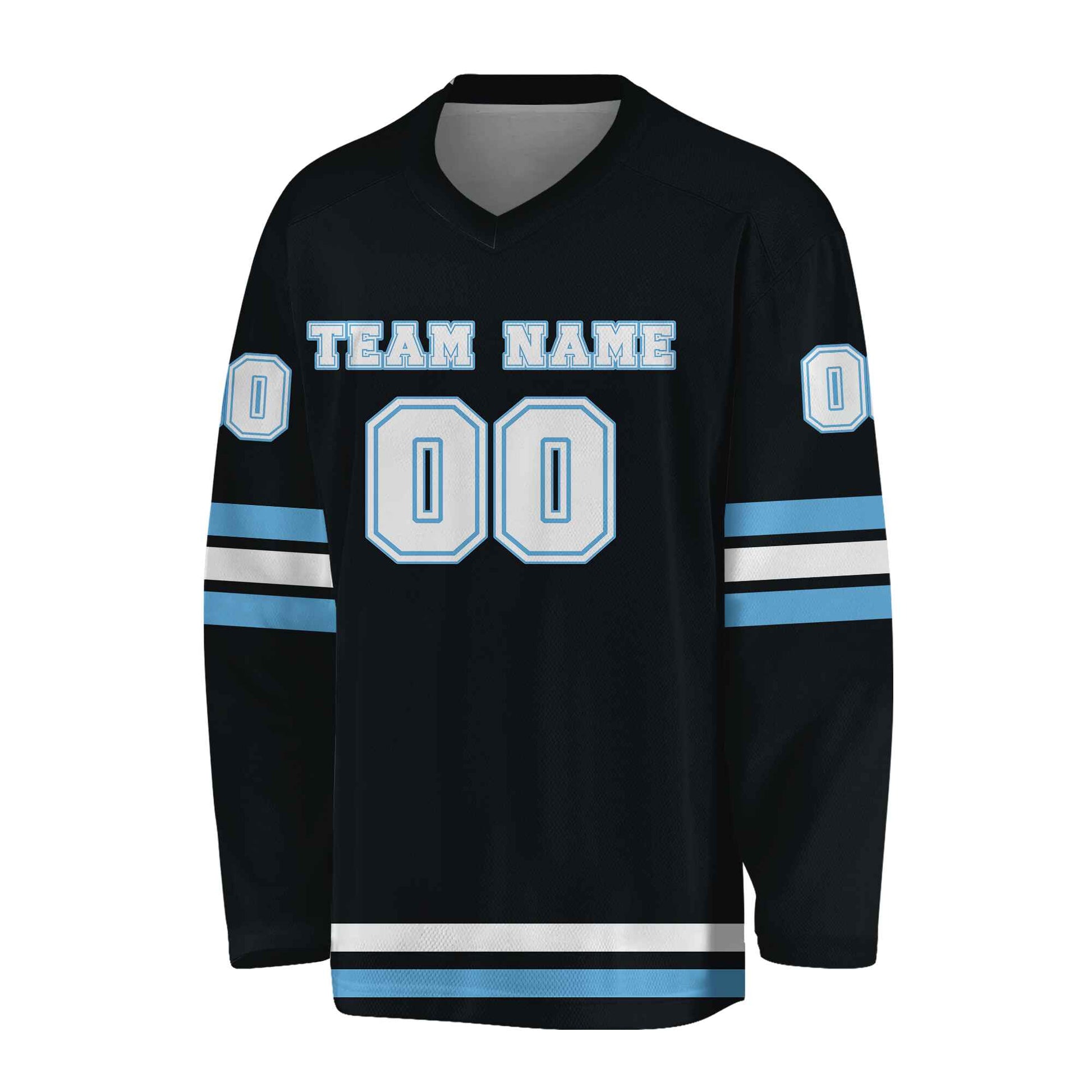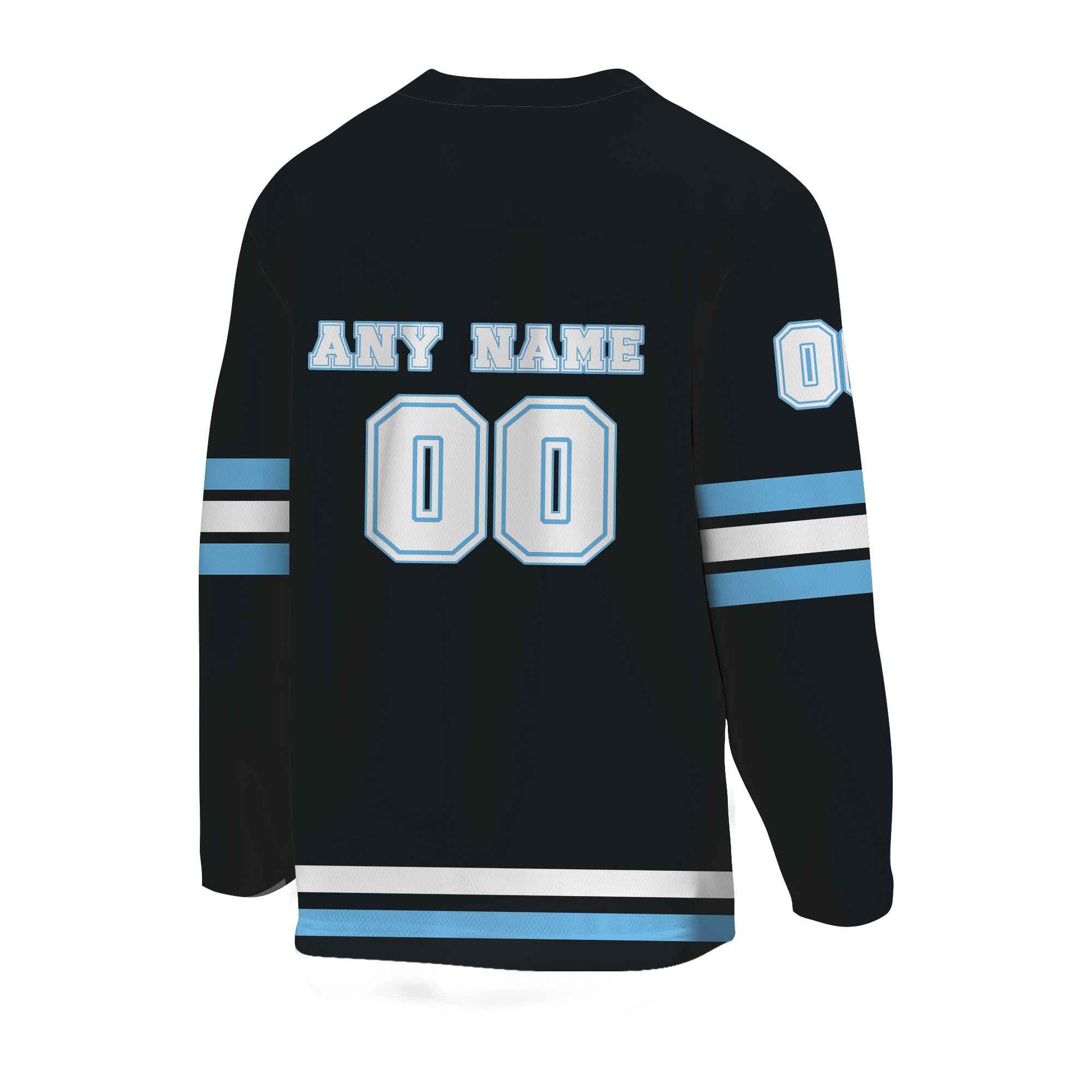 Custom Black White -Light Blue Hockey Jersey