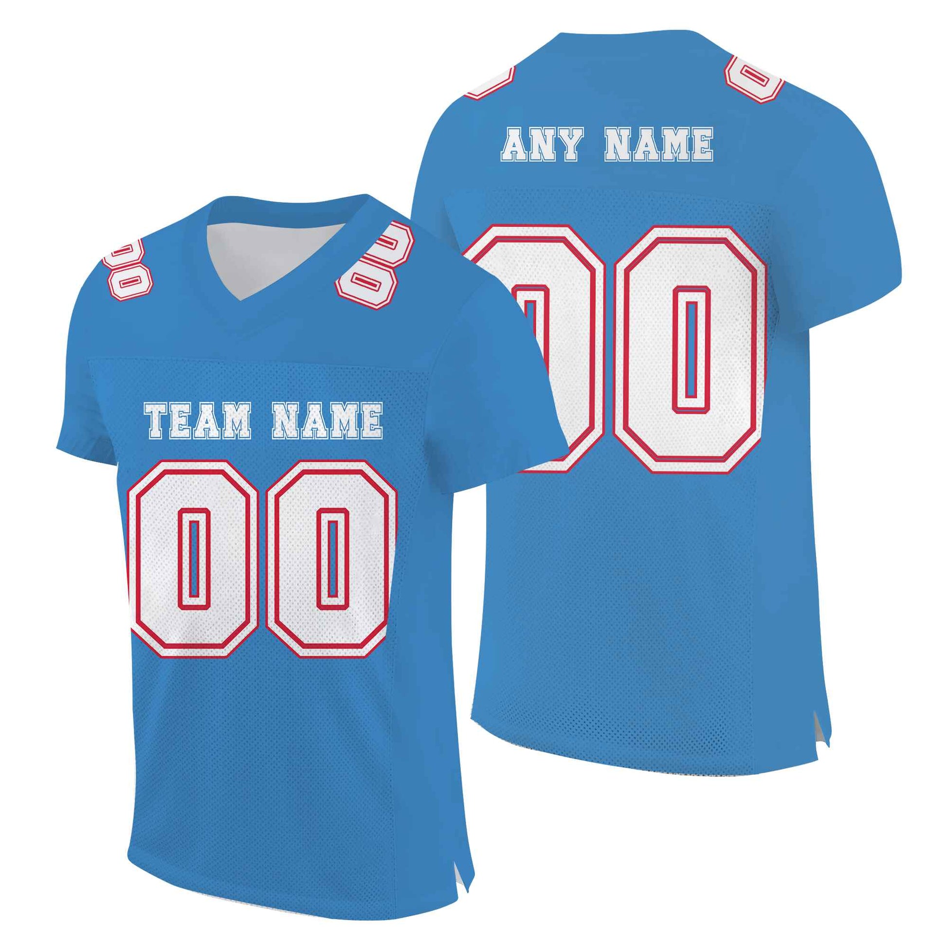 Custom Blue White-Red Mesh Authentic Football Jersey