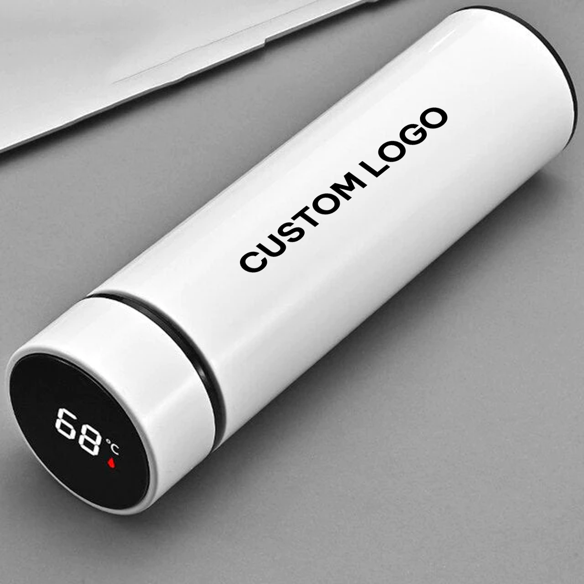 Custom Logo 17oz Insulated Water Bottle with LED Temperature Display, Fit with Cars, Coffee Tea Infuser Bottle Double Wall Vacuum Insulated Water Bottle for Hot or Cold Drink, Stainless Steel Sports Automotive Travel Mug