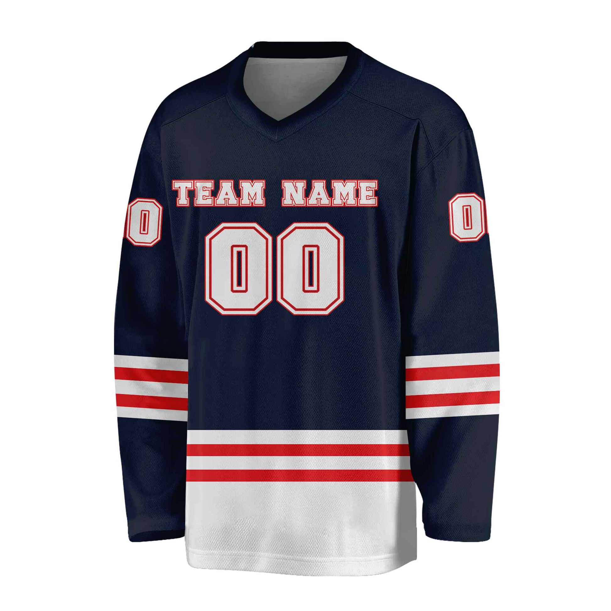 Custom Navy White-Red Hockey Jersey
