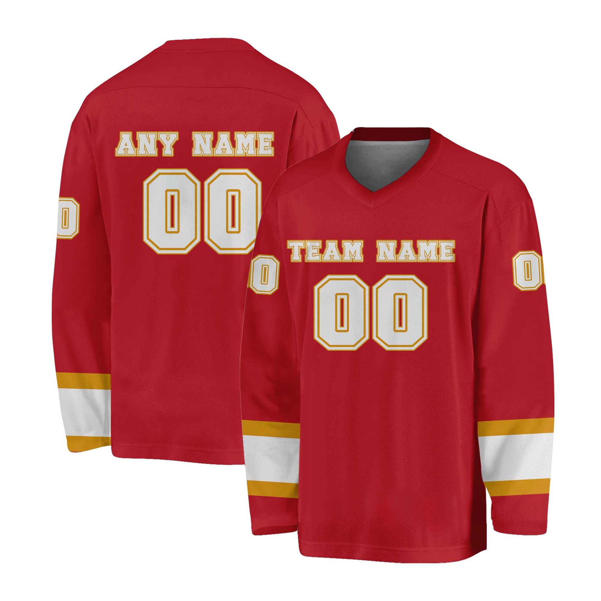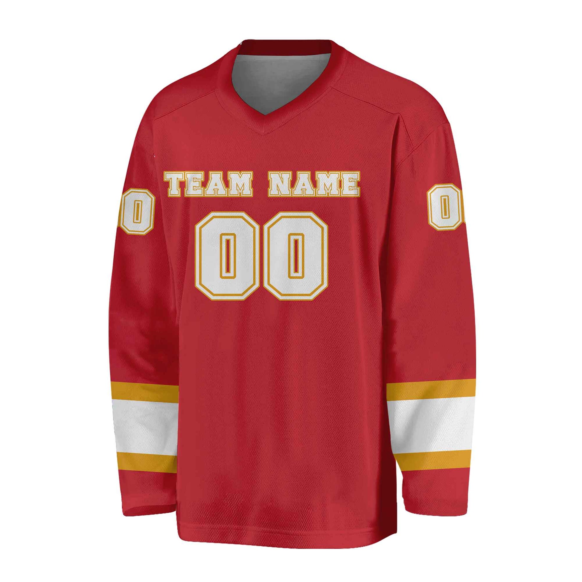 Custom Red Gold-White Hockey Jersey