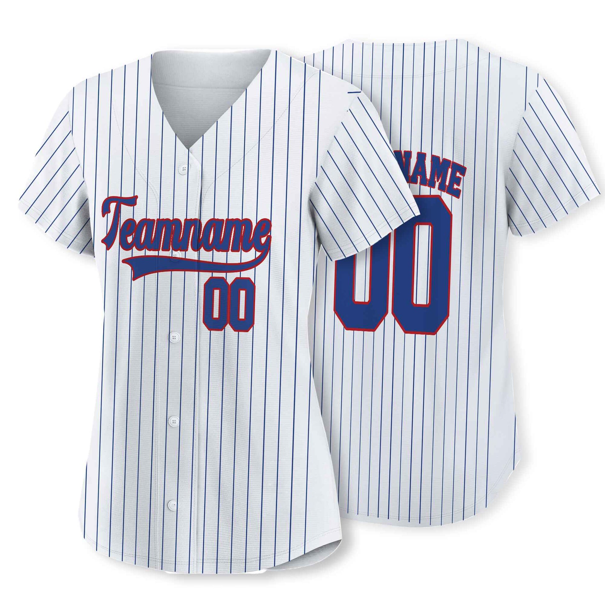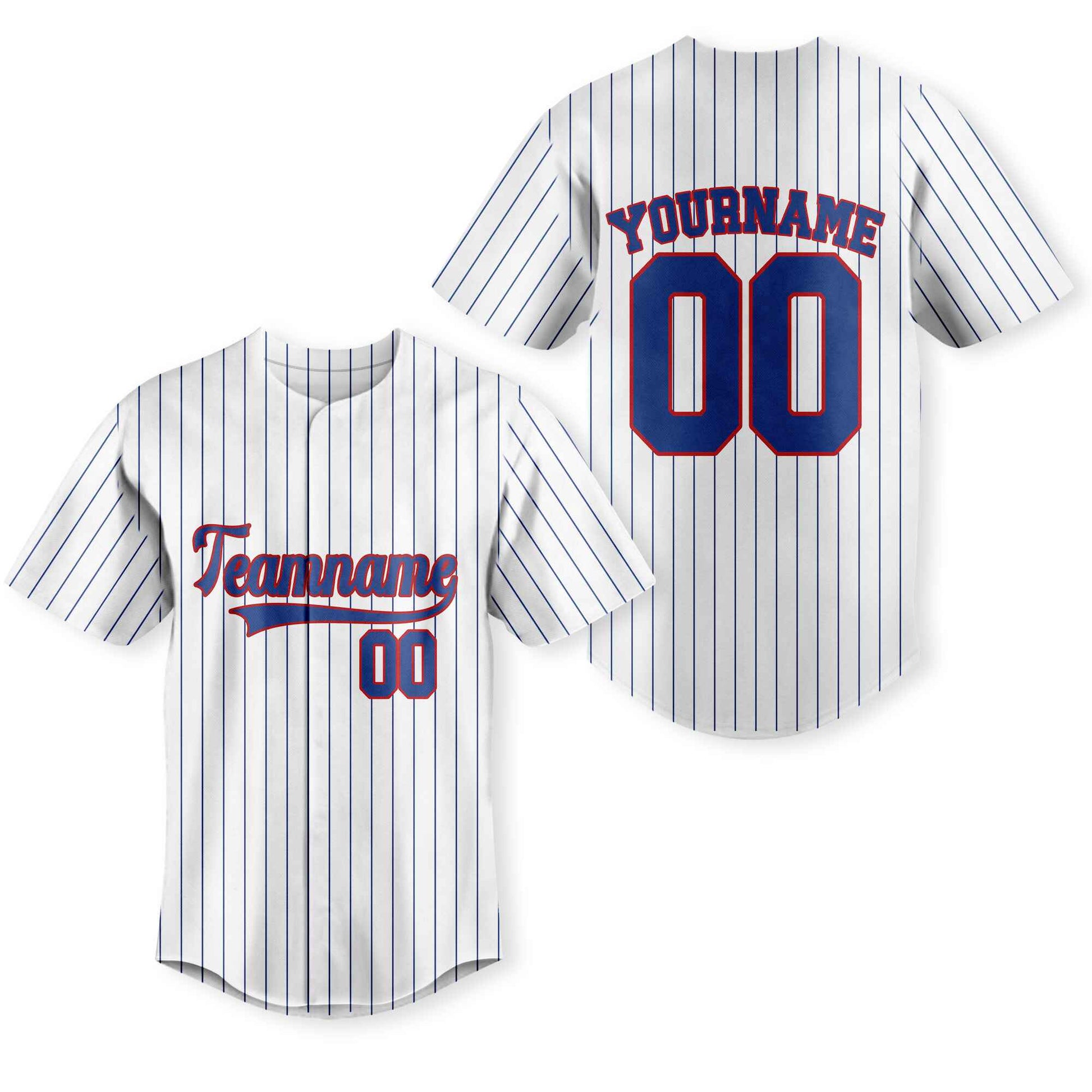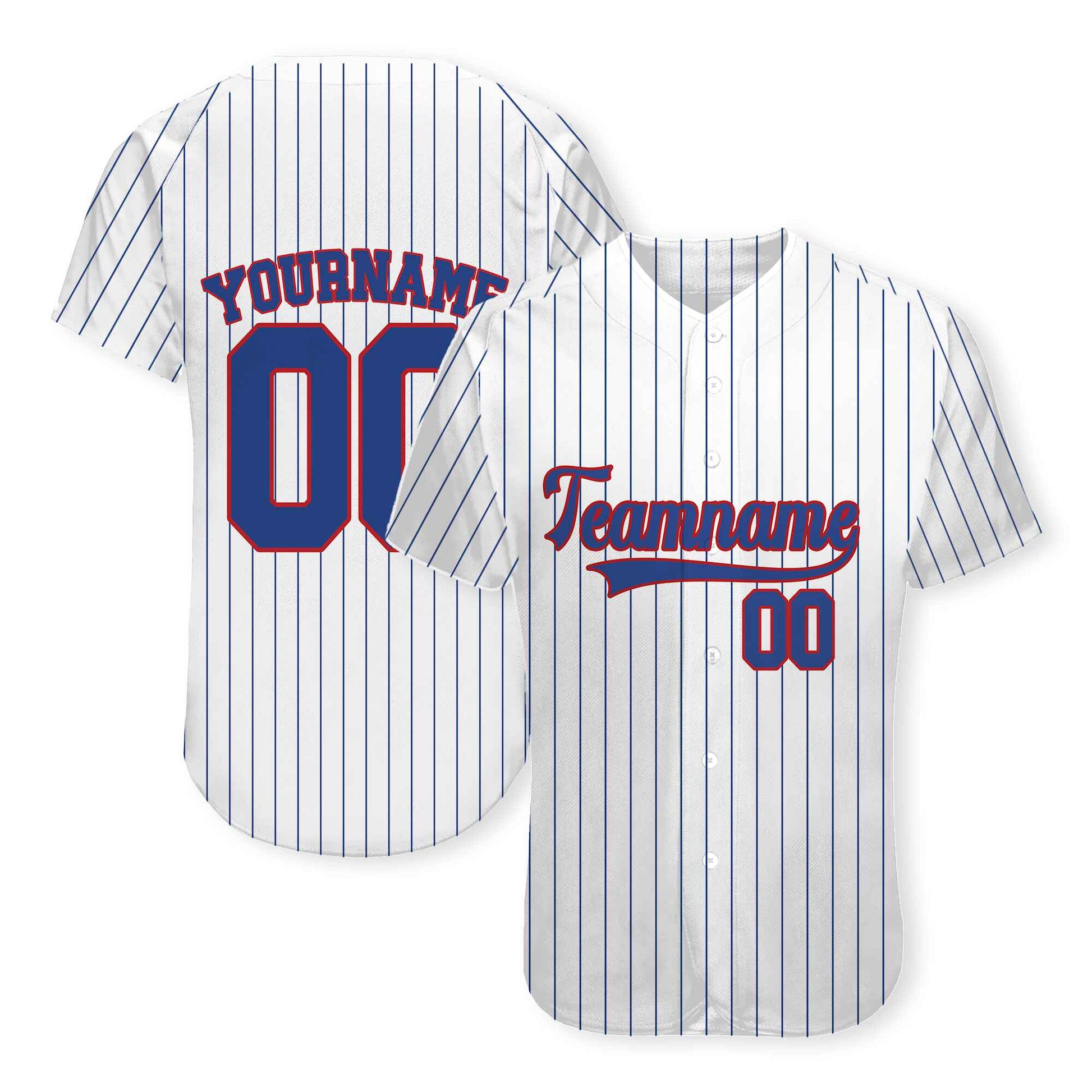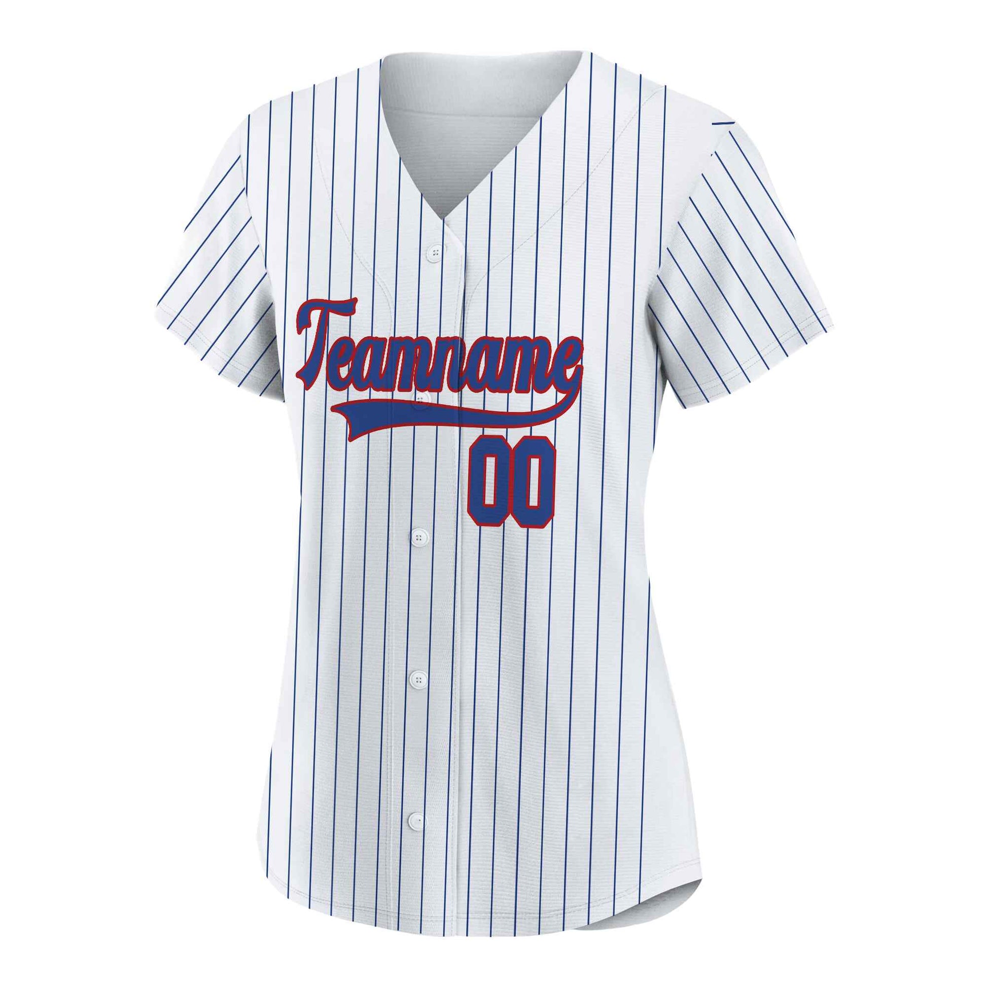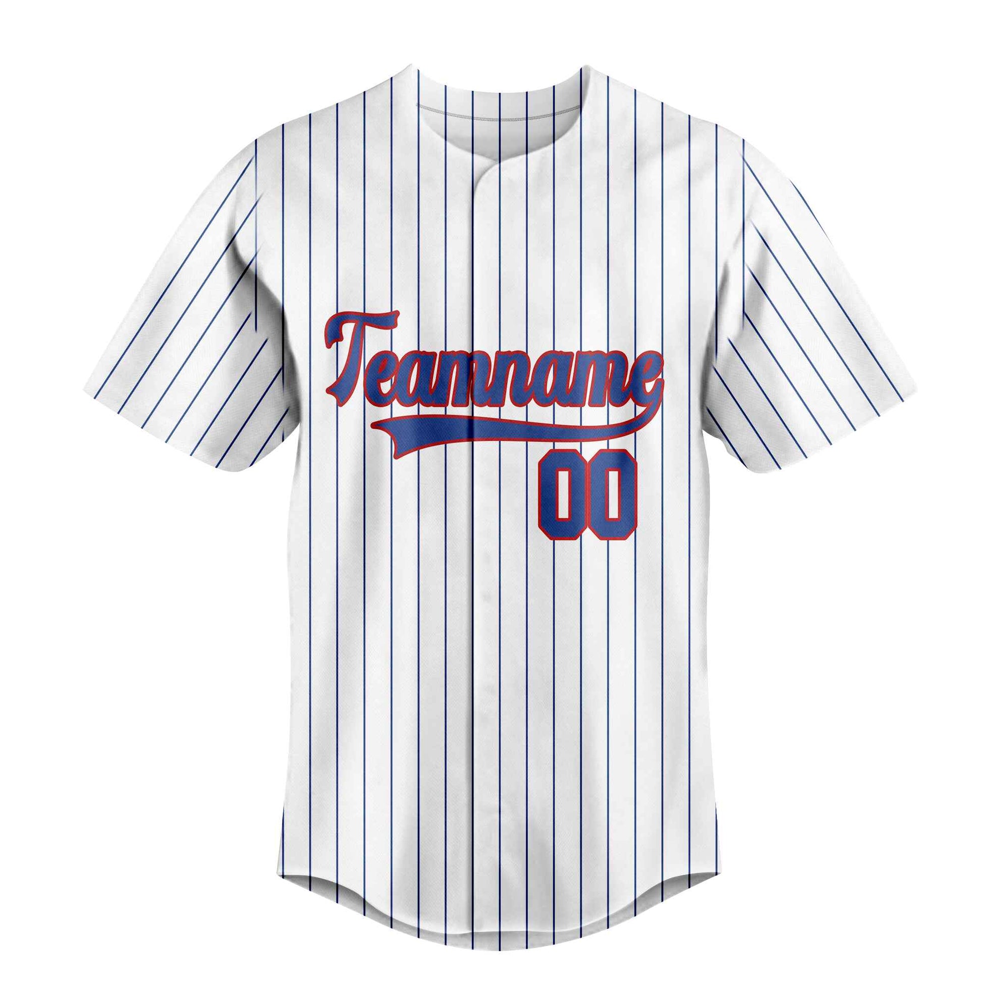 Custom White Navy Pinstripe Navy-Red Baseball Jersey