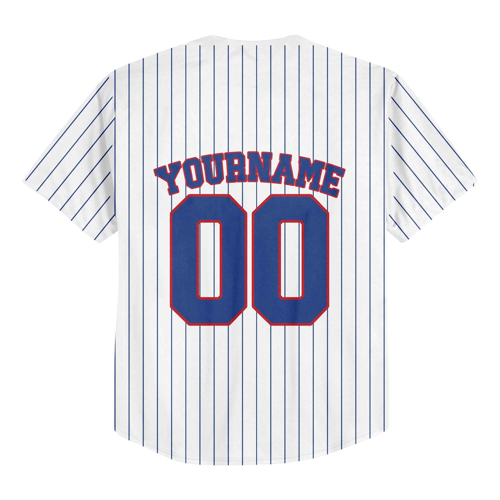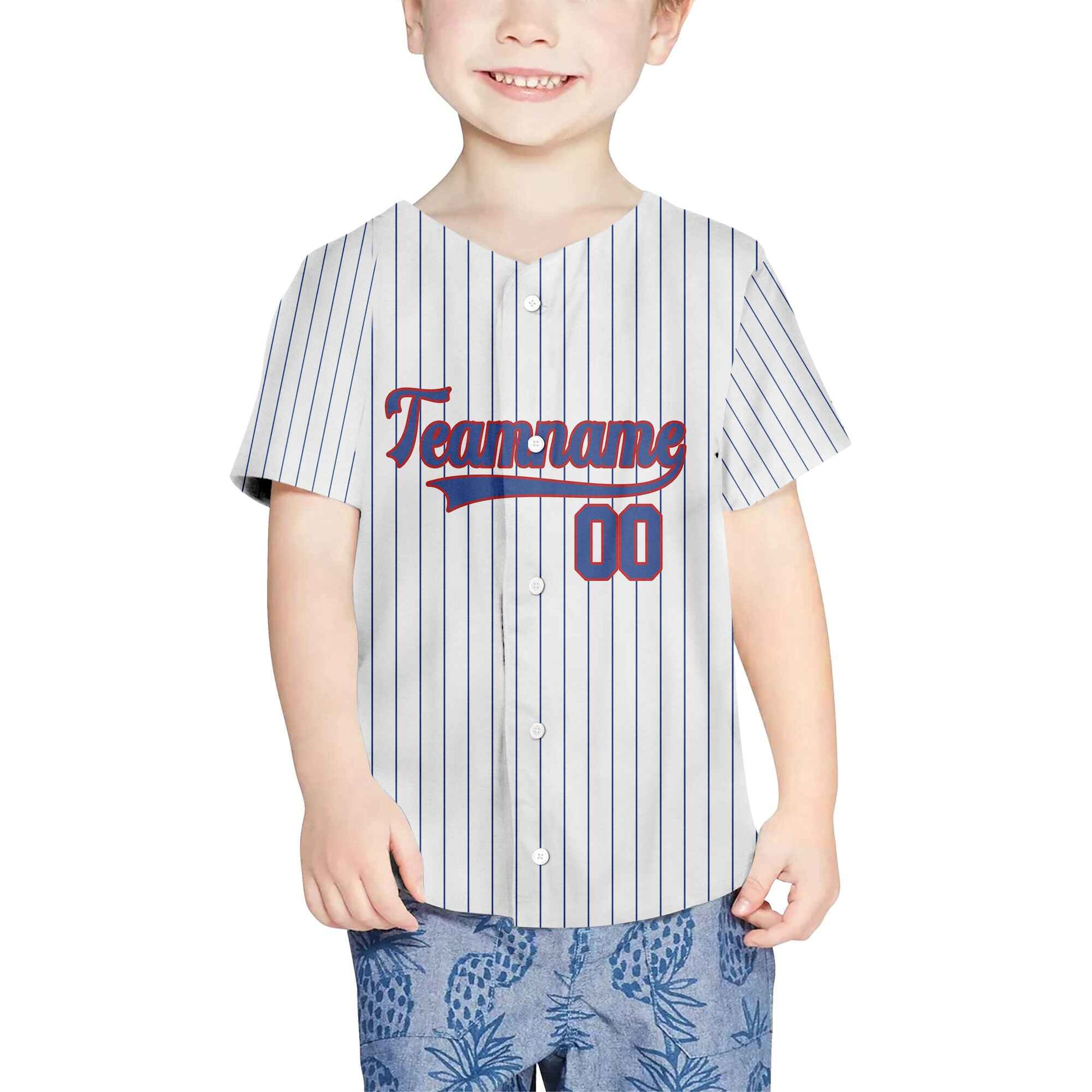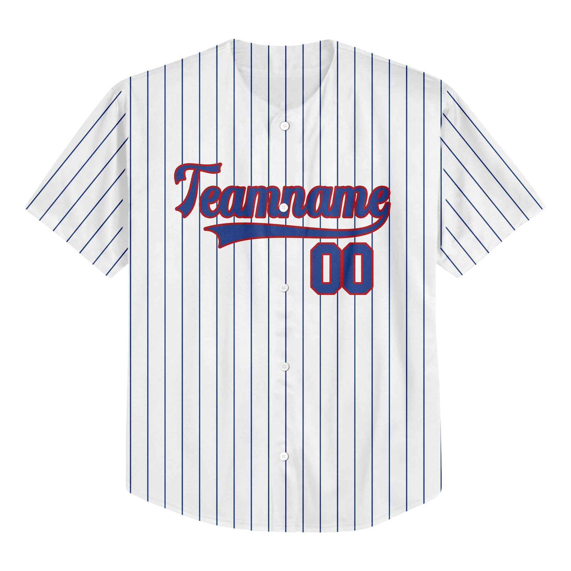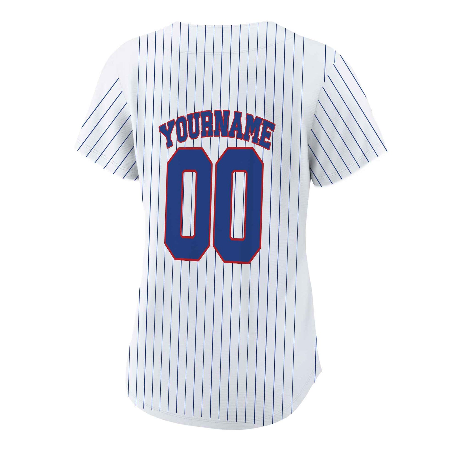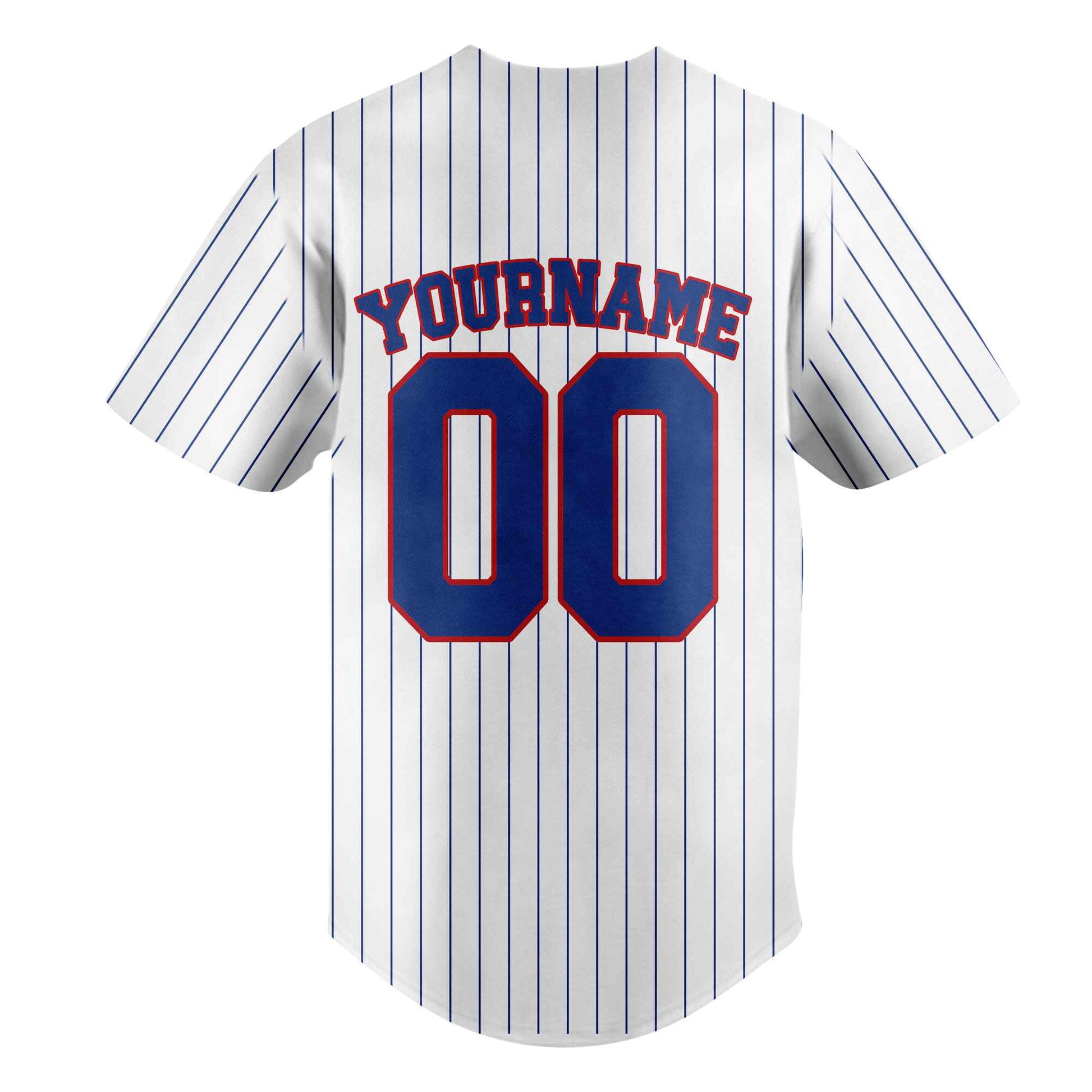 Custom White Navy Pinstripe Navy-Red Baseball Jersey