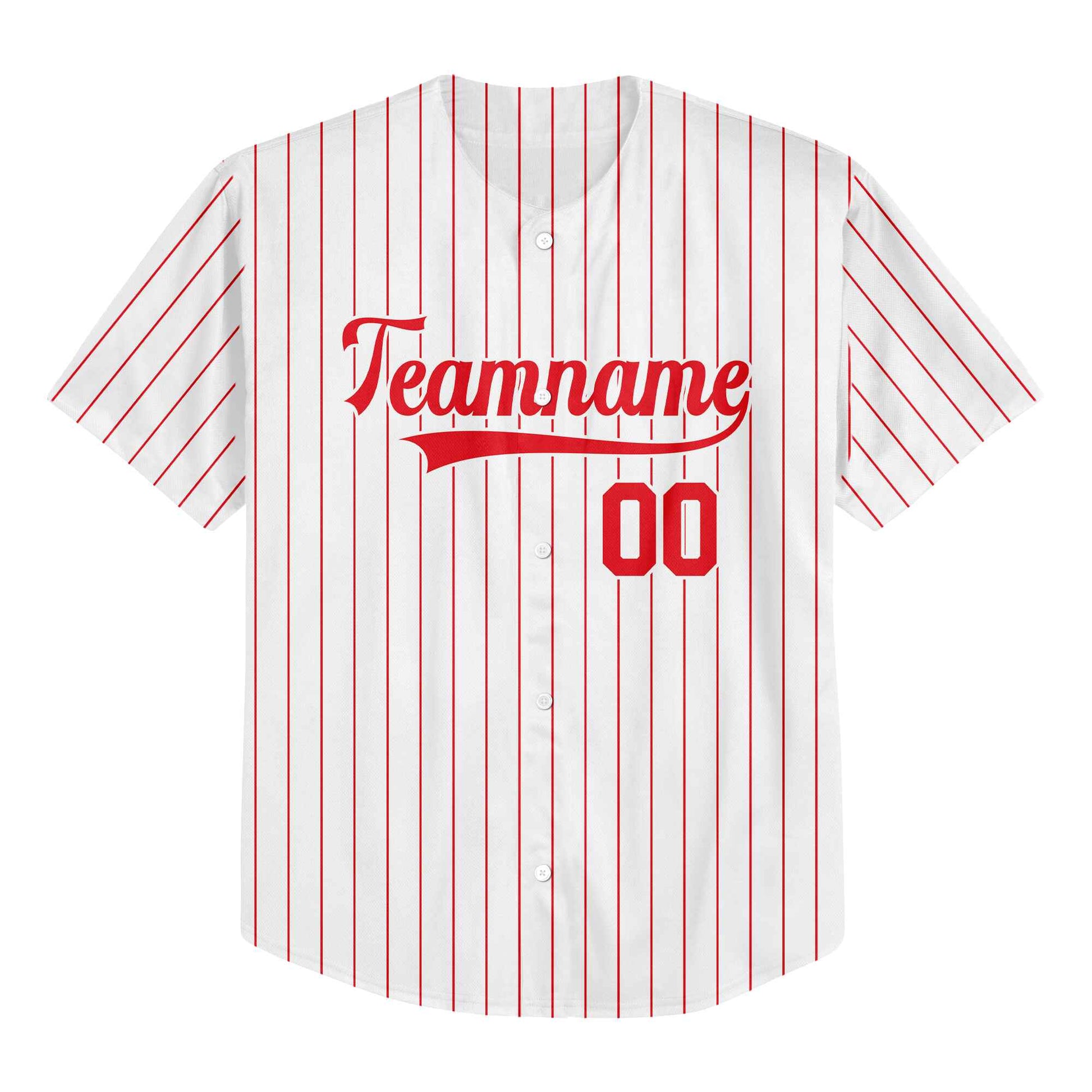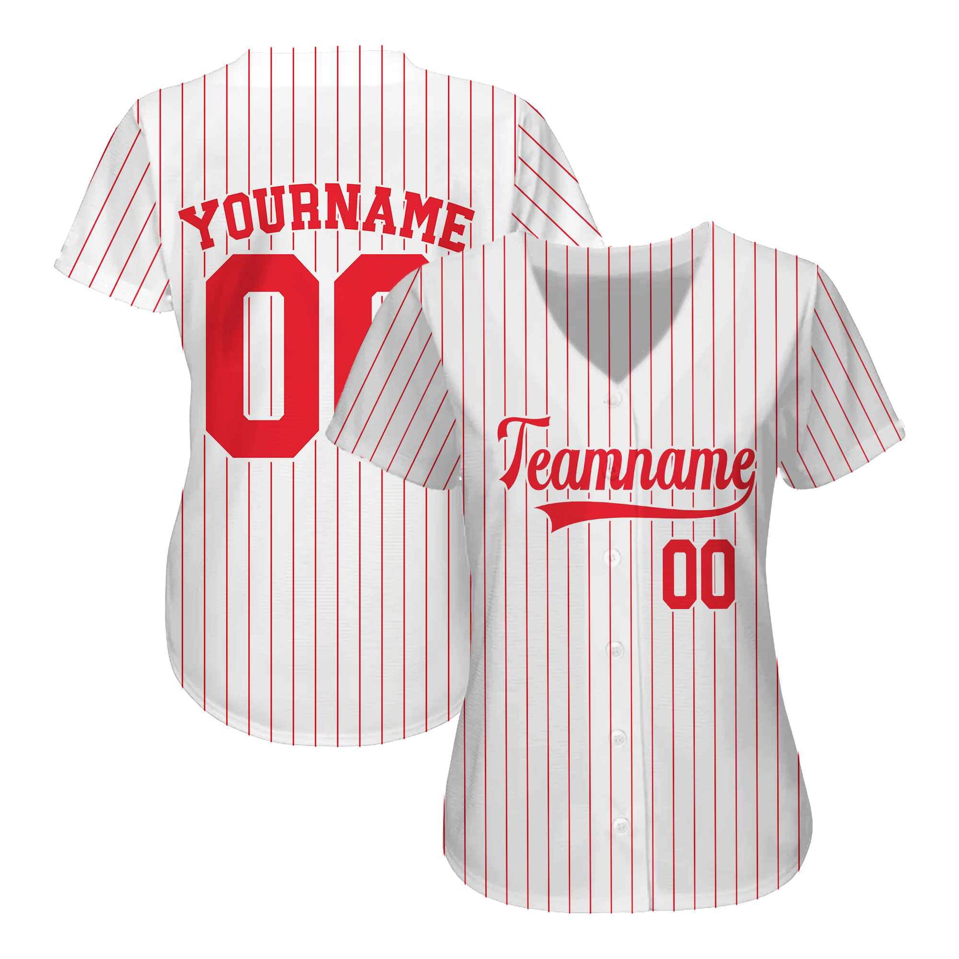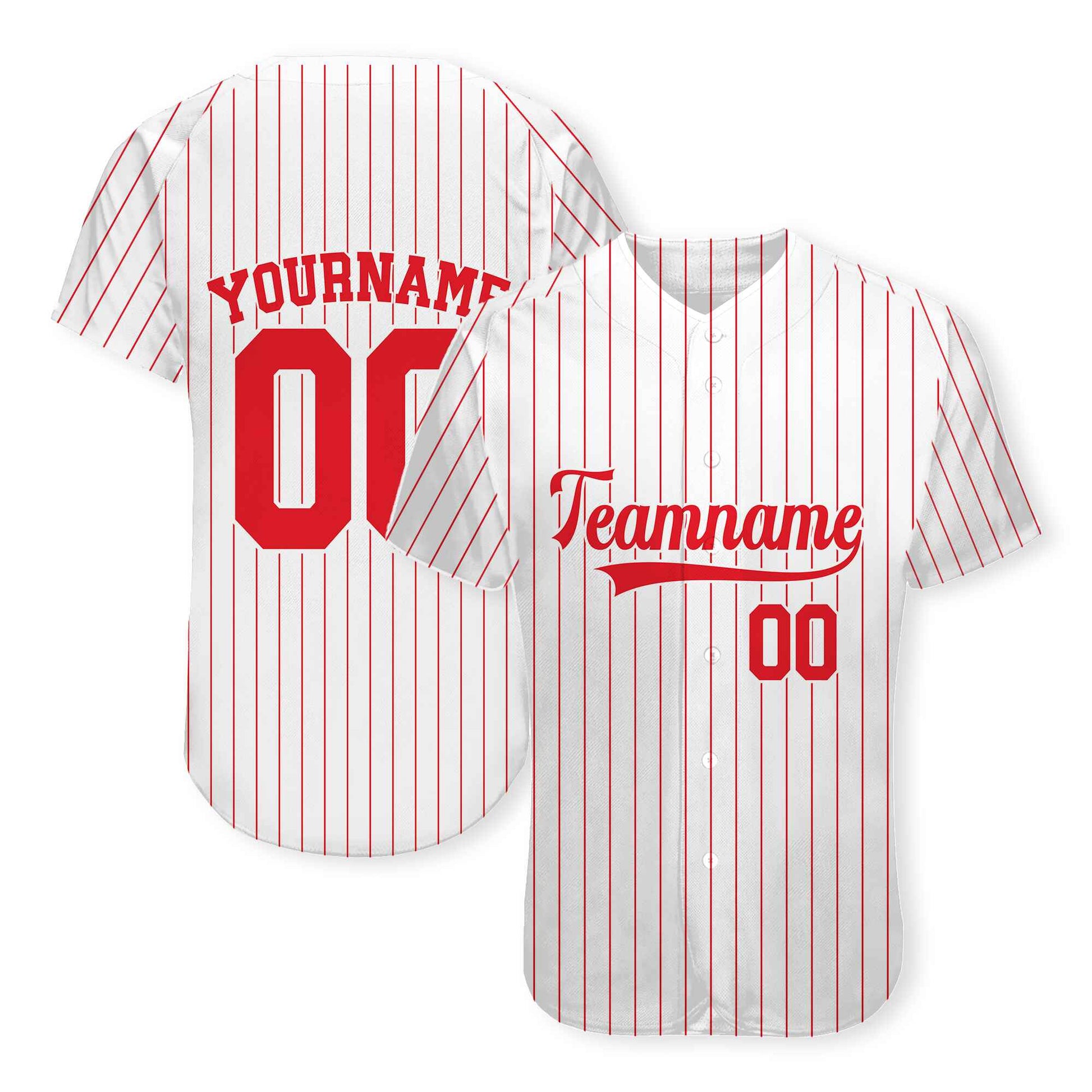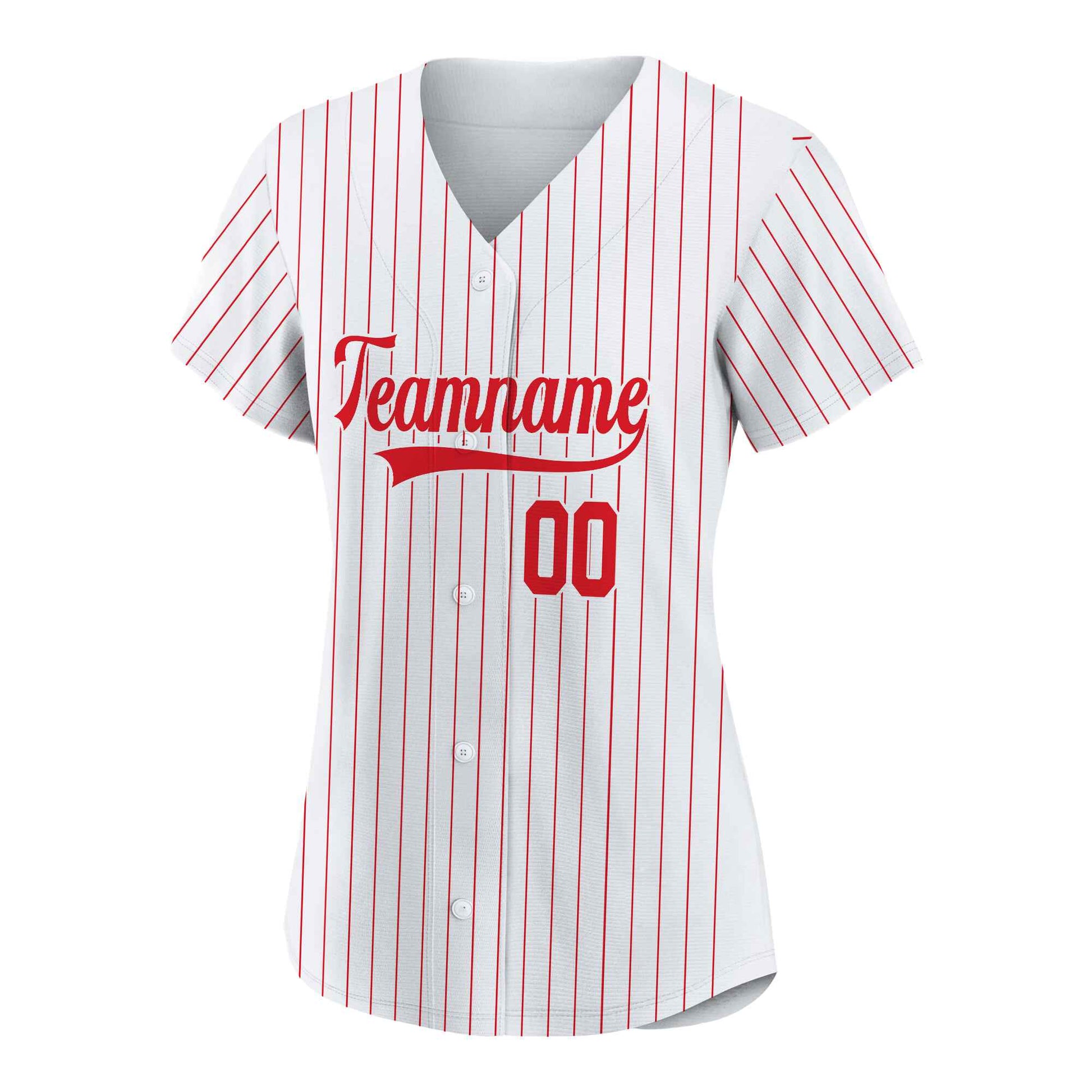 Custom White Red Pinstripe Red-White Authentic Baseball Jersey