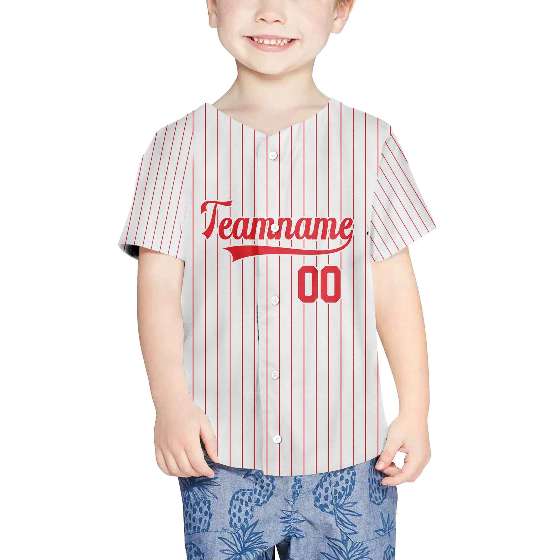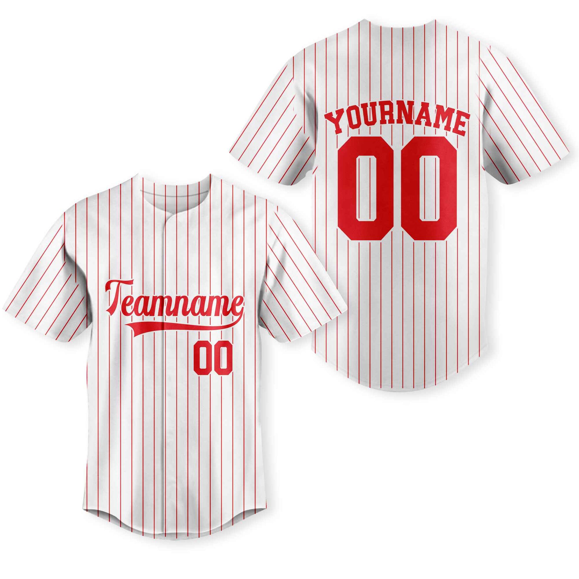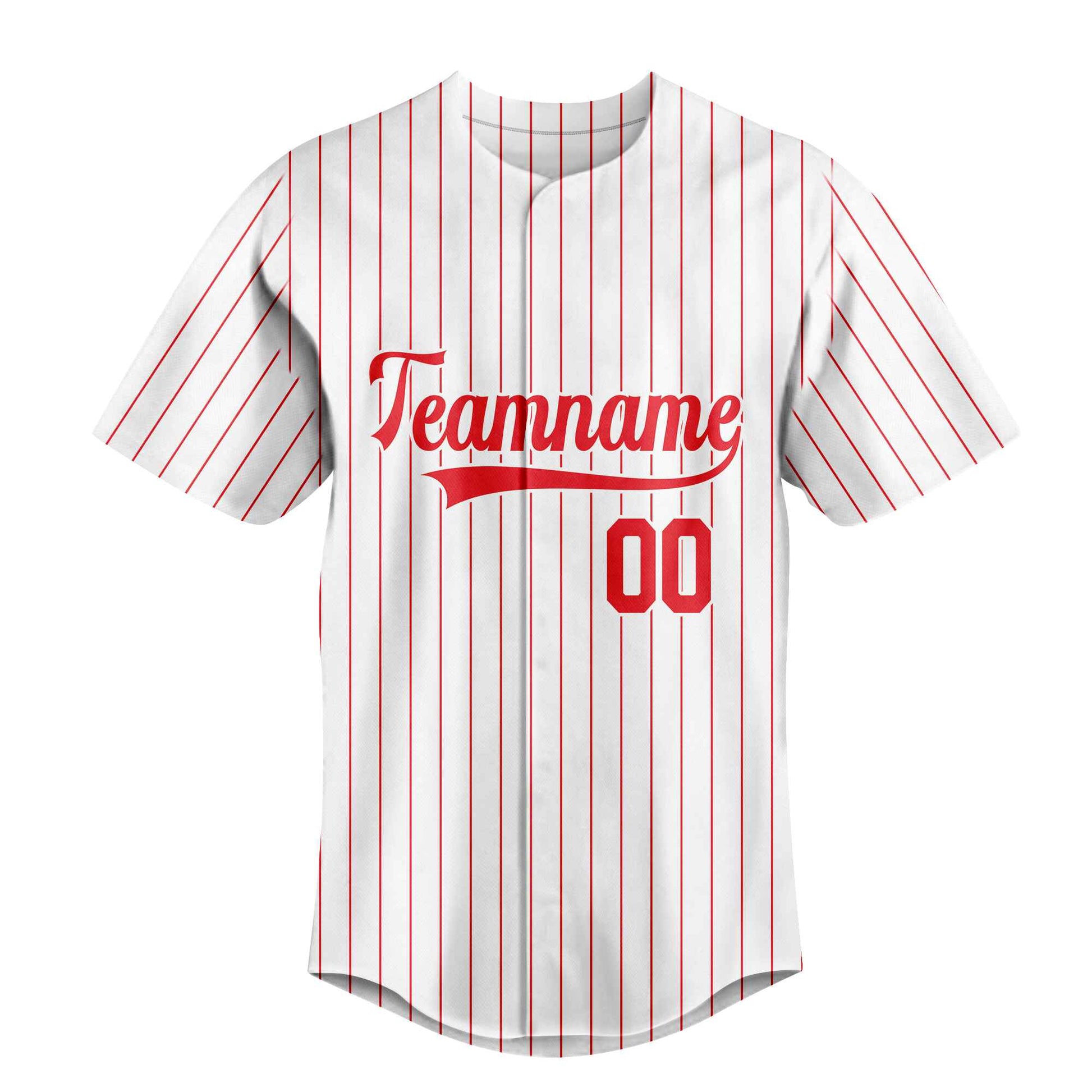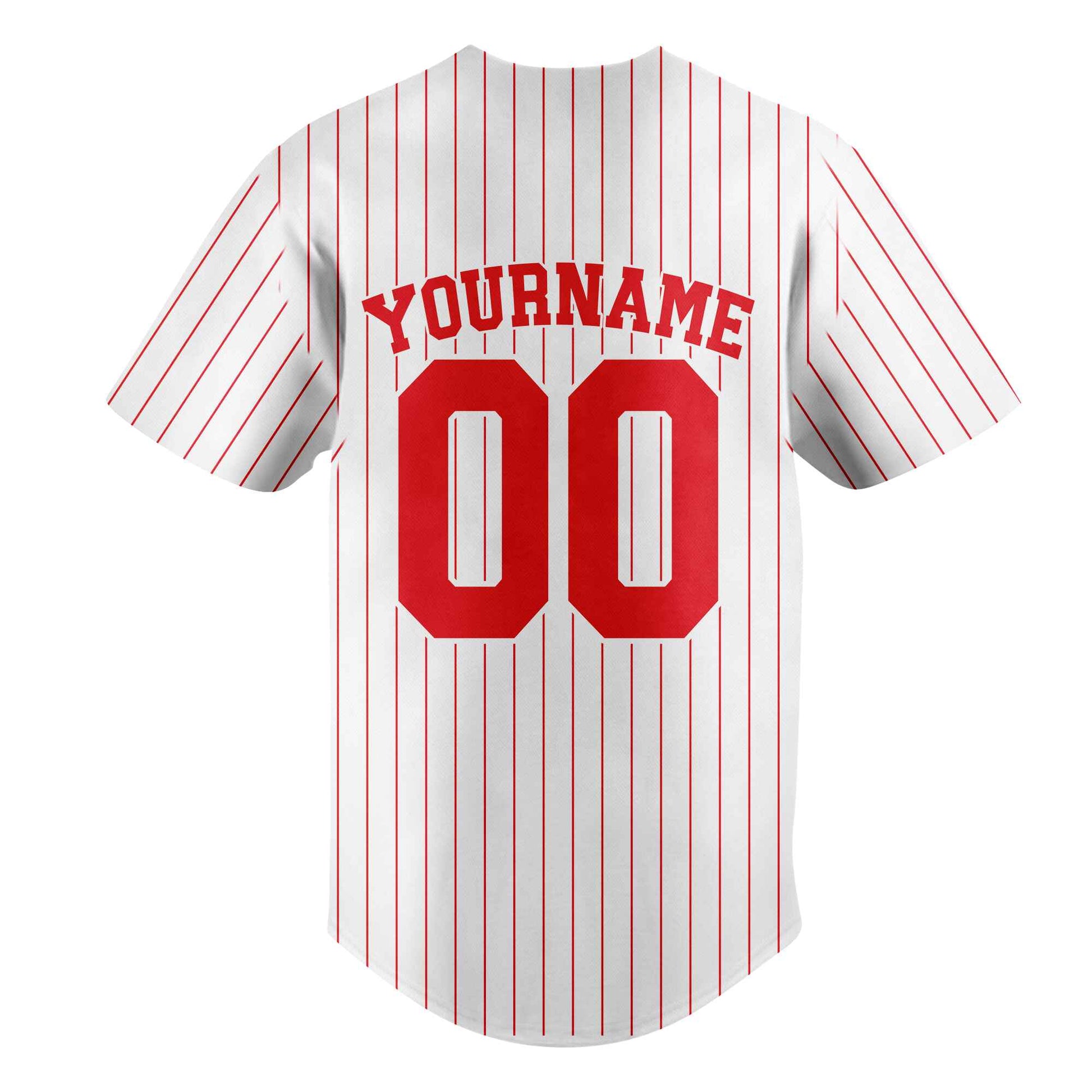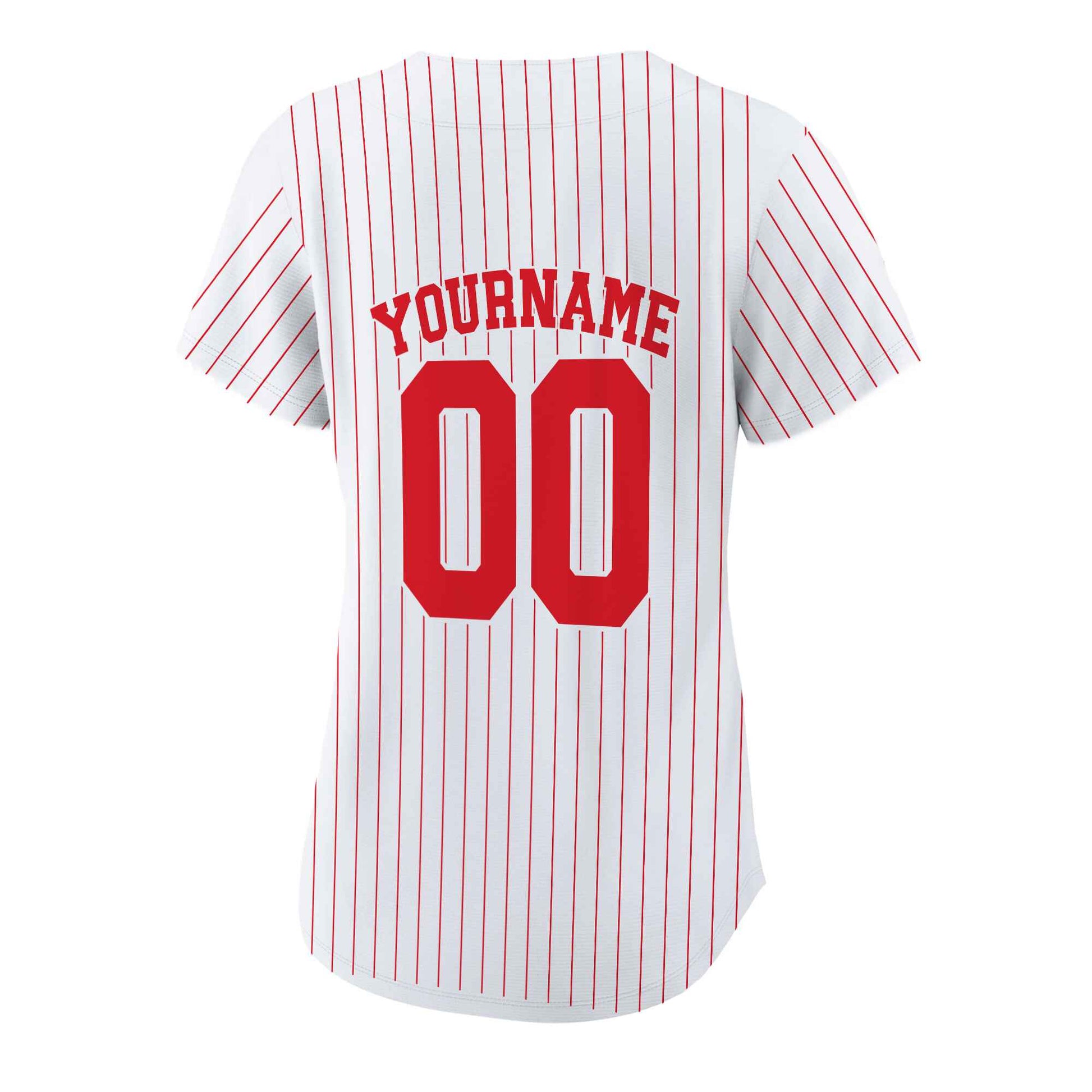 Custom White Red Pinstripe Red-White Authentic Baseball Jersey