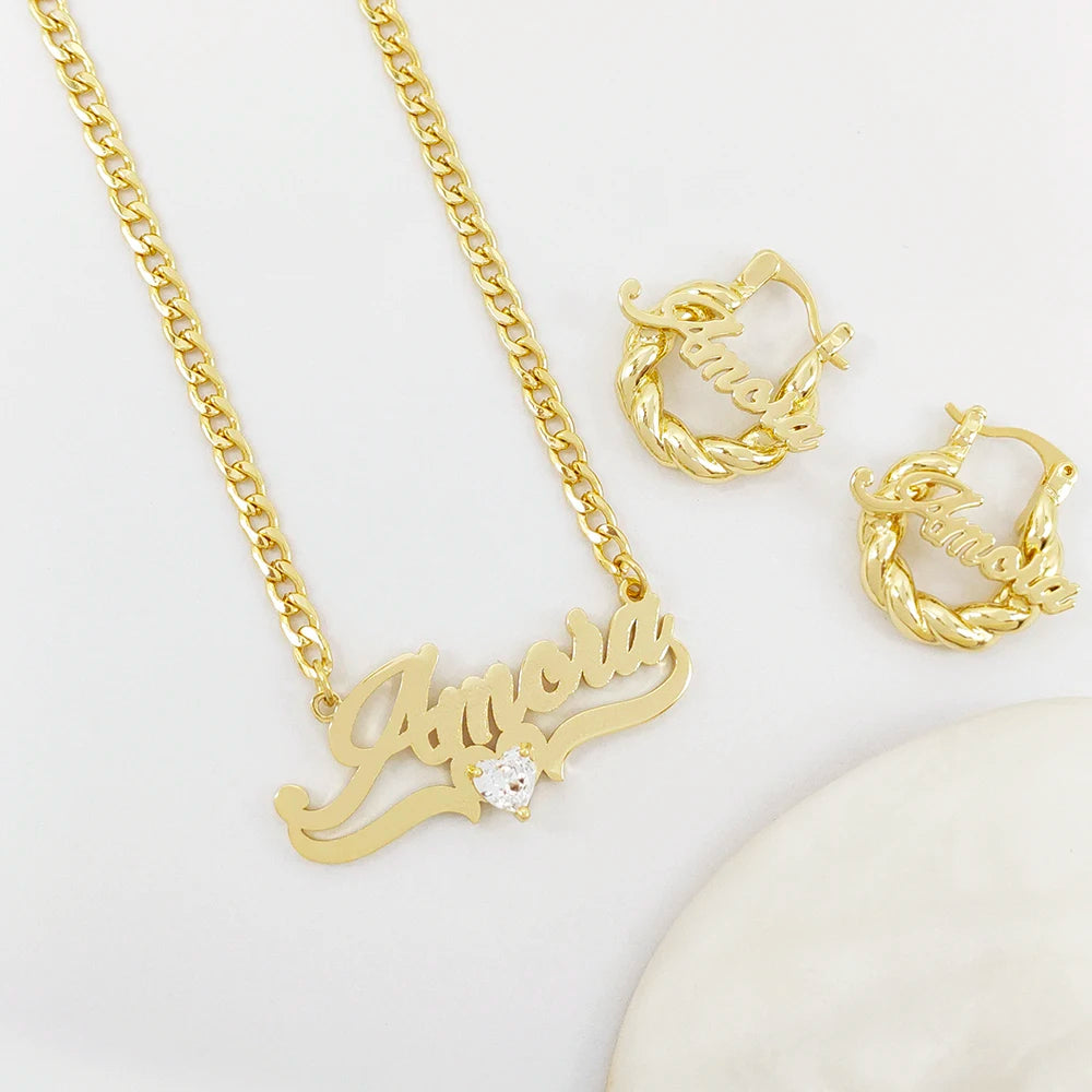 Custom Kids Jewelry Set, Custom Baby Name Earrings, Name Earrings Hoop, Birthstone Nameplate Necklace,Personalized Name Necklace,Gift for Kid (A07)