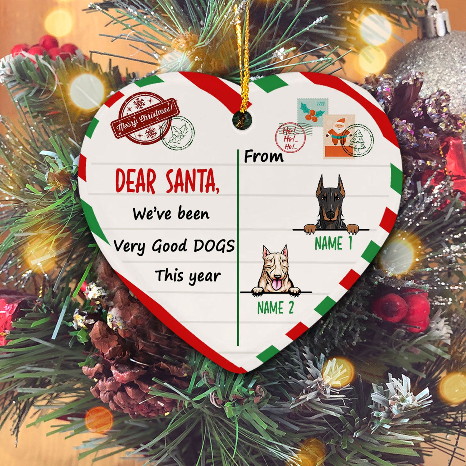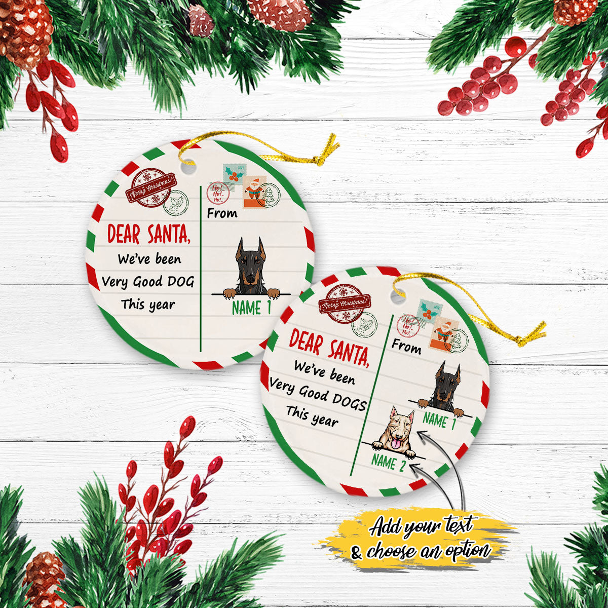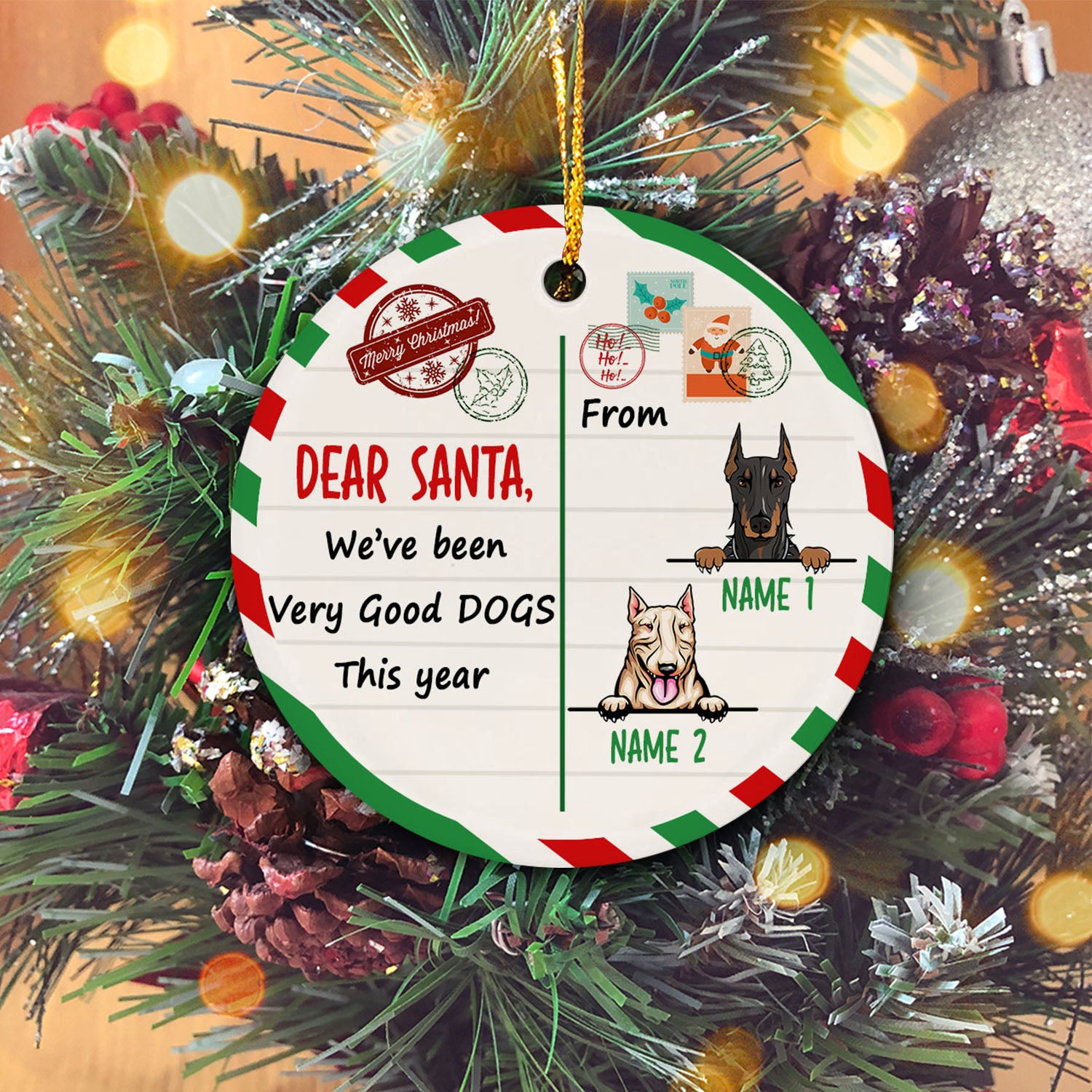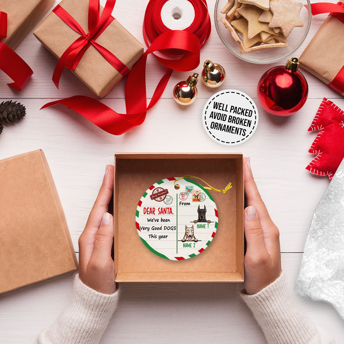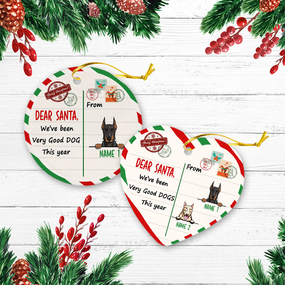 Dog Christmas Santa Benelux Personalized Custom Christmas Premium Ceramic Ornaments Gift For Family, Christmas Holiday