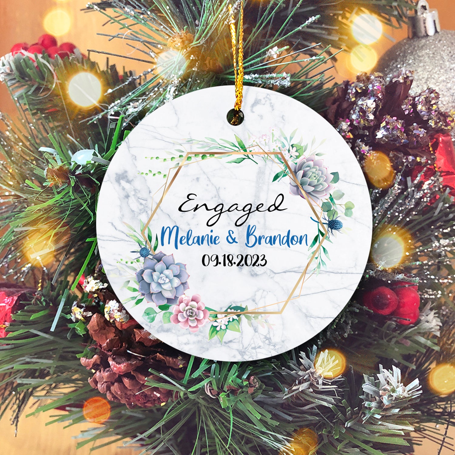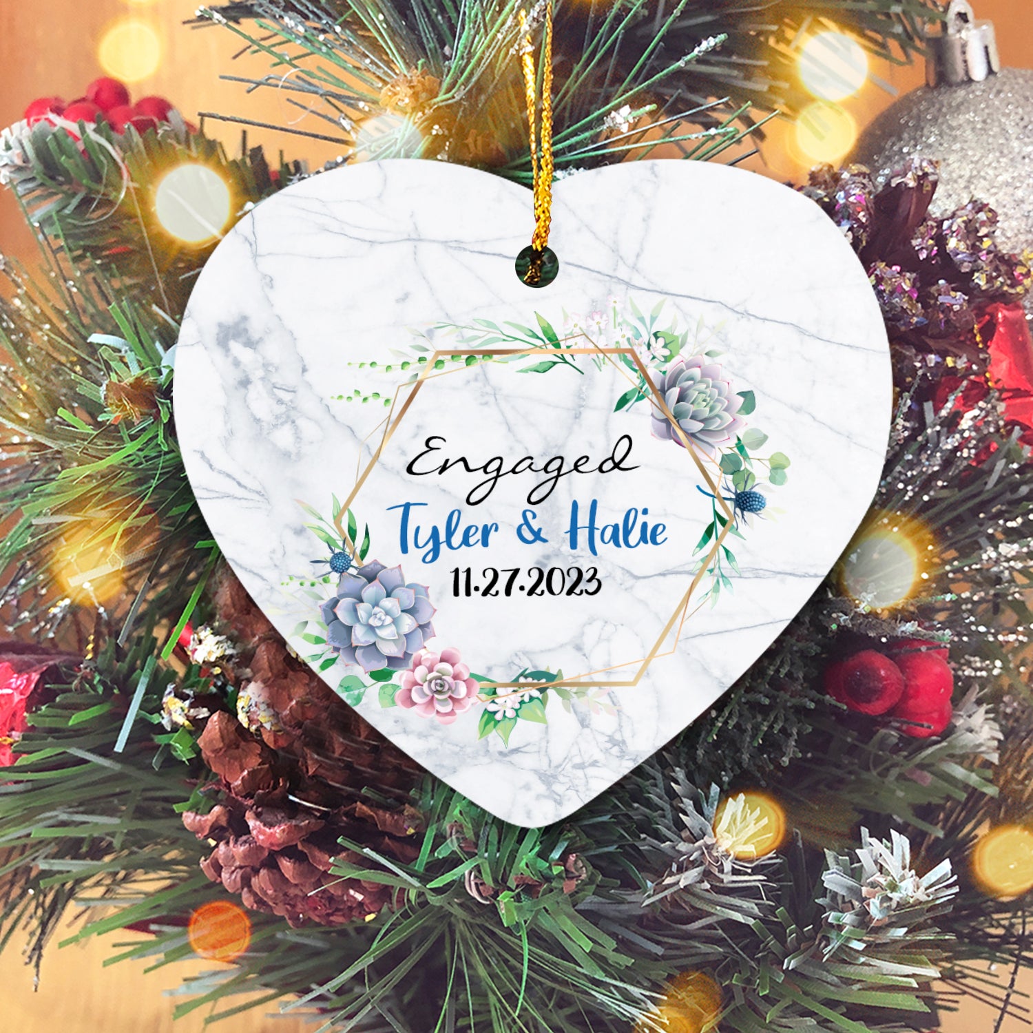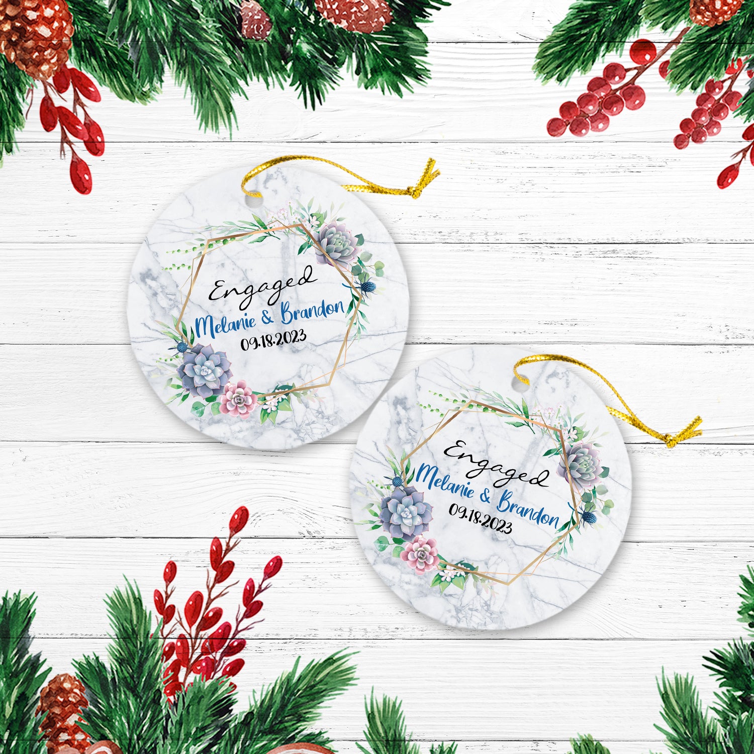 Floral Couple Engaged 02 Personalized Custom Name Christmas Premium Ceramic Ornaments Sets