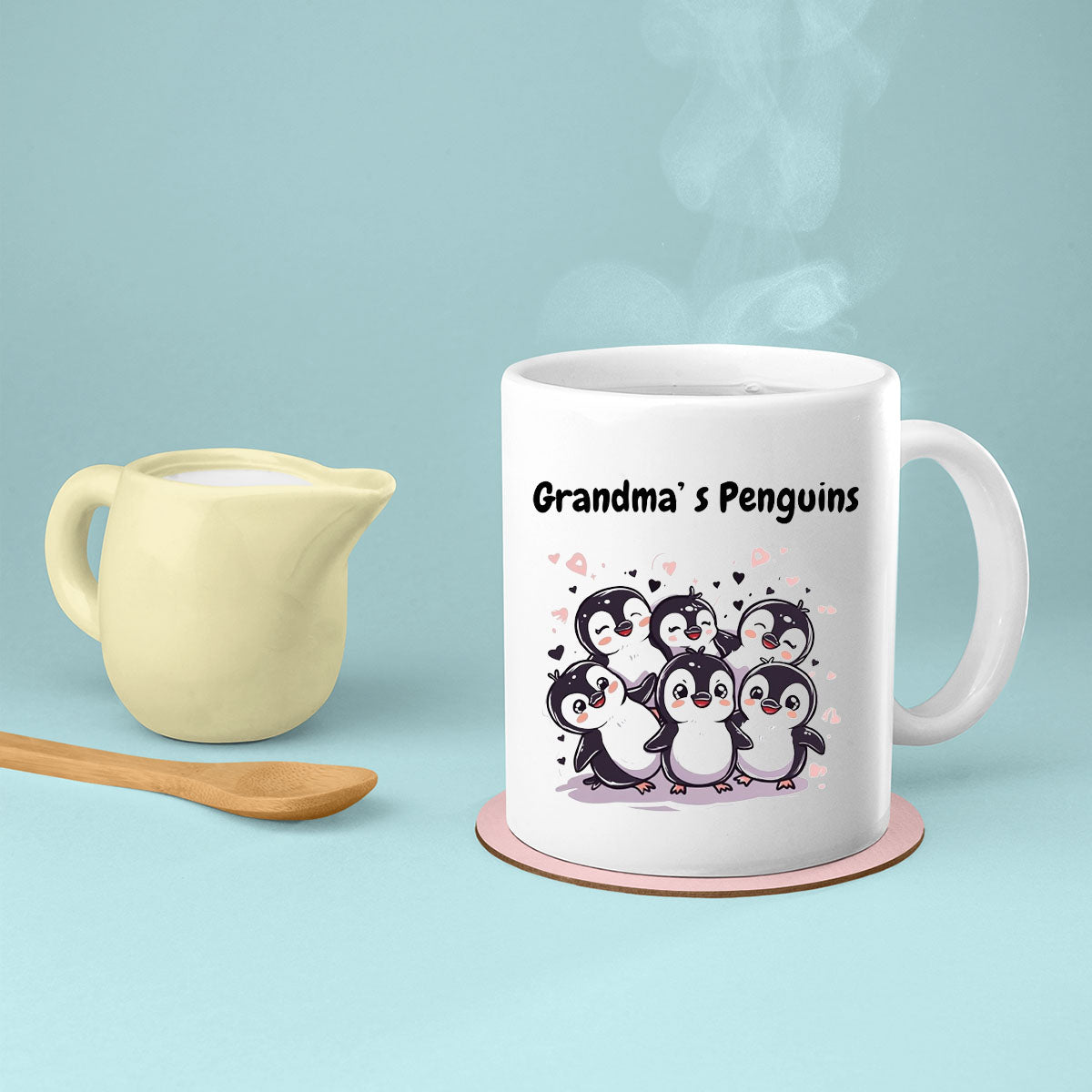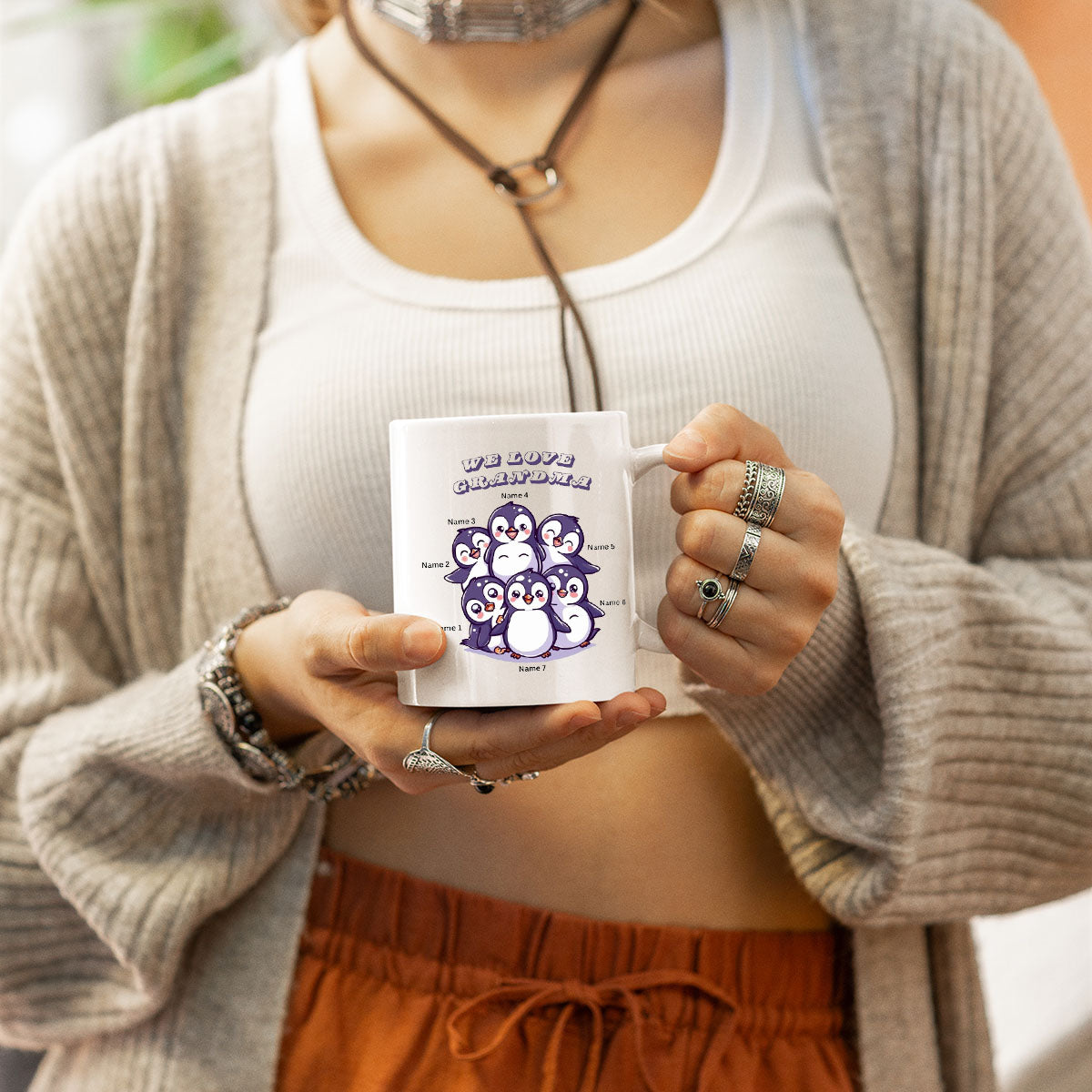 Grandma Mug, Grandma Gift For Grandma Birthday Gift Personalized Grandma Coffee Cup, Mothers Day Gift From Granddaughter Grandson, Custom Name Penguins