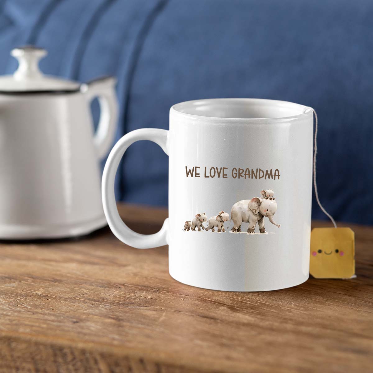 Grandma Mug, Grandma Gift For Grandma Birthday Gift Personalized Grandma Coffee Cup, Mothers Day Gift From Granddaughter Grandson, Mom Elephant