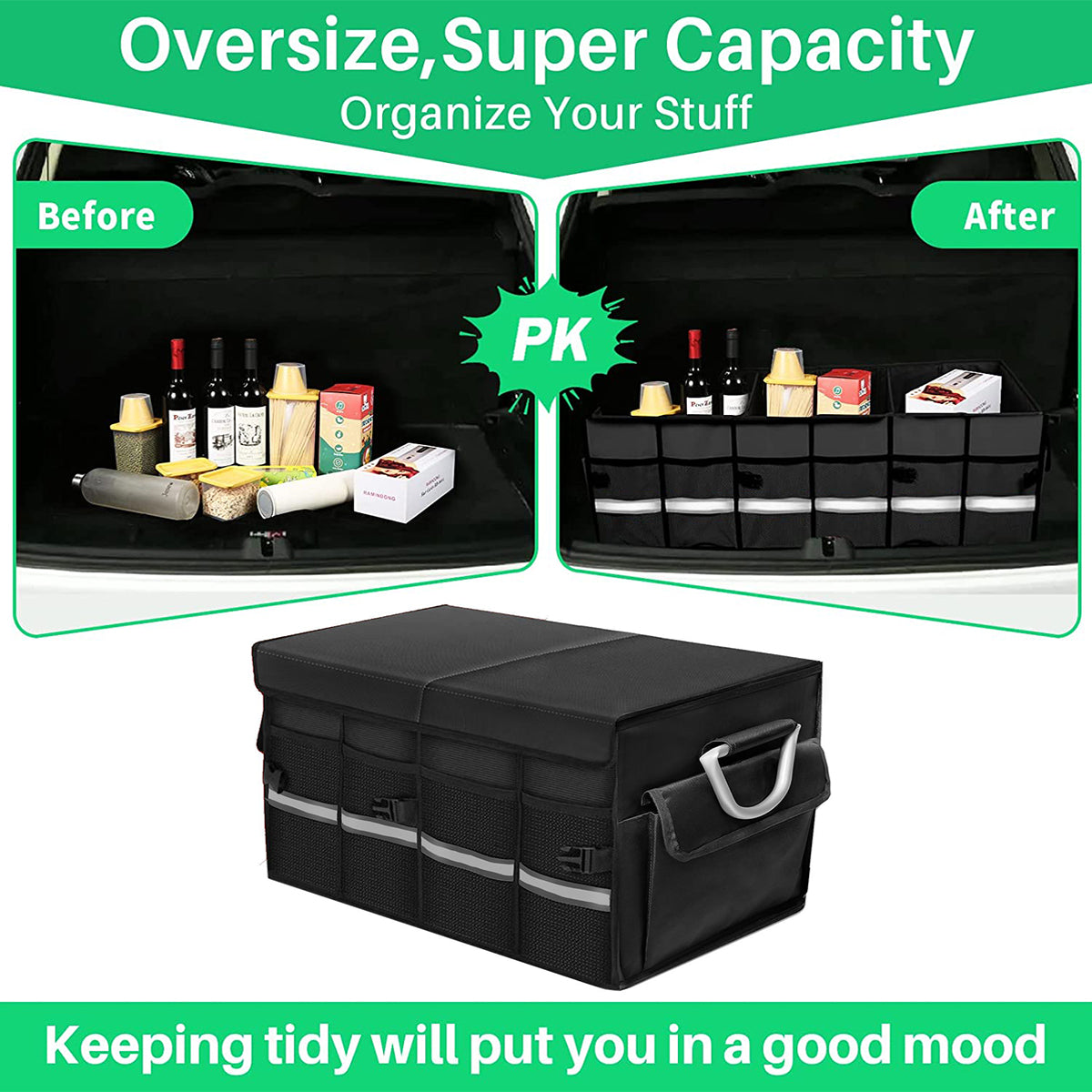 Big Trunk Organizer, Cargo Organizer SUV Trunk Storage Waterproof Collapsible Durable Multi Compartments FJ12994
