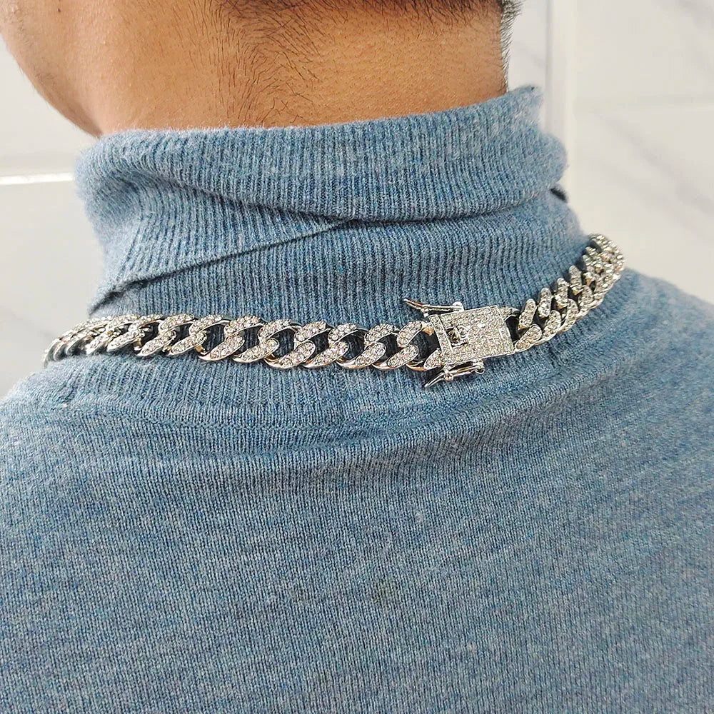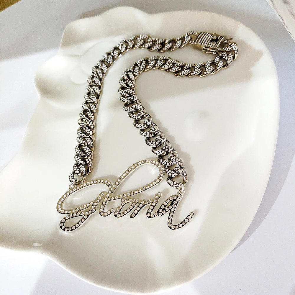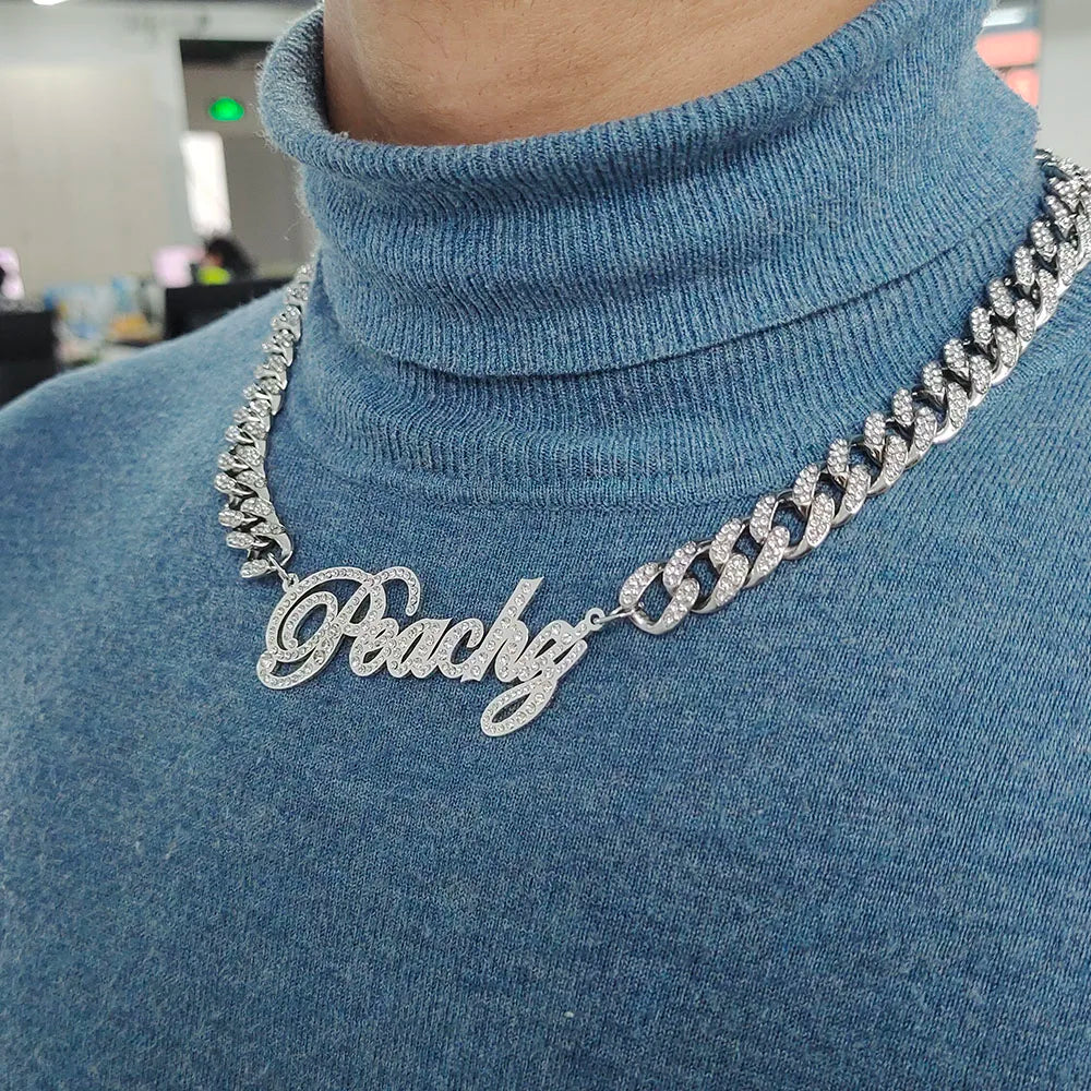 Name Necklace with Bling Mini Cuban Chain, Custom Name Necklace, Personalized Her Name Necklace, Mother's Day Gift, Name Jewelry for Women (A06)