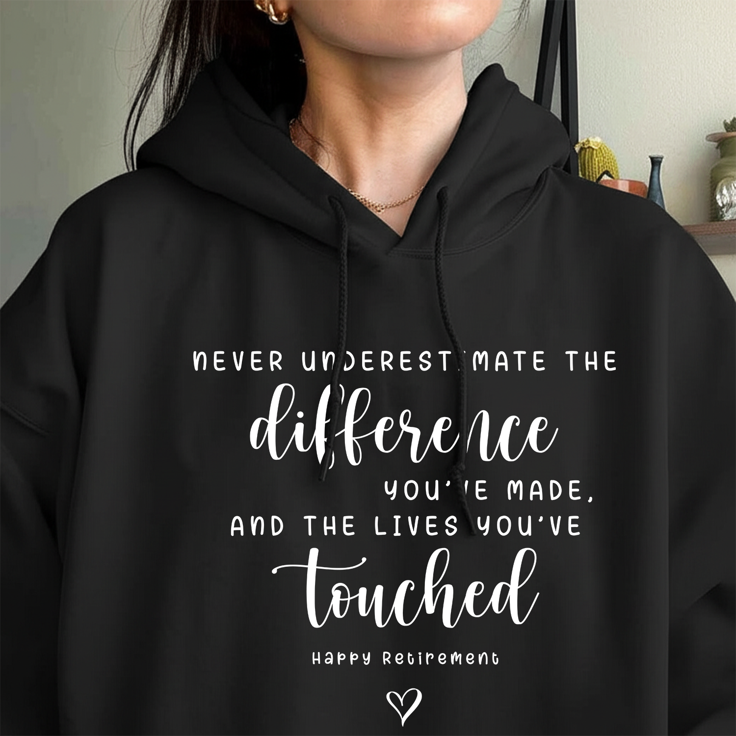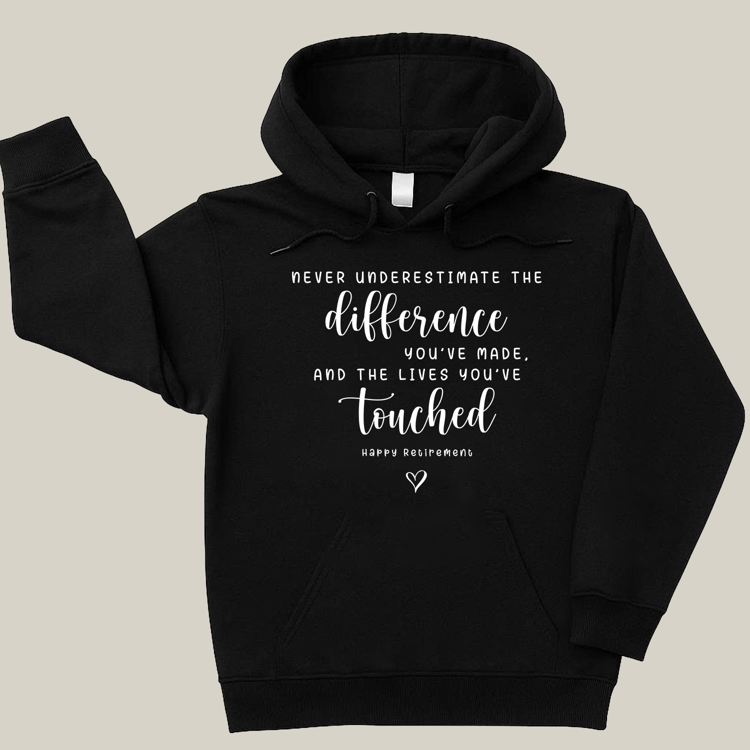Never Underestimate the Difference You Made and the Lives You Touched Hoodie, Personalized Retirement Gift, Appreciation, Employee, Custom Hoodie
