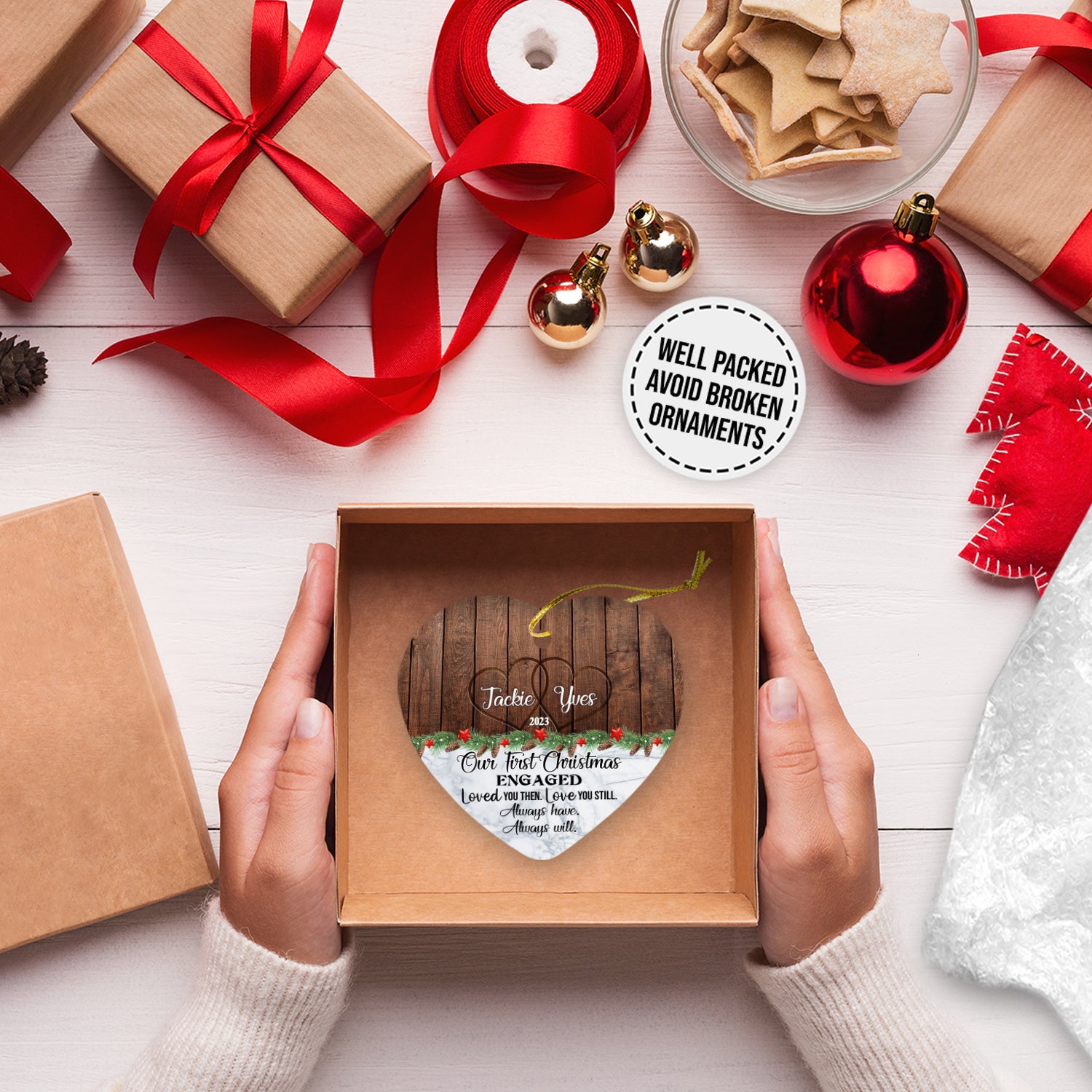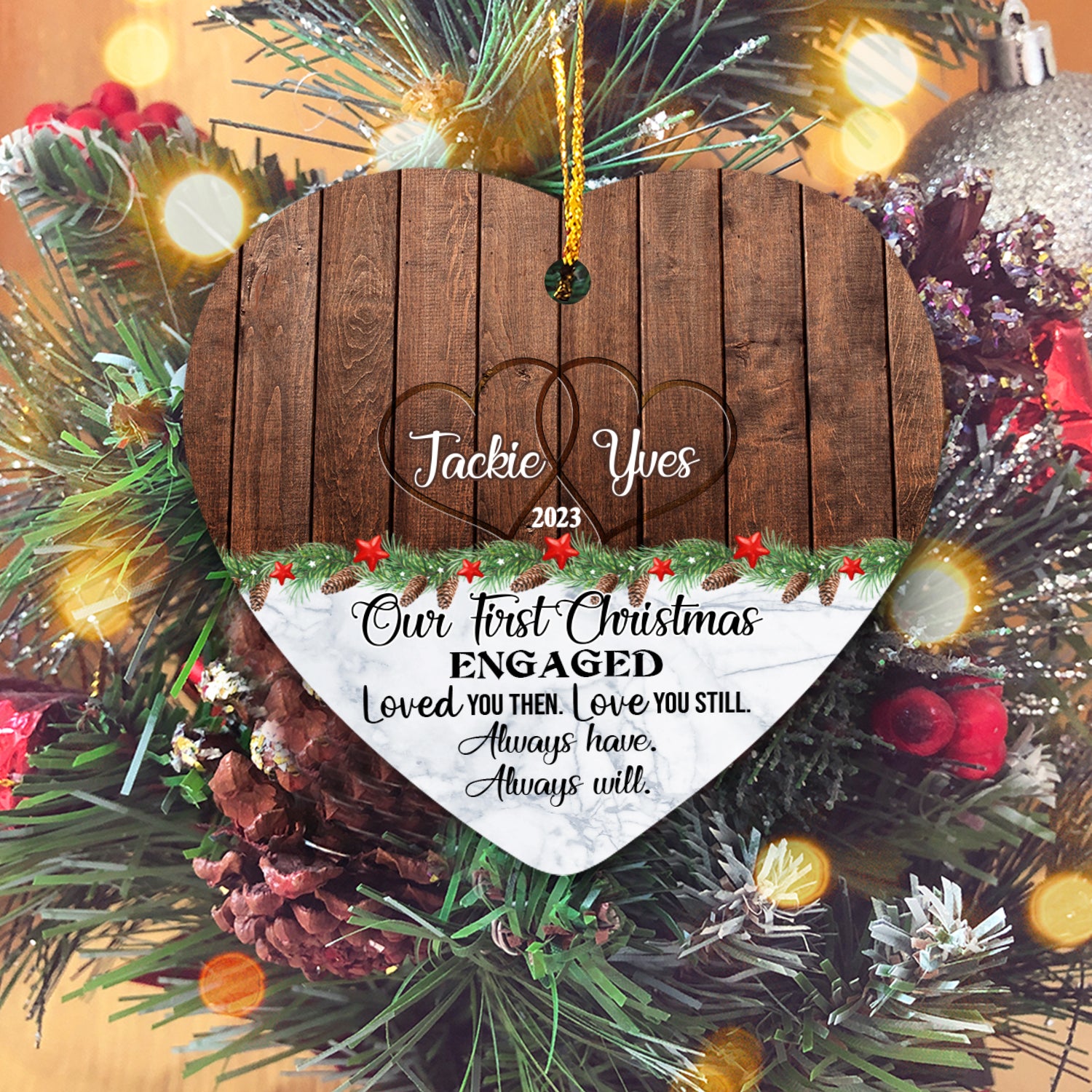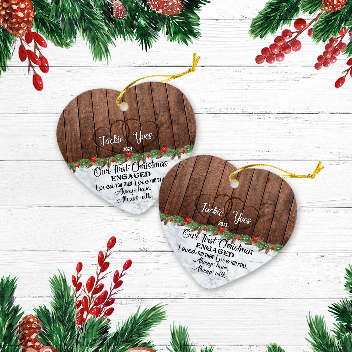 Our First Christmas Engaged Love You Then Personalized Christmas Premium Ceramic Ornaments