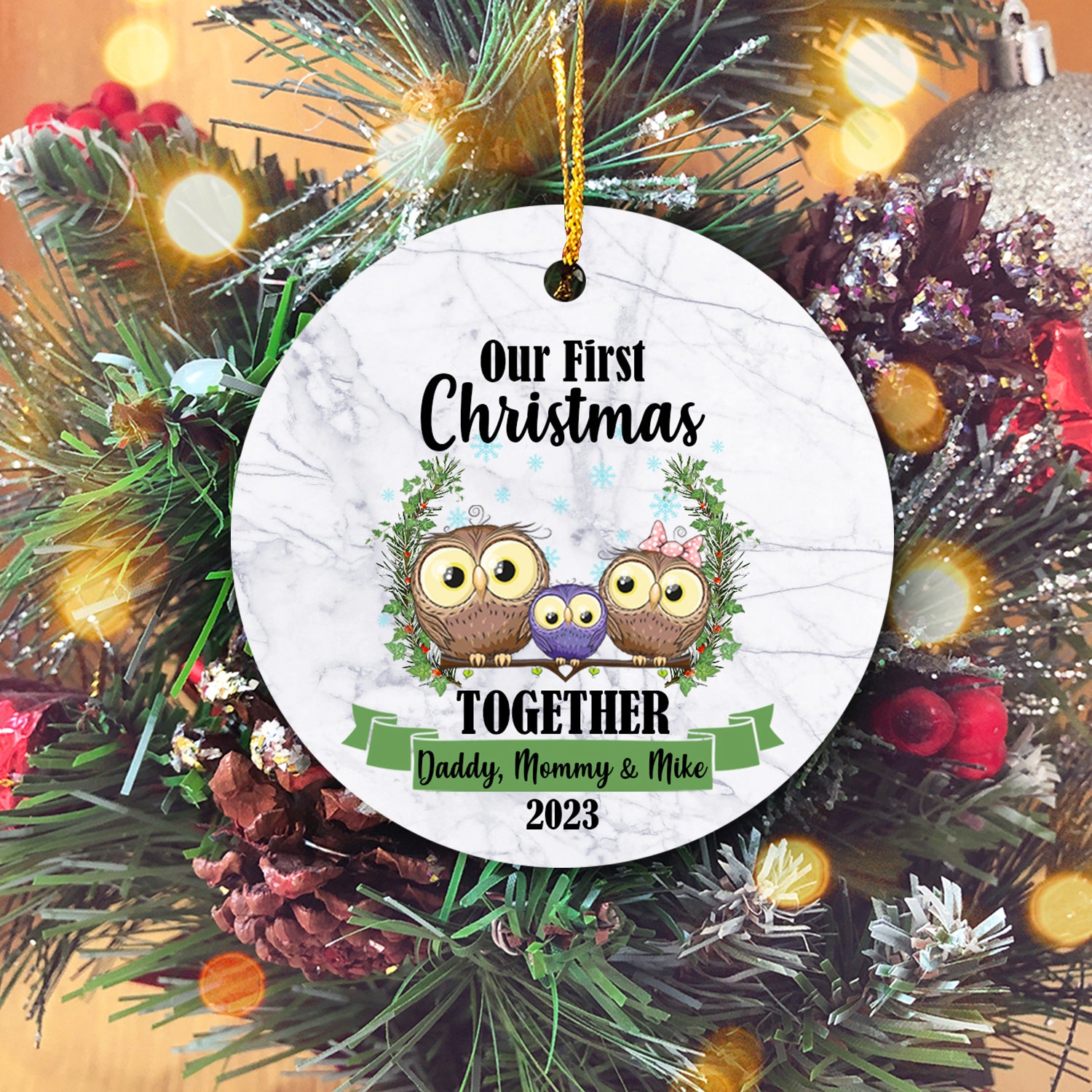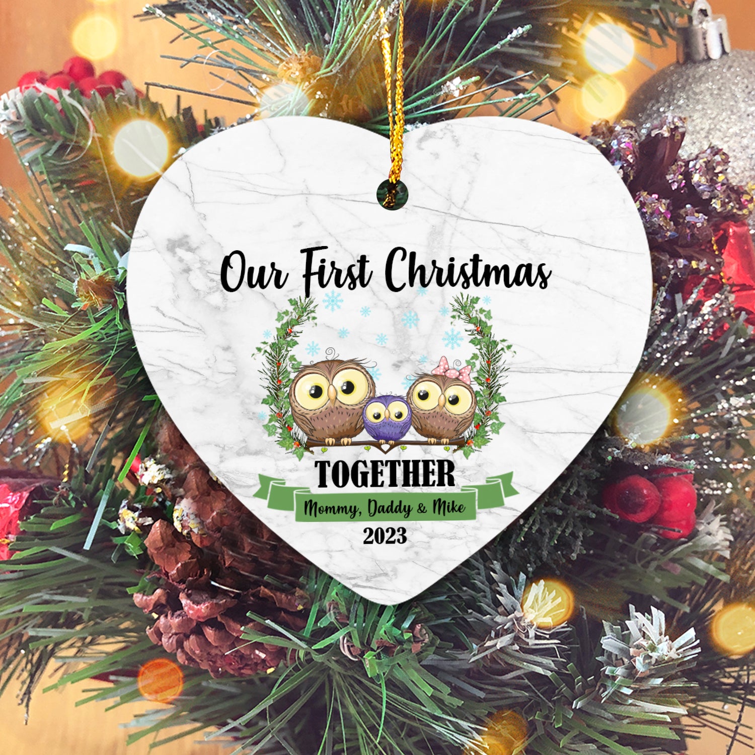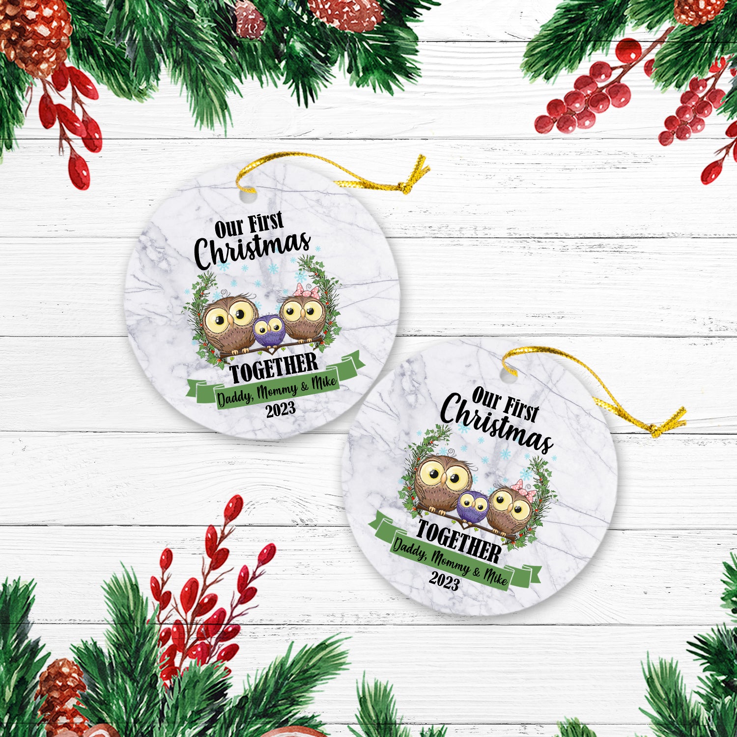 Our First Christmas Together With Family Cute Animals Version Owl Personalized Christmas Premium Ceramic Ornaments