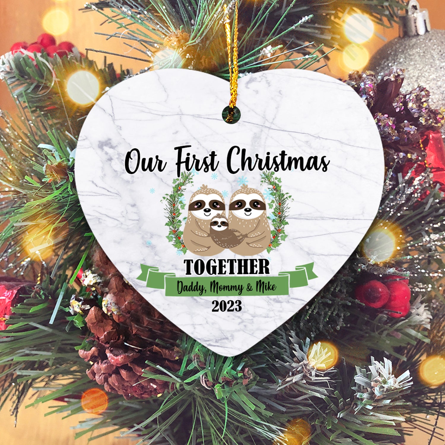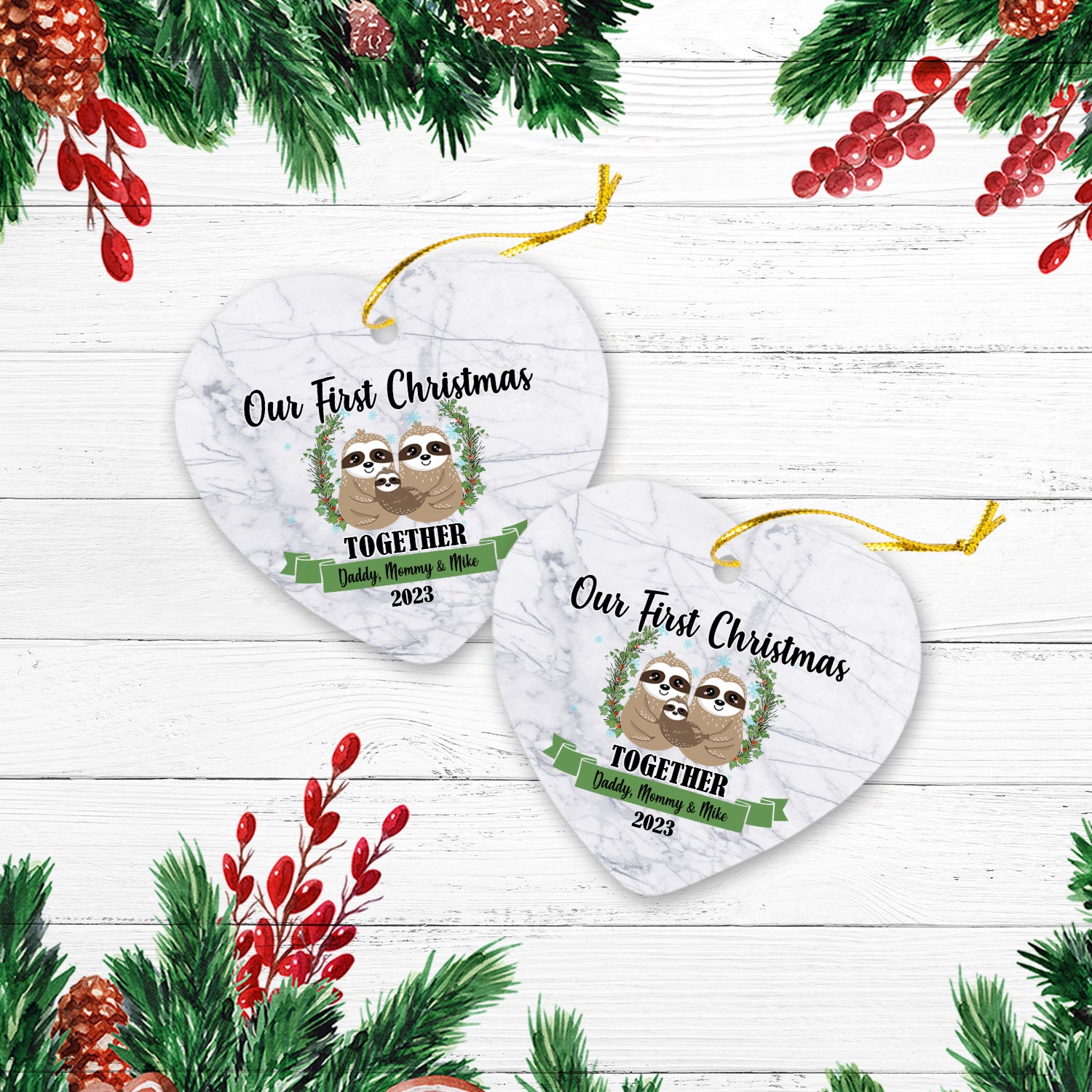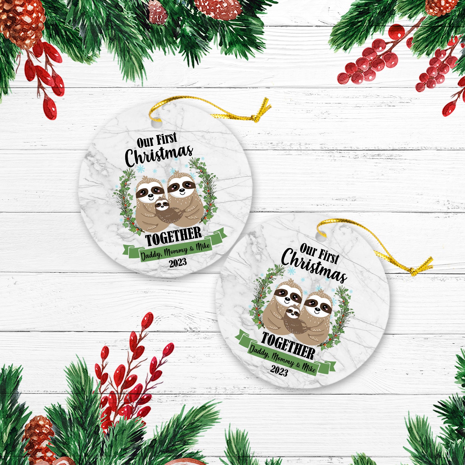 Our First Christmas Together With Family Cute Animals Version Sloth Personalized Christmas Premium Ceramic Ornaments