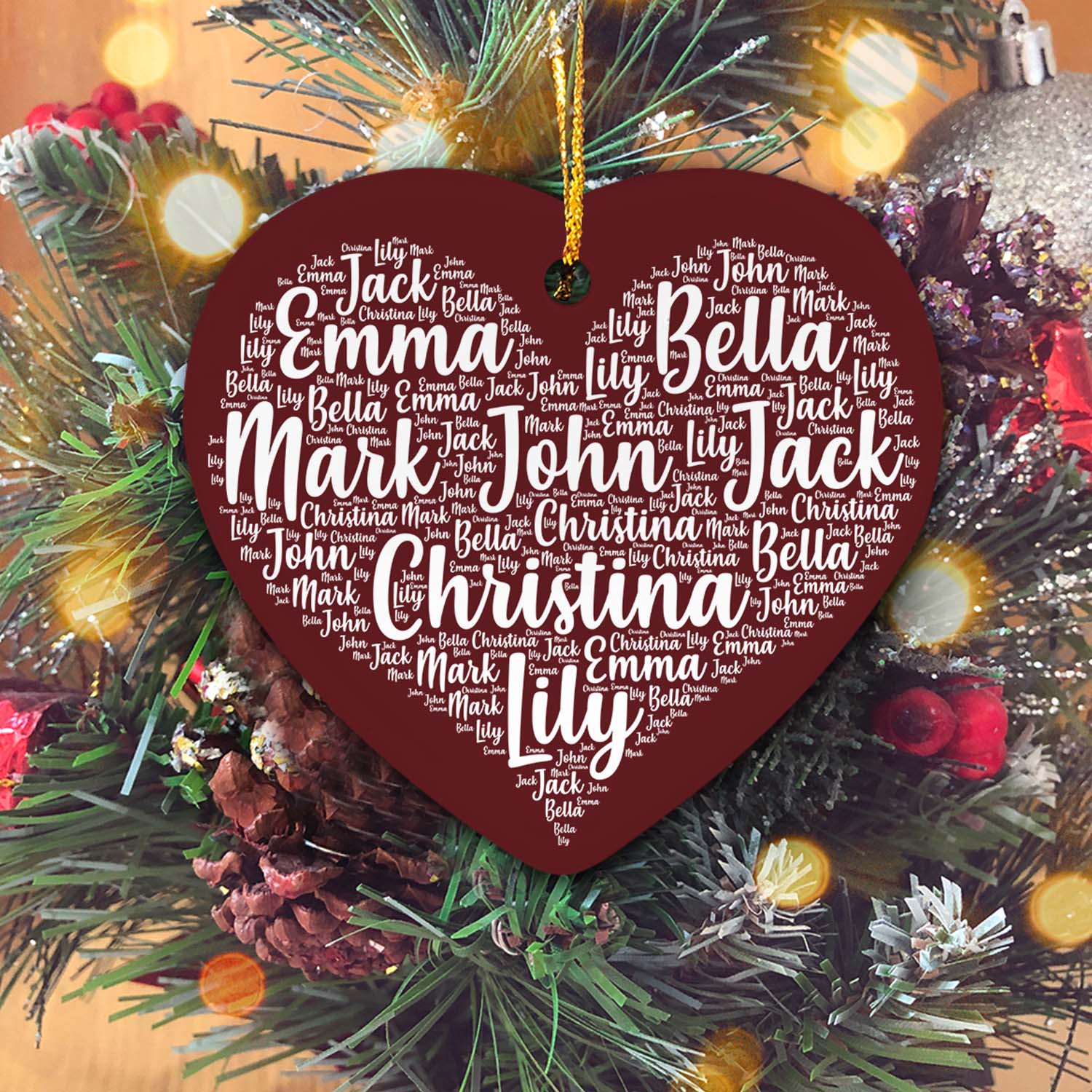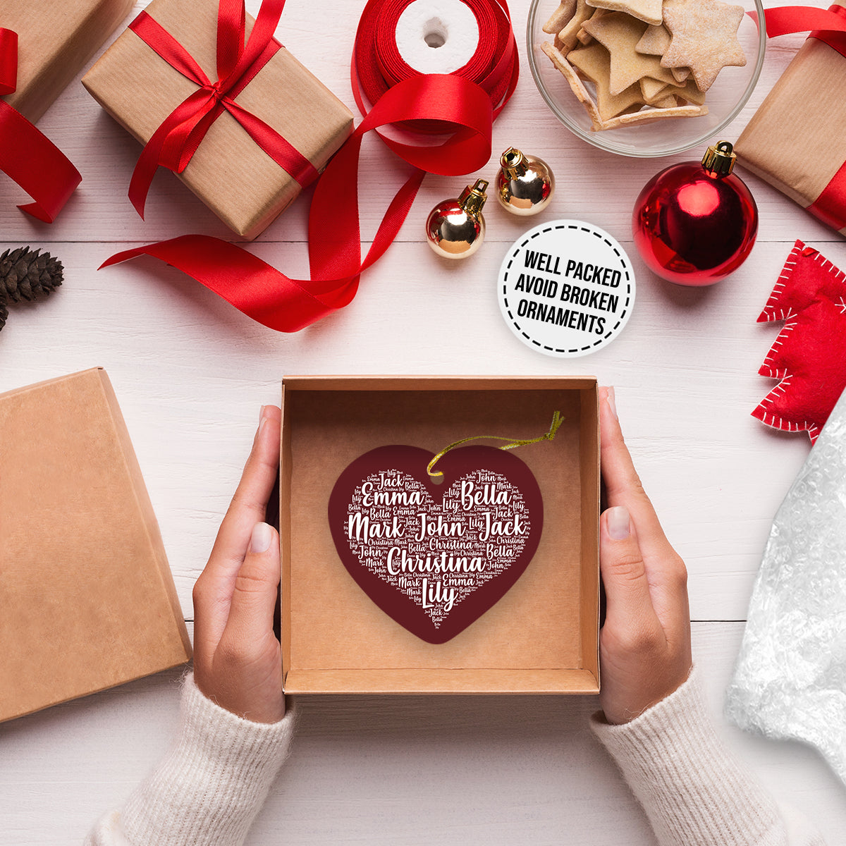 Touch Heart Red Version 01 Christmas Personalized Custom Name Christmas Premium Ceramic Ornaments Sets