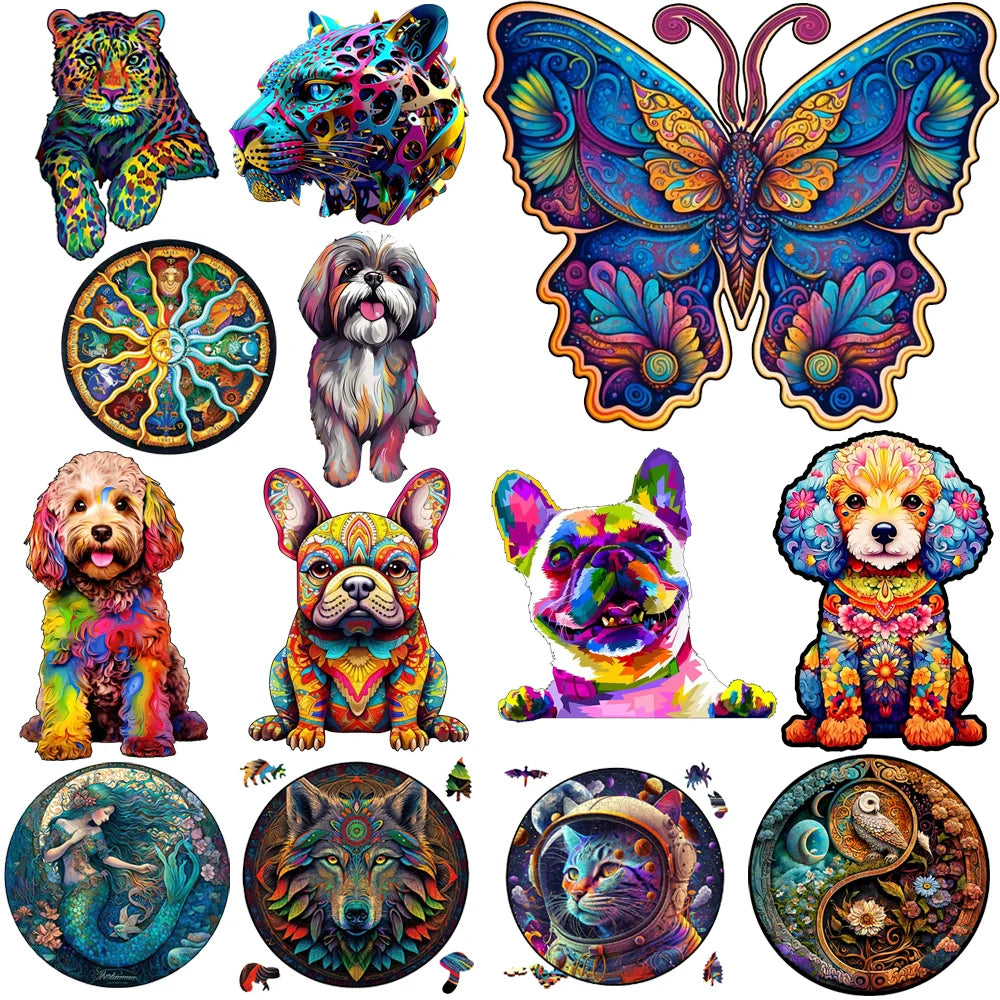 Set 2 Unique Wooden Animal Jigsaw Puzzle, Animal Shape, Wooden Jigsaw Puzzle, Mindfulness & Educational Animals Game for All Ages, Unique Sustainable, Wildlife Gift, Christmas gift Idea C174