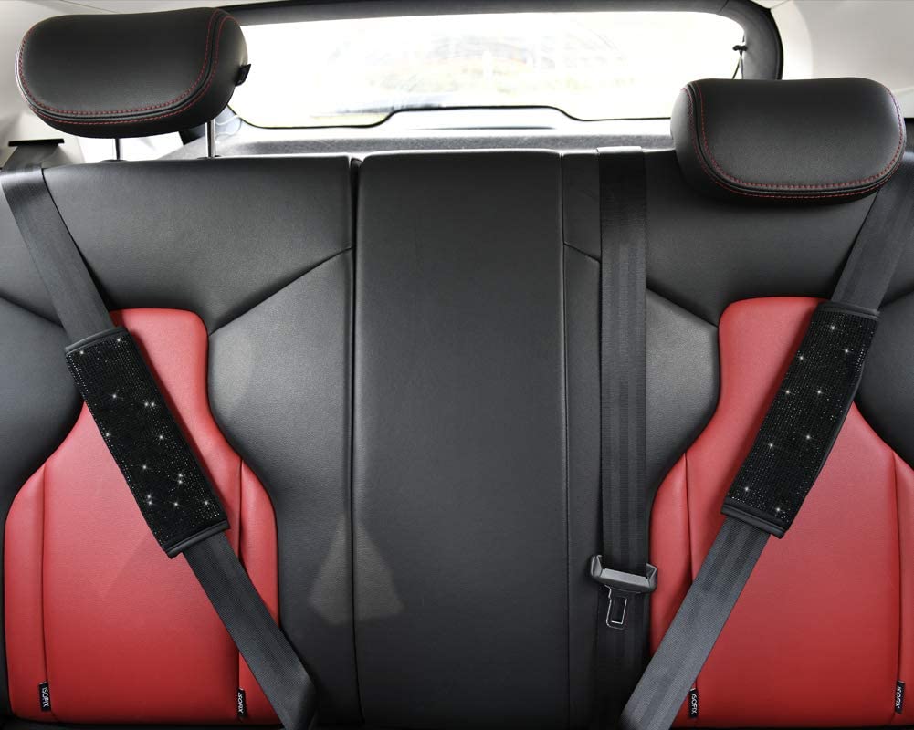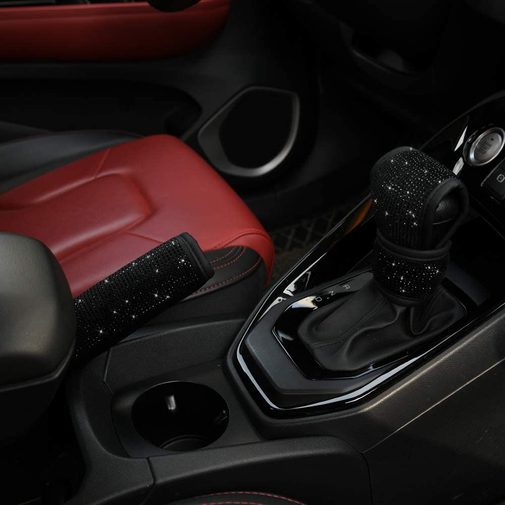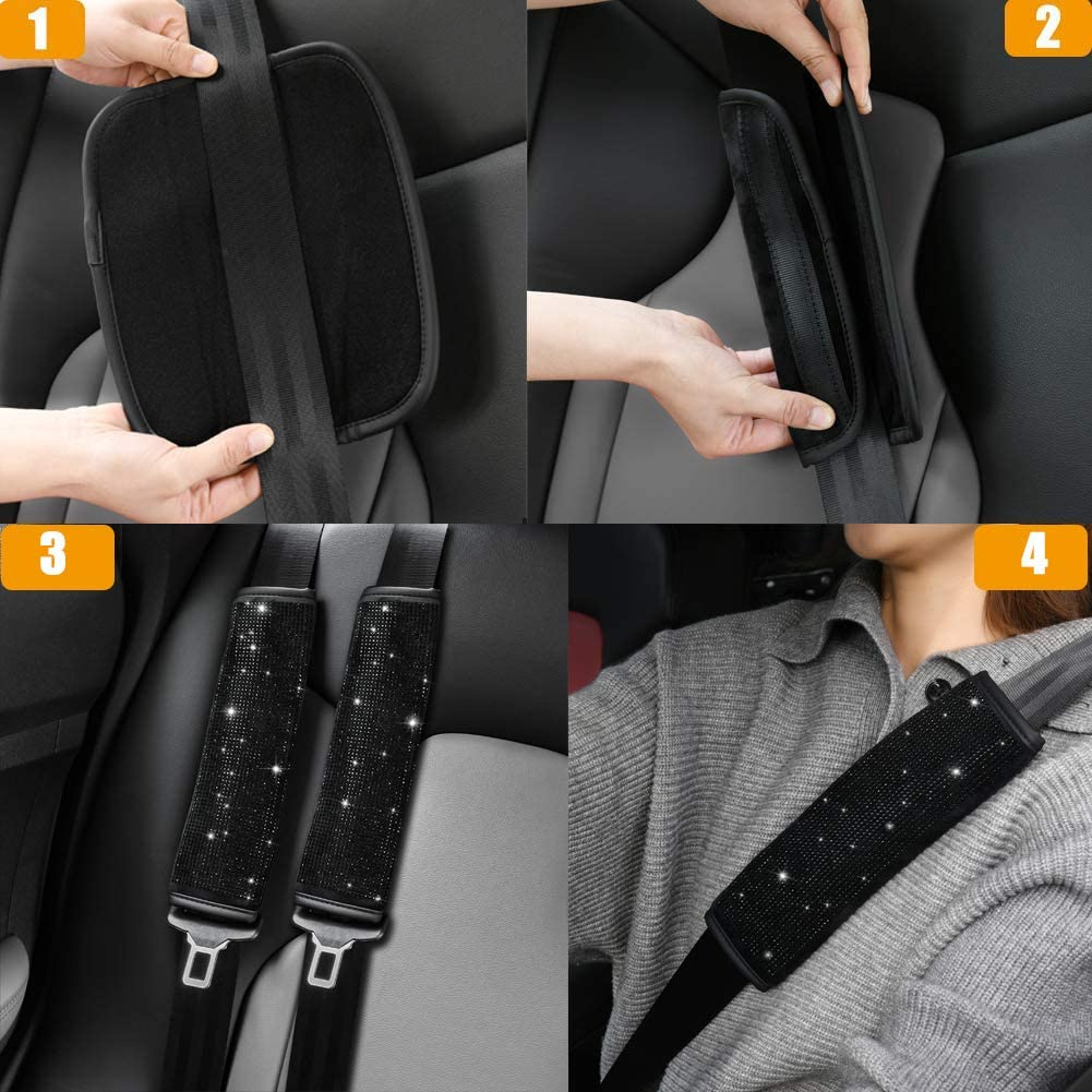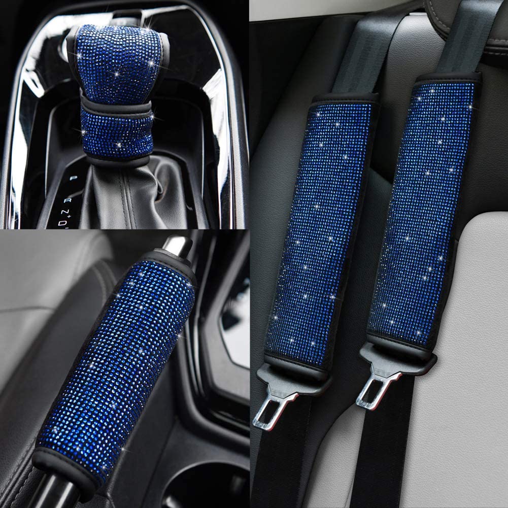 Soft Velvet Seat Belt Shoulder Pads with Bling Rhinestones Car Bling Seat Belt Covers for Women, Crystal Handbrake Cover, Bling Ring Set Bling Car Accessories 4 Pack Set Universal, Car Interior Accessories