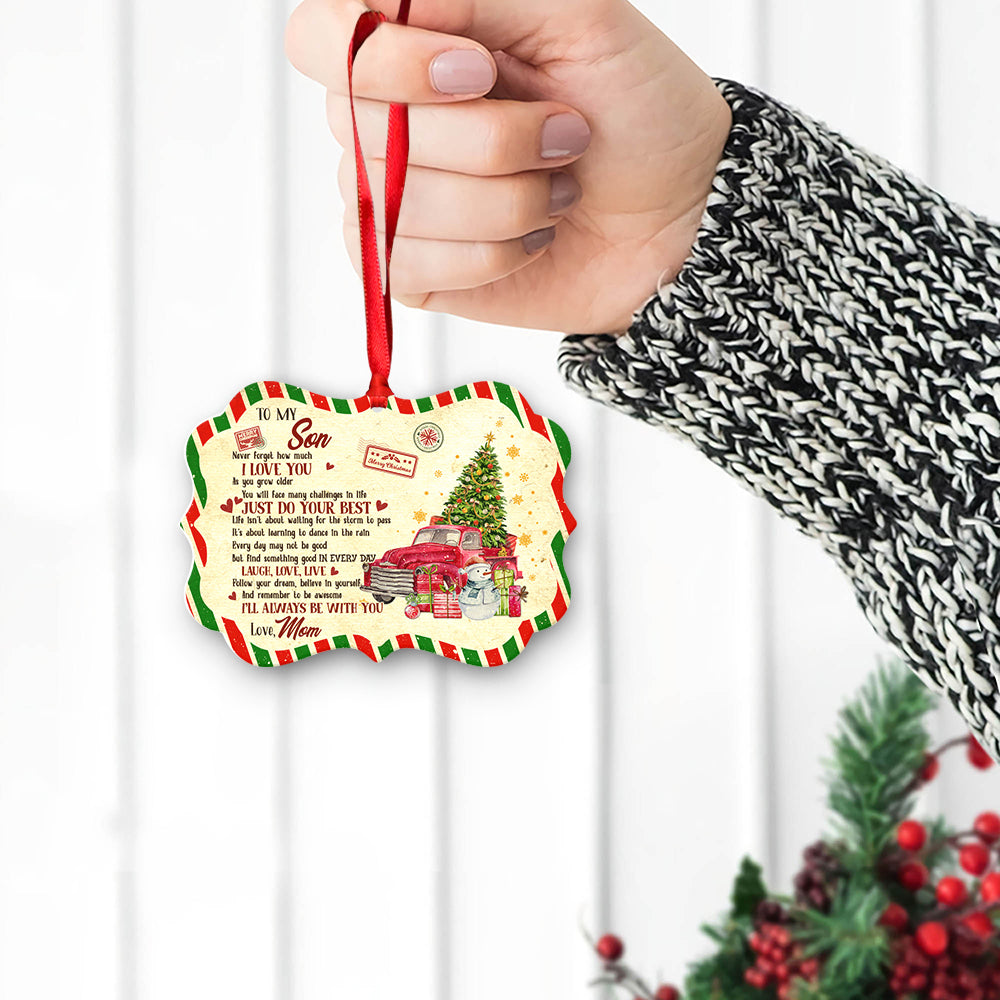 To My Son Never Forgot How Much I Love You Personalized Custom Name Aluminum Ornaments Gift For Christmas