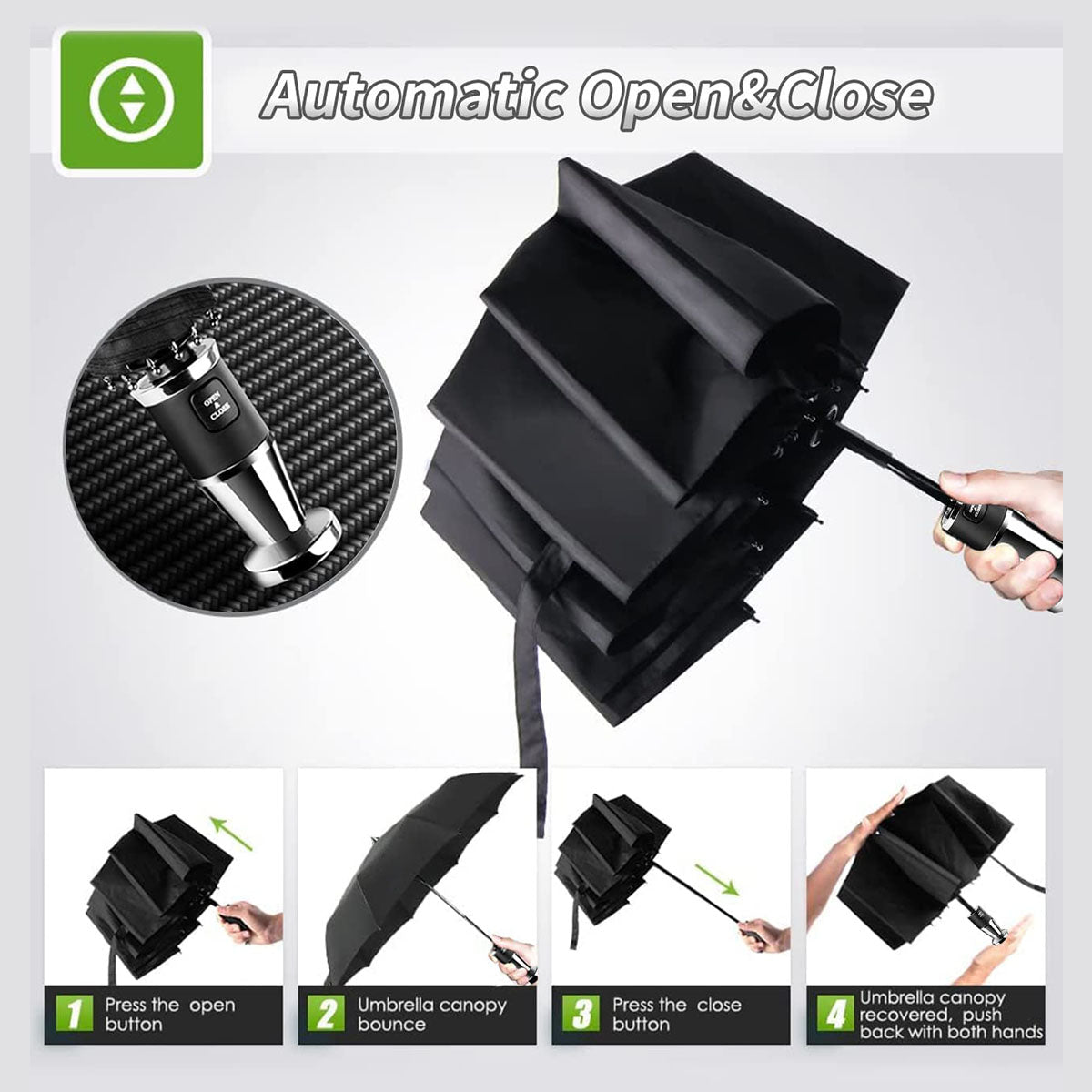 Umbrella for All Cars, 10 Ribs Umbrella Windproof Automatic Folding Umbrella, One-handed use, Rain and Sun Protection, Car Accessories AR13993
