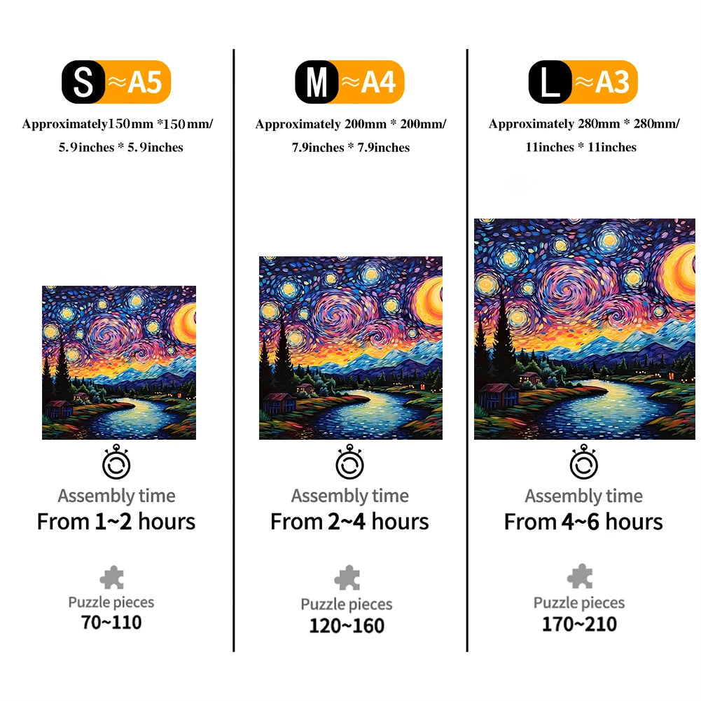 Unique Wooden Jigsaw Puzzle, Starry Night Wooden Puzzle, Vincent Van Gogh, Wooden Jigsaw Puzzle, Mindfulness & Educational Animals Game for All Ages, Unique Sustainable, Wildlife Gift, Christmas gift Idea C175