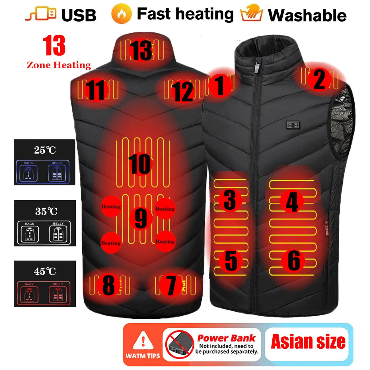 USB Heated Winter Vest – Multi-Zone Self-Heating Sleeveless Jacket for Men, Ideal for Hunting and Outdoor Wear C13